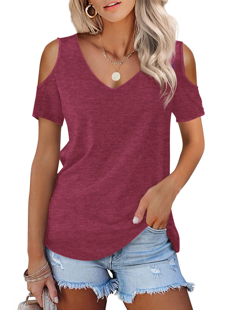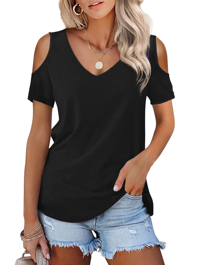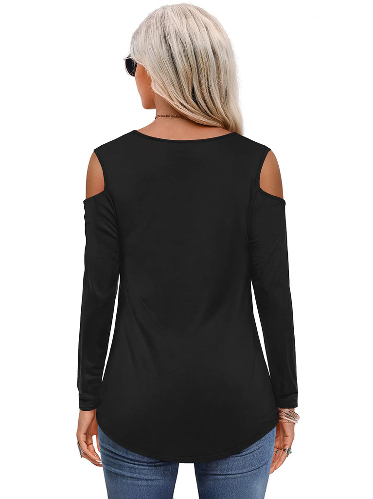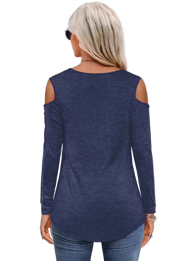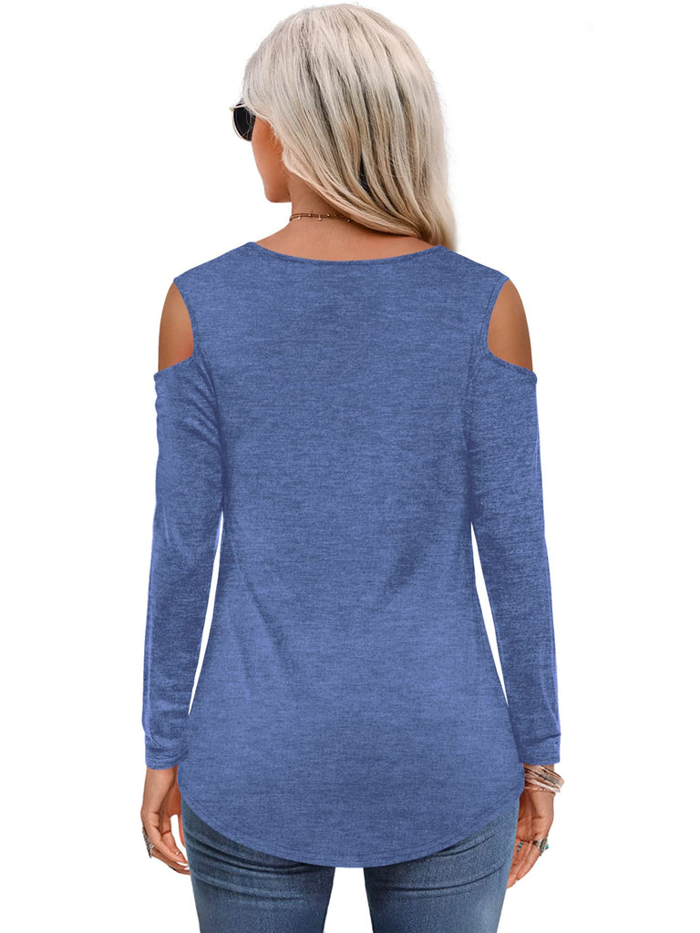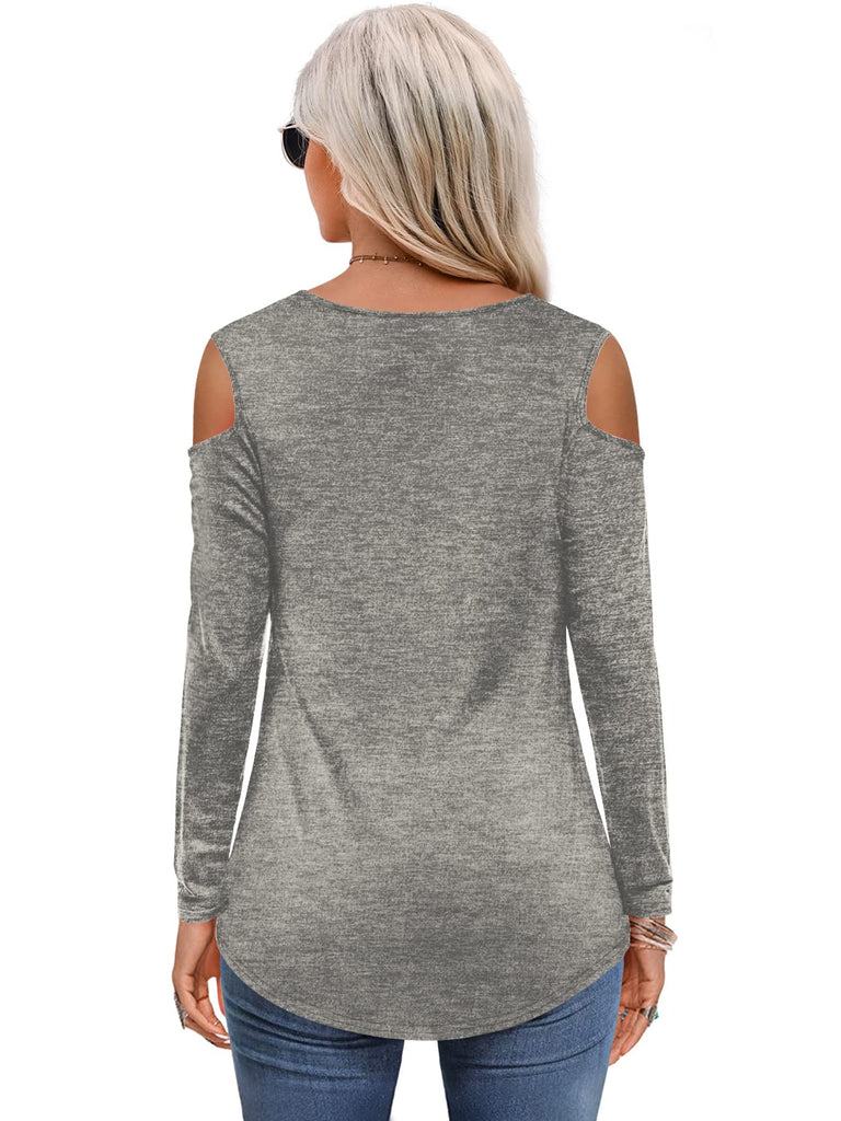 Womens Tops Open Shoulder V Neck T-Shirt Long Sleeved Tee Shirts White Size 16 18