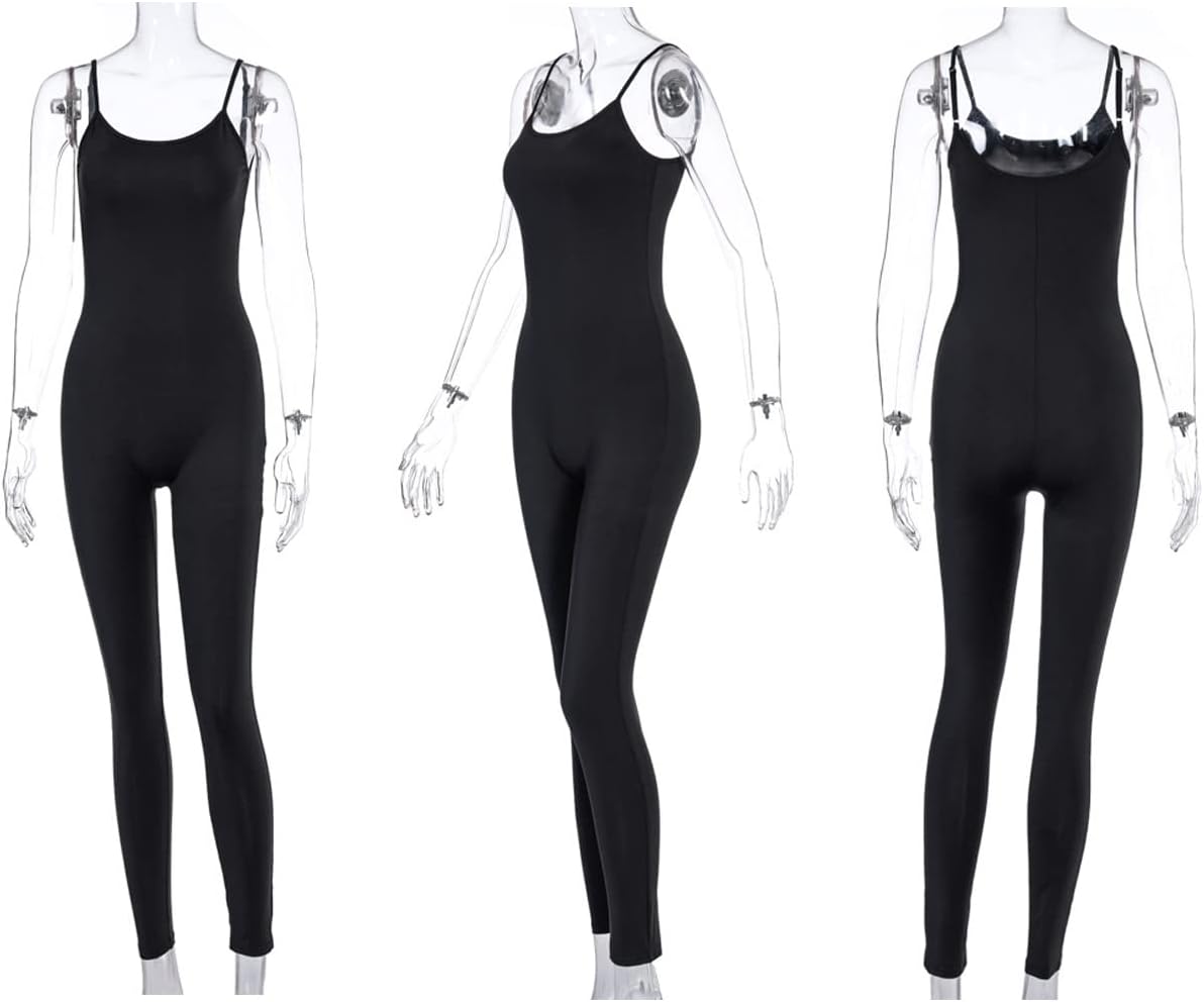 One Piece Jumpsuits Sleeveless Ribbed Playsuits Bodycon Bodysuit Sexy Black Unitard Seamless Spaghetti Strap Rompers for Leisure Sports Gym Workout Outfits Yoga Fitness