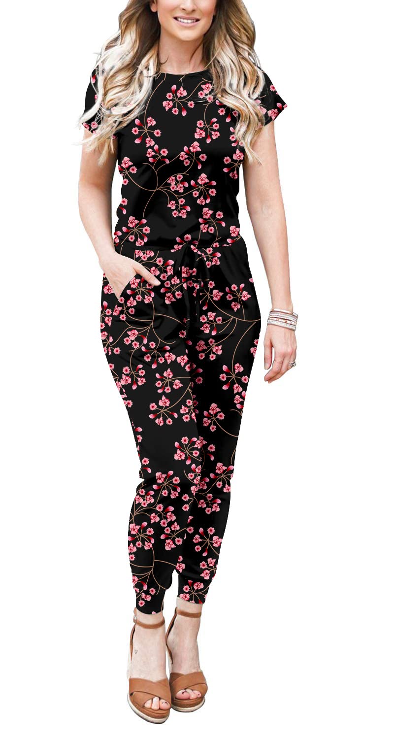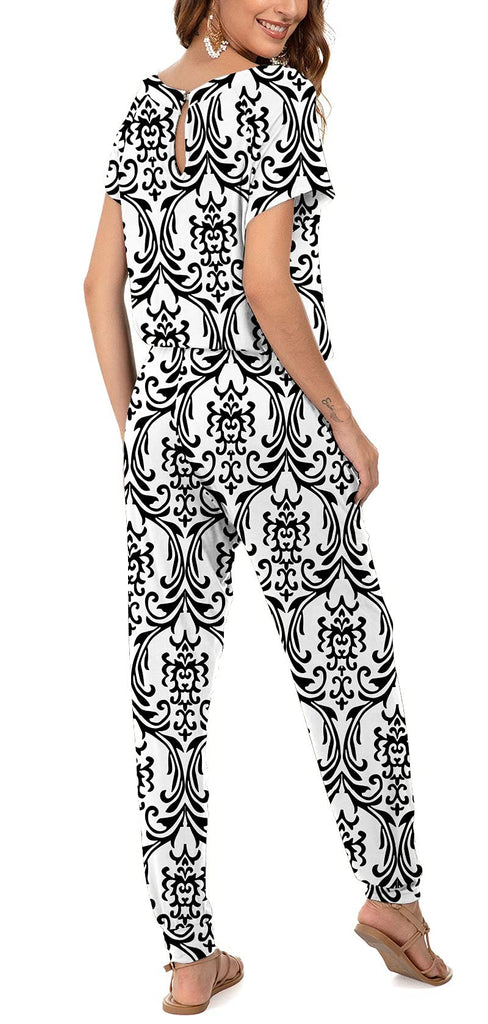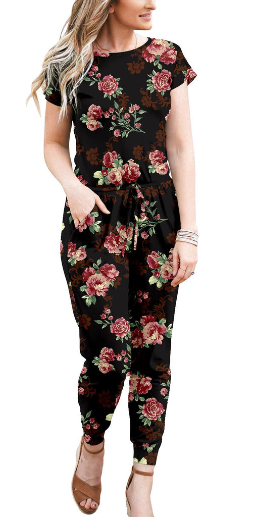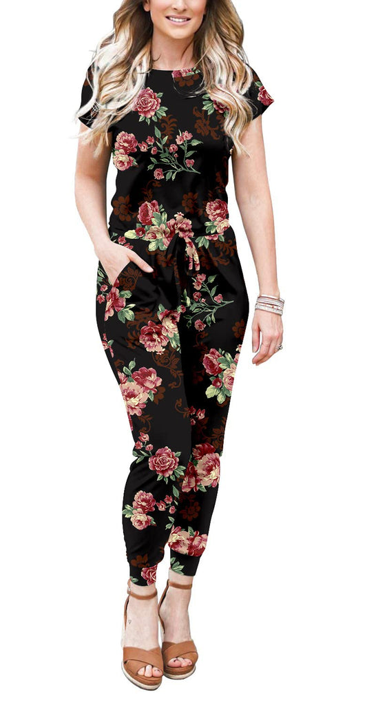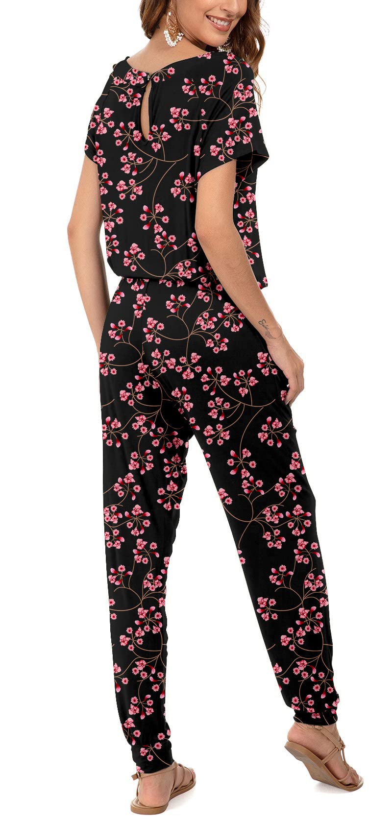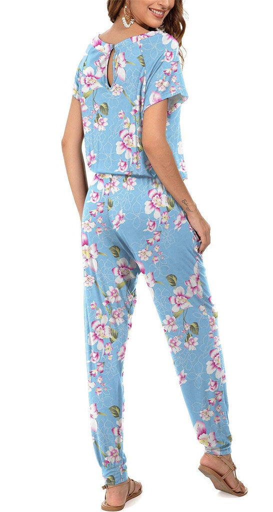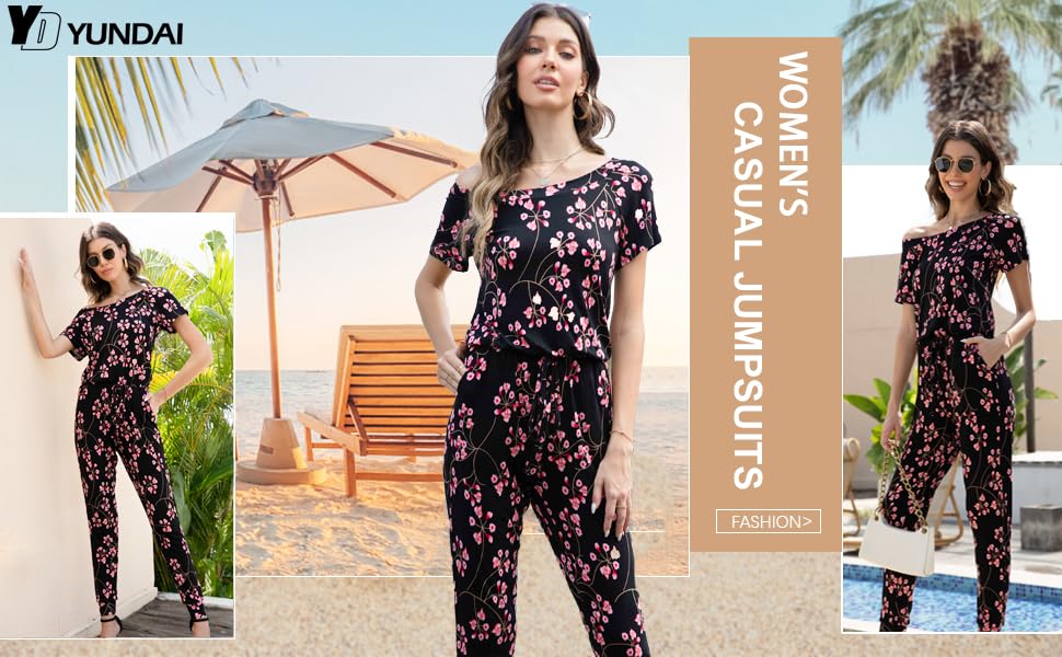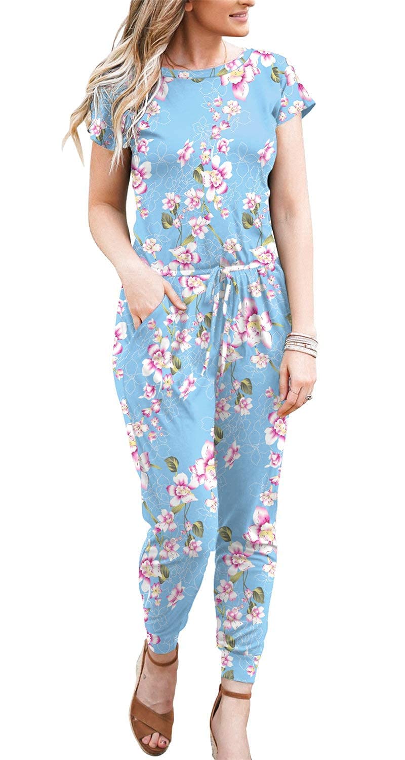 Womens Jumpsuits One Piece Casual Off Shoulder Playsuit Short Sleeve Overalls Elastic Waist Stretchy Romper with Pockets X-Large,Floral White