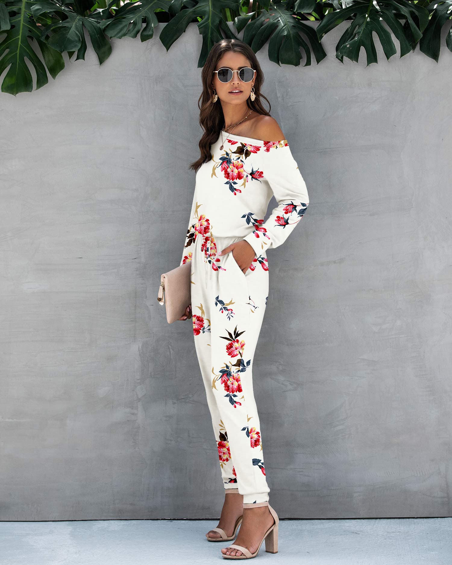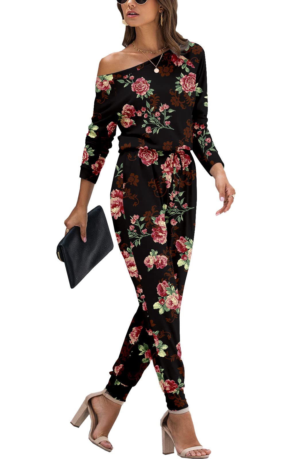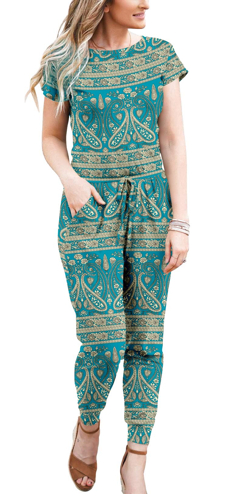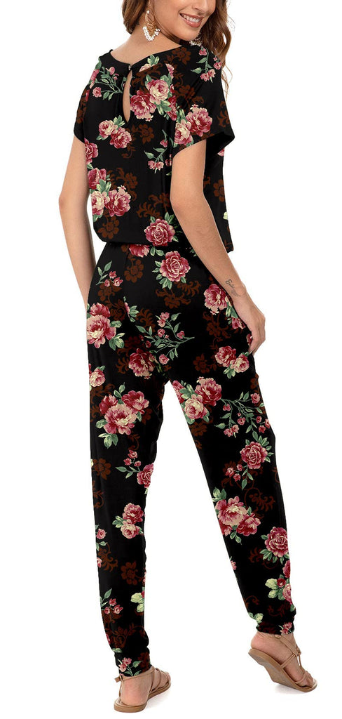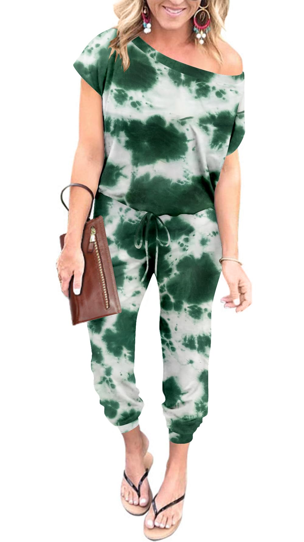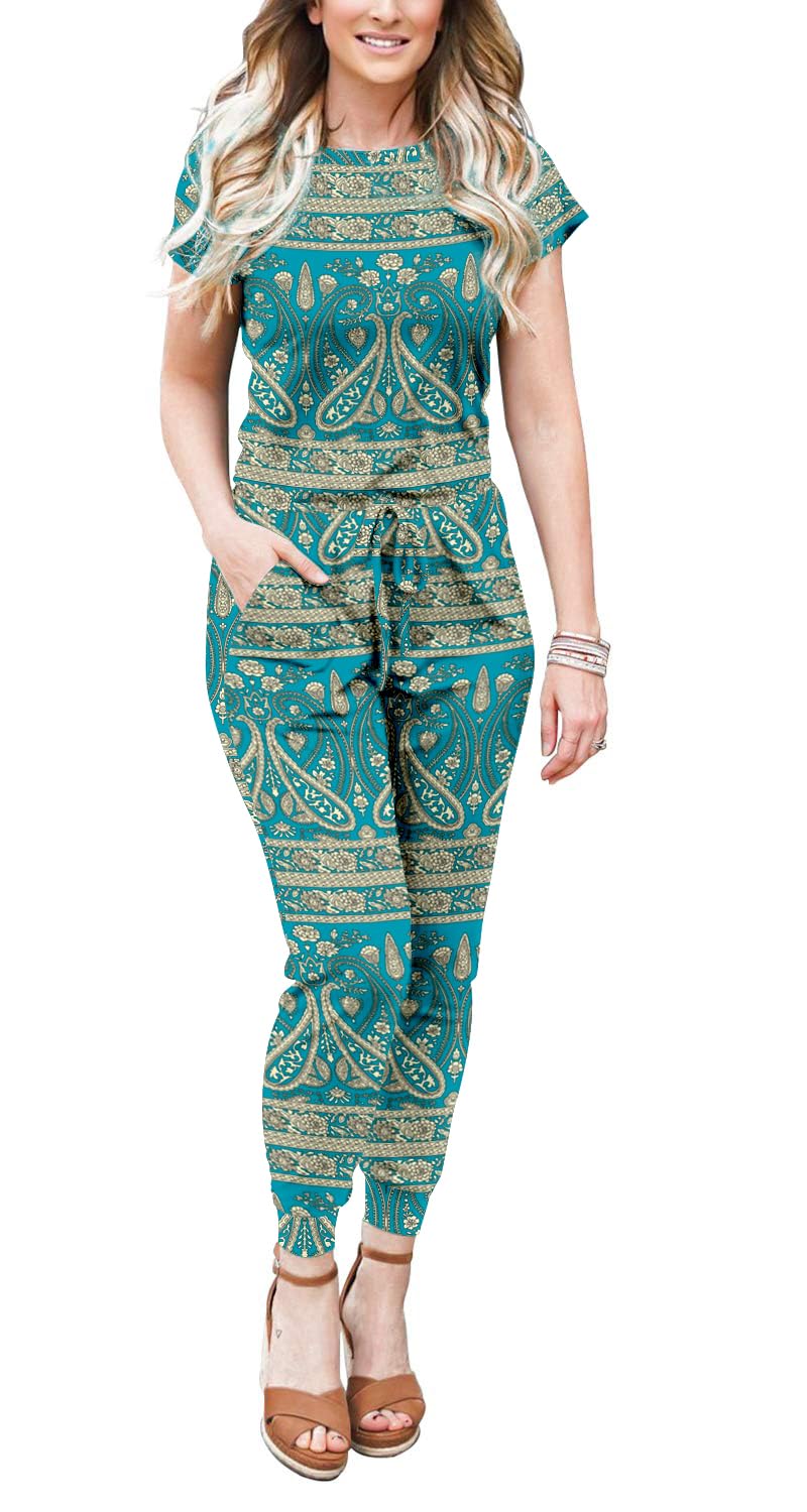 Womens Jumpsuits One Piece Casual Off Shoulder Playsuit Short Sleeve Overalls Elastic Waist Stretchy Romper with Pockets X-Large,Floral White