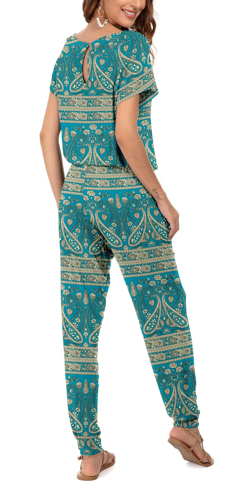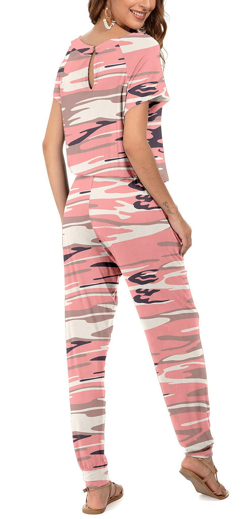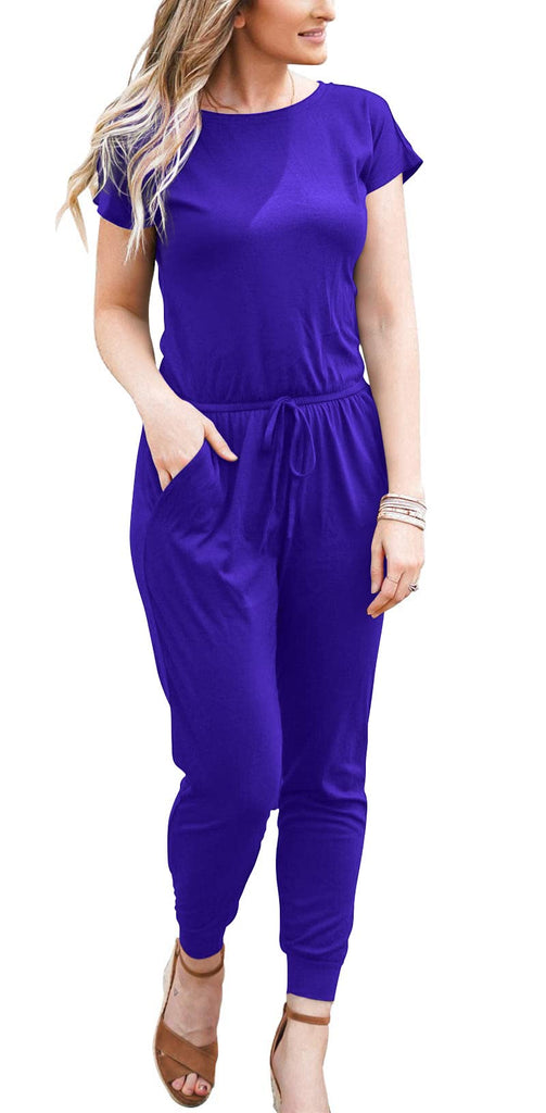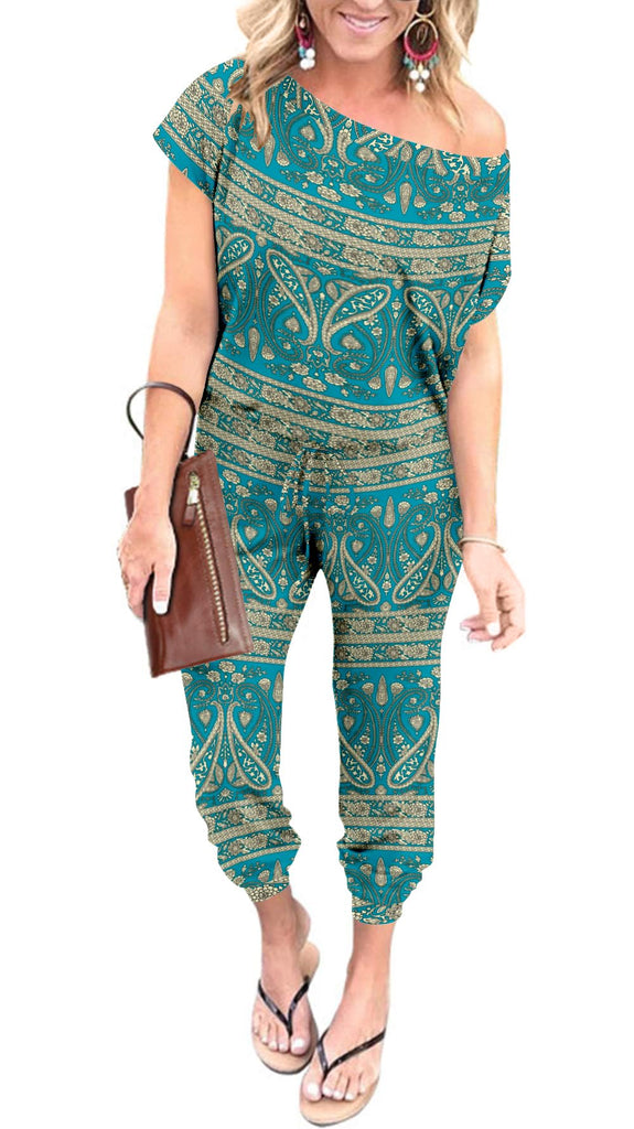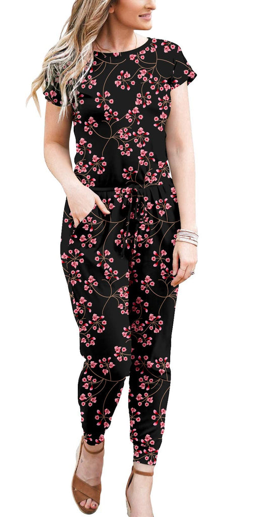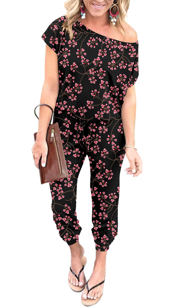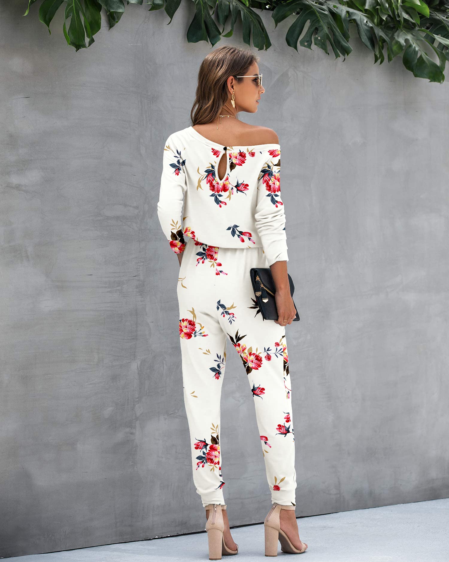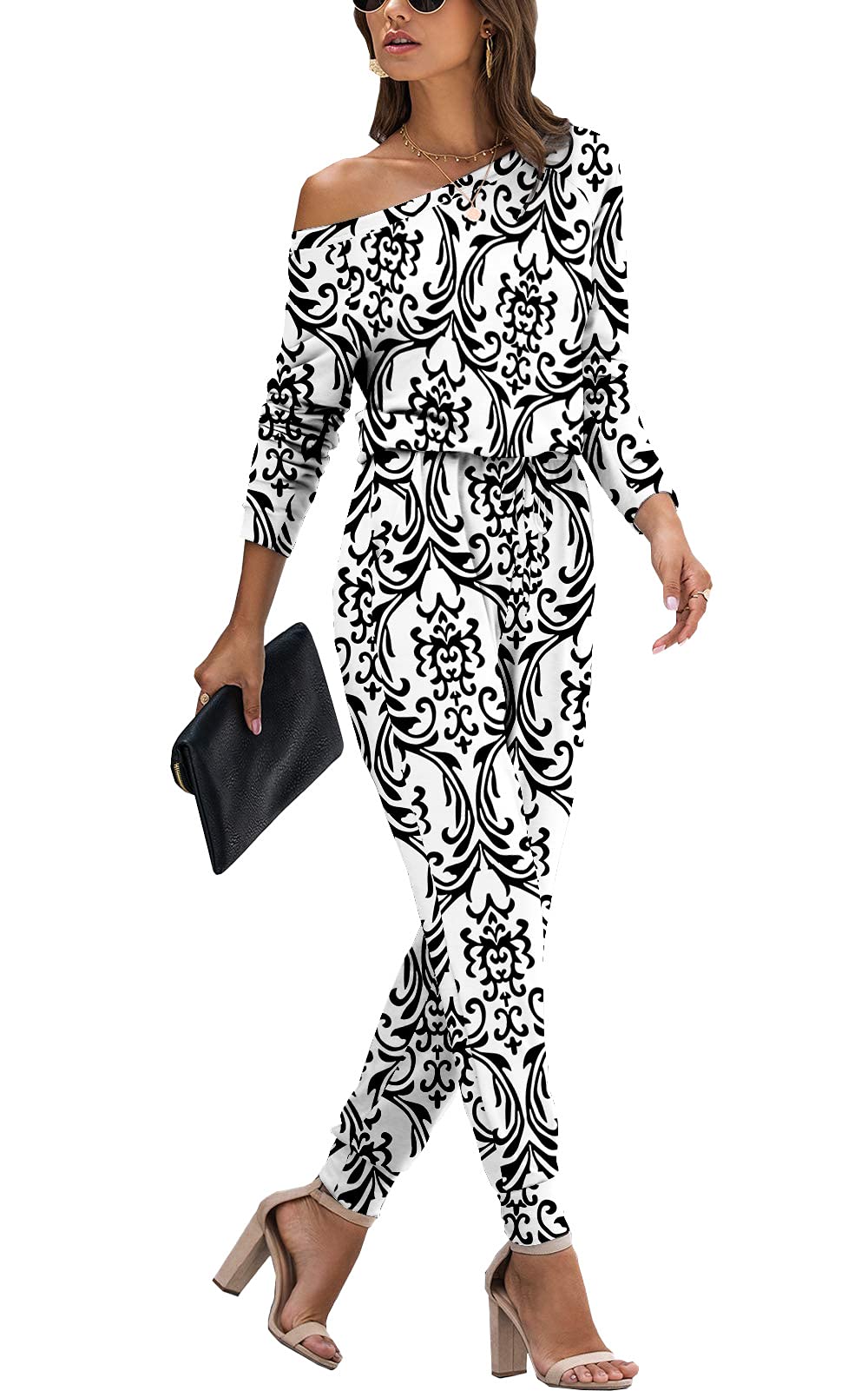 Womens Jumpsuits One Piece Casual Off Shoulder Playsuit Short Sleeve Overalls Elastic Waist Stretchy Romper with Pockets X-Large,Floral White
