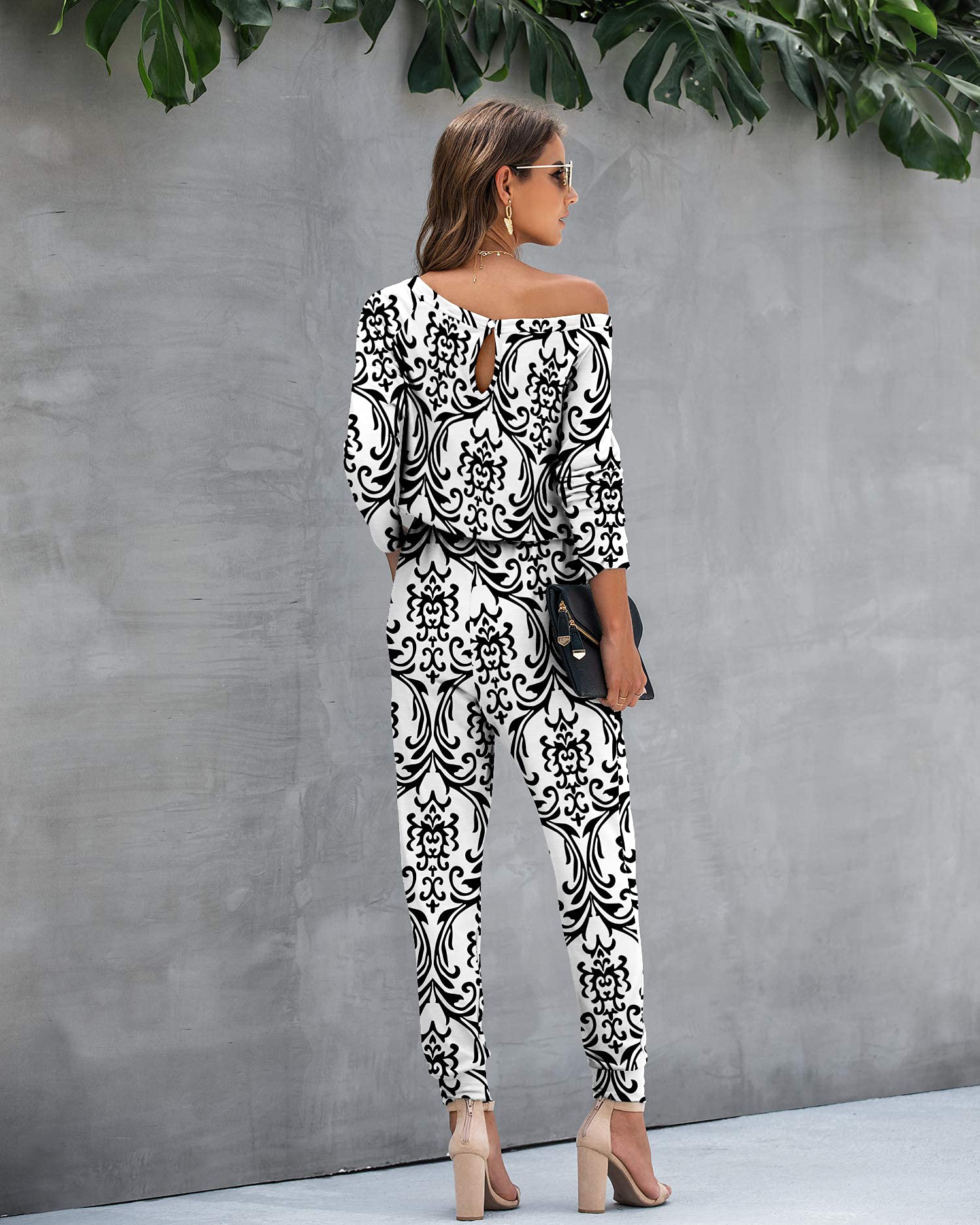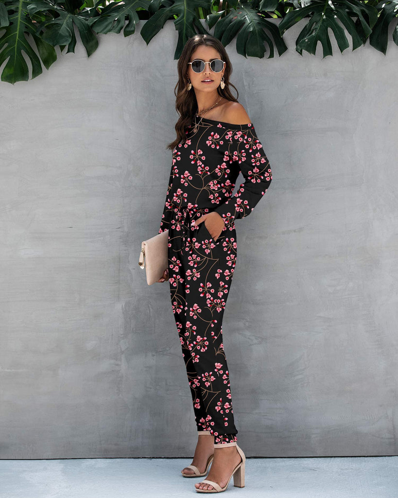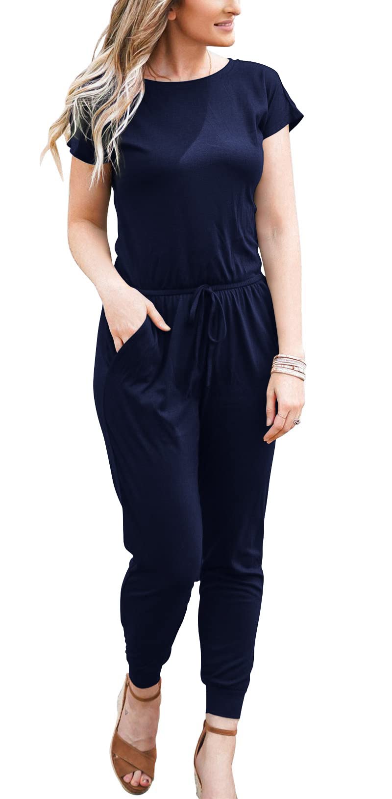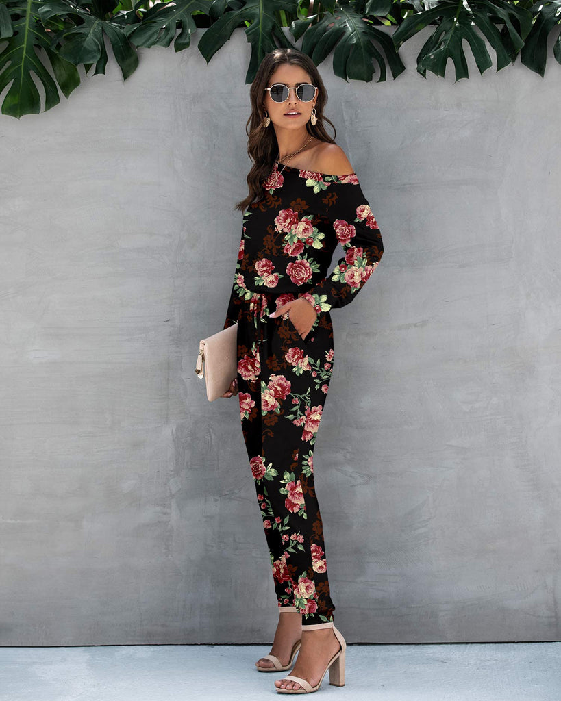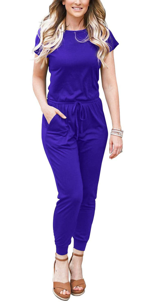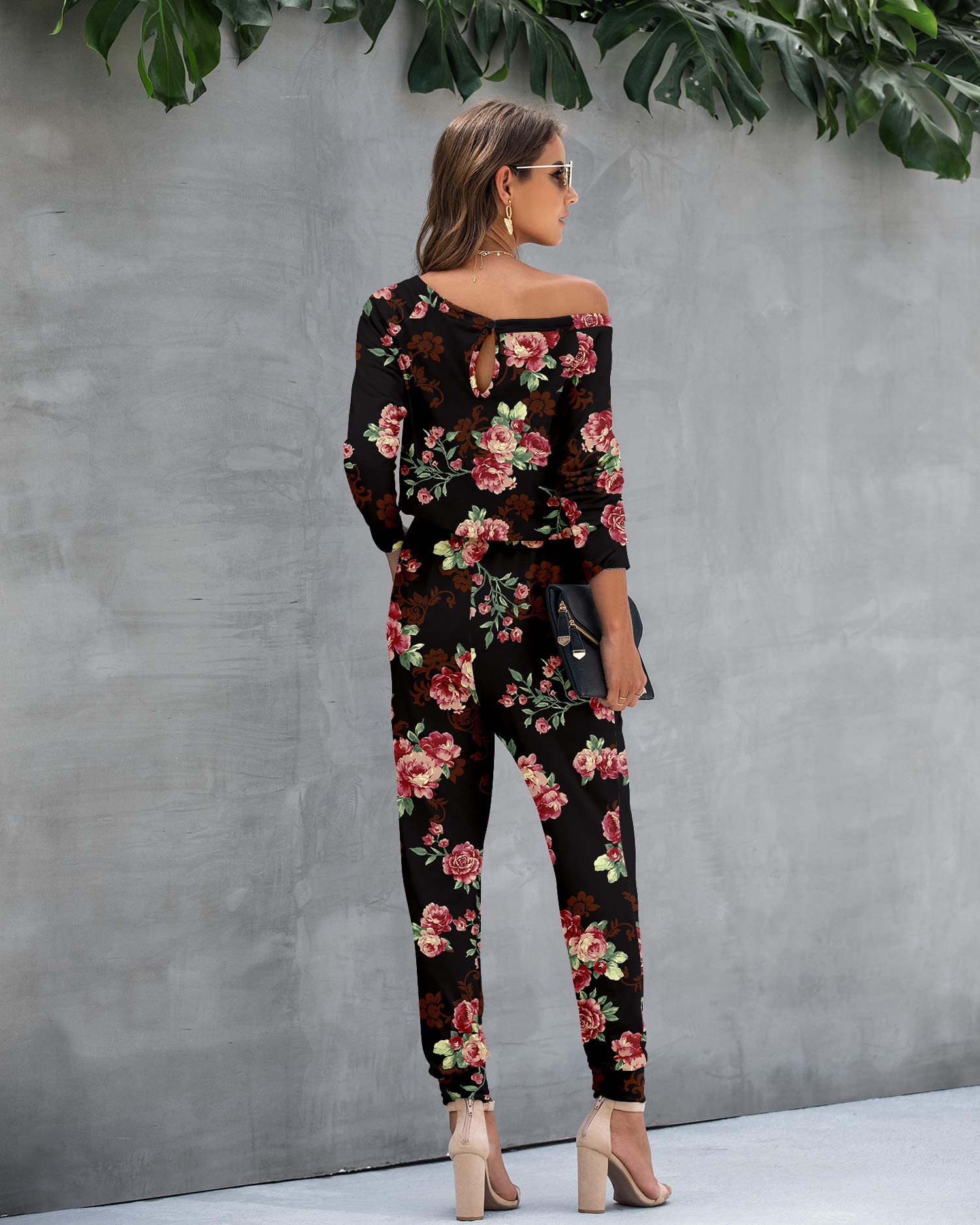 Womens Jumpsuits One Piece Casual Off Shoulder Playsuit Short Sleeve Overalls Elastic Waist Stretchy Romper with Pockets X-Large,Floral White