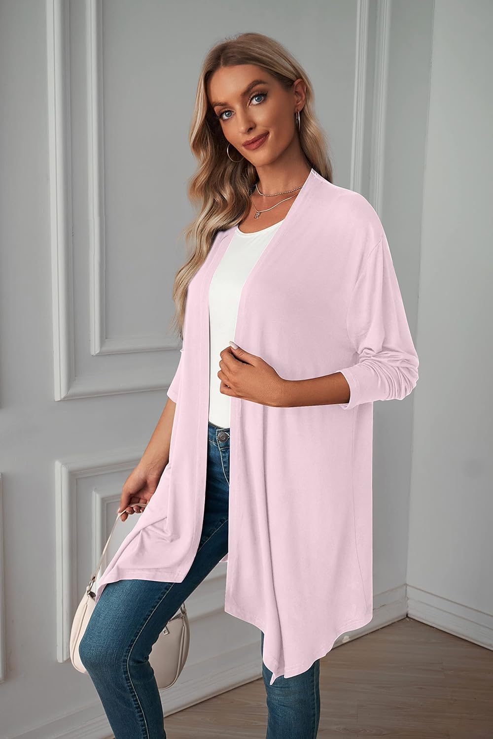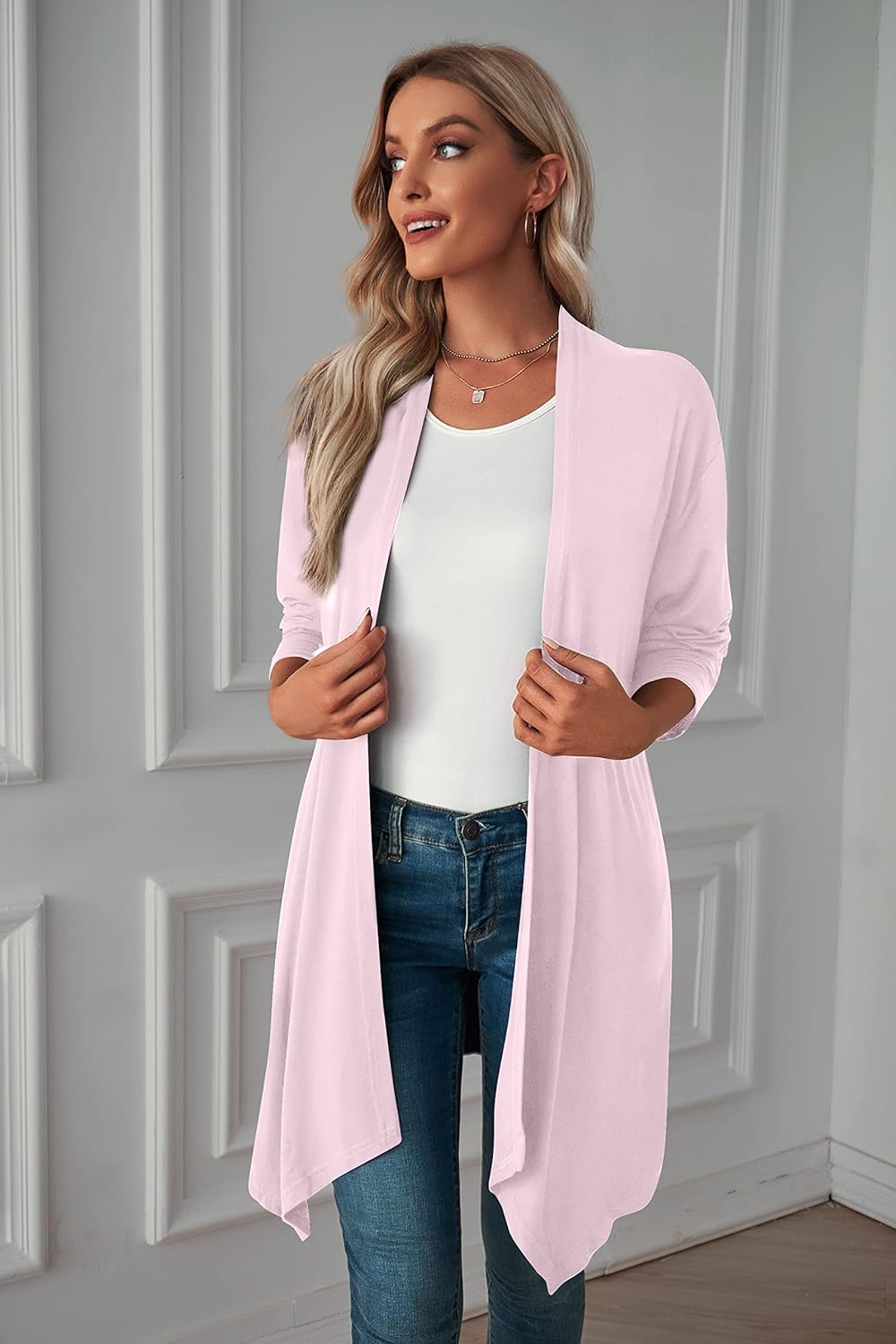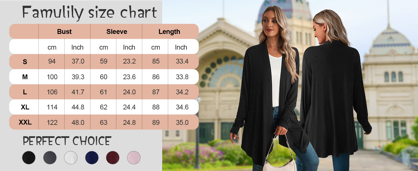 Womens casual waterfall cardigans made of soft fabric, cool and skin friendly, lightweight cardigans comfy to wear in spring, summer, fall and some warm winter day