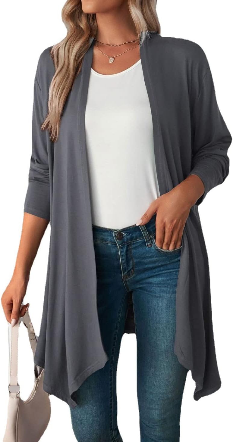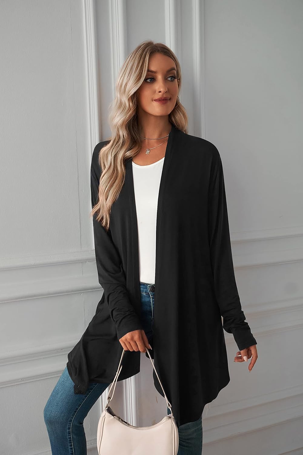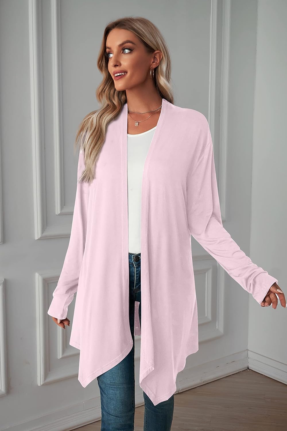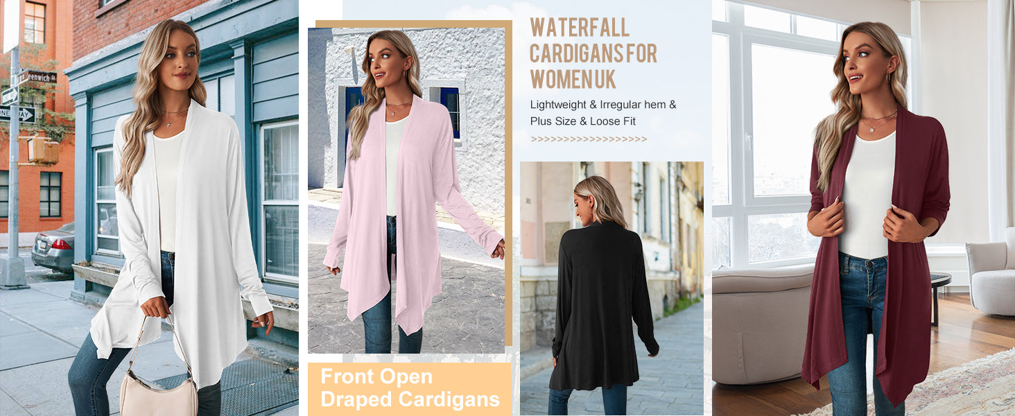 Soft Long Sleeve Waterfall Cardigans UK Draped Lightweight Open Front Cardigan Dusters Coat