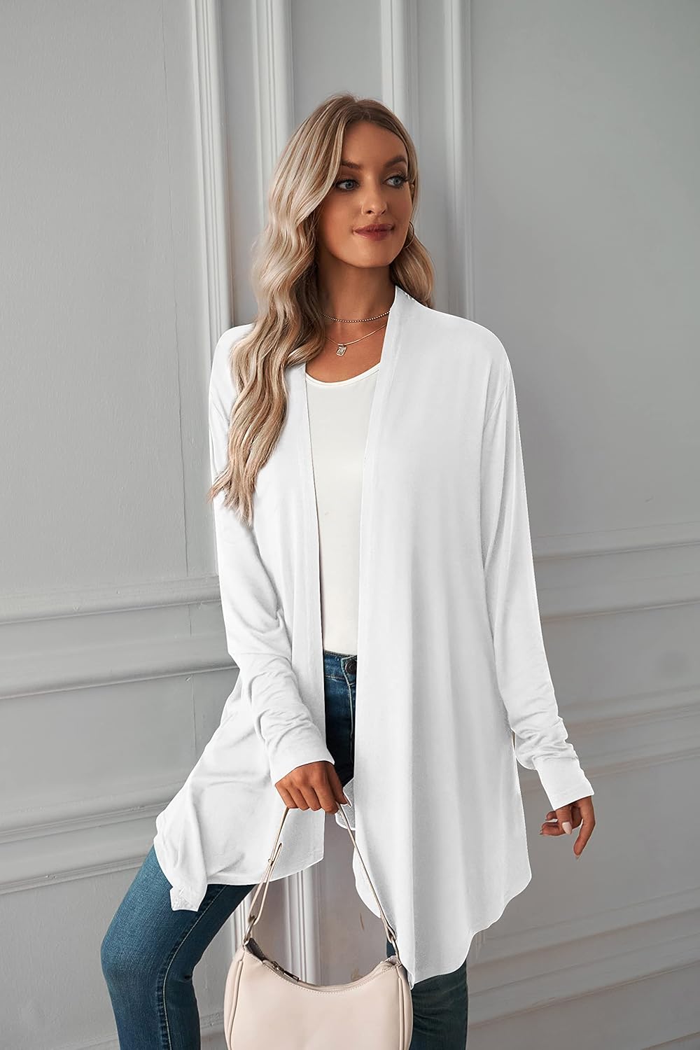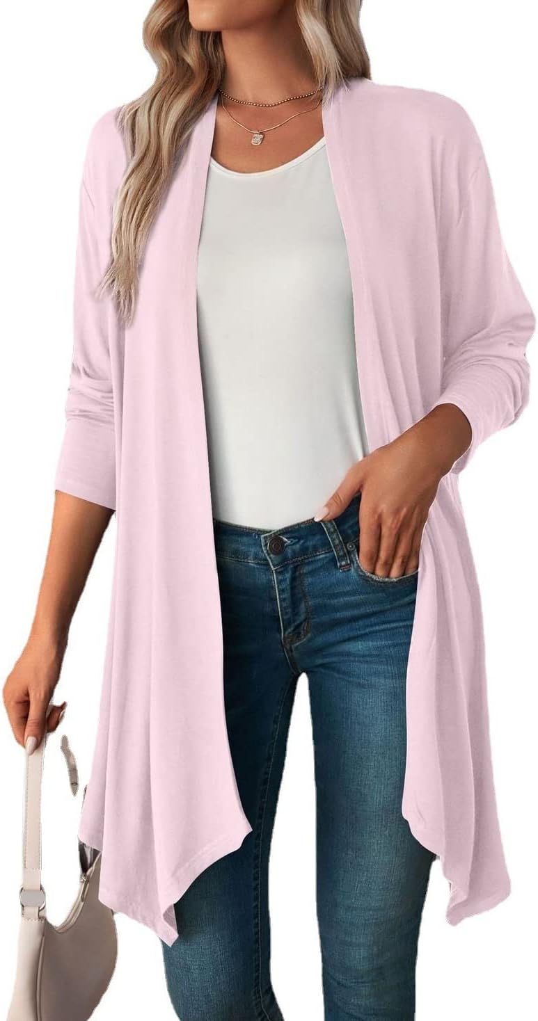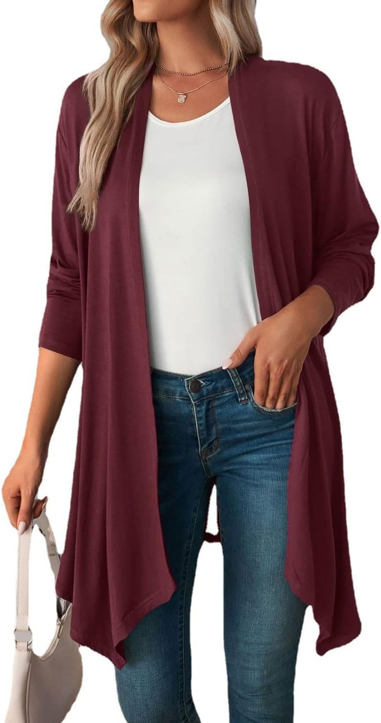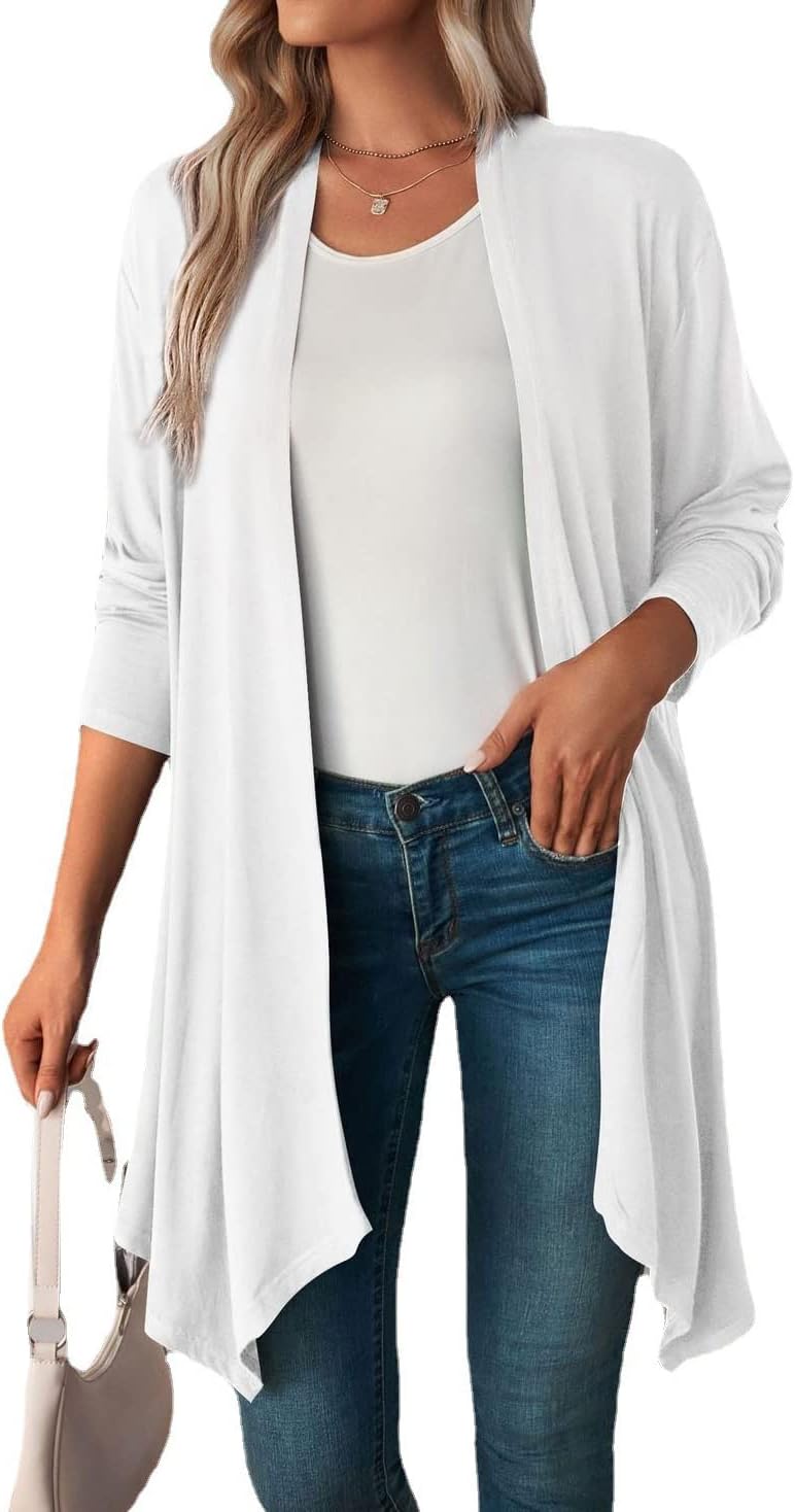 Soft Long Sleeve Waterfall Cardigans UK Draped Lightweight Open Front Cardigan Dusters Coat