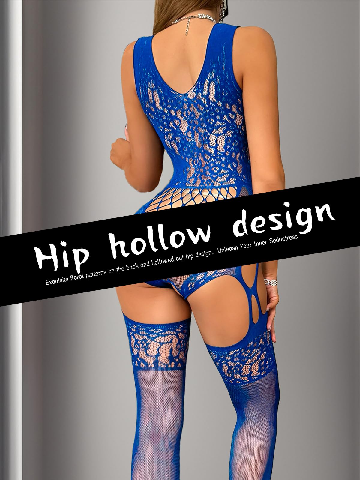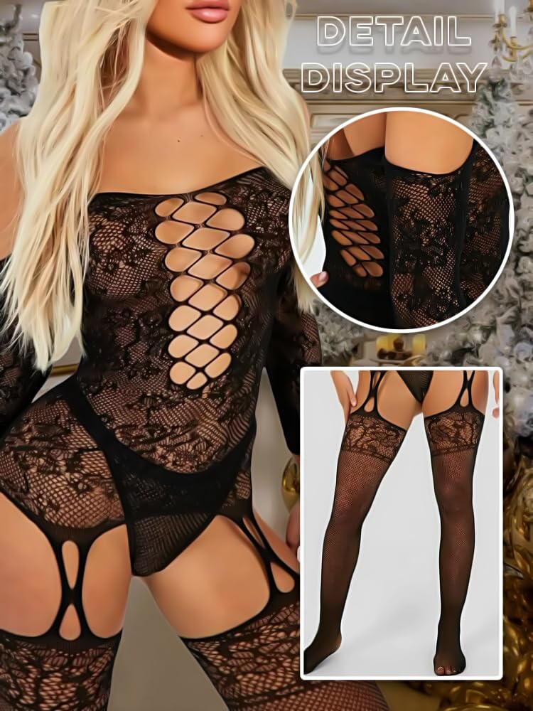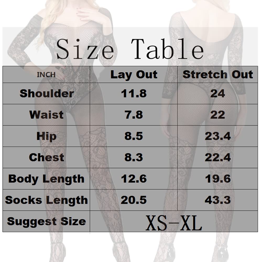 Womens Fishnet Bodystocking Plus Size Crotchless Bodysuit Sexy Tights Soft Nightwear Lingerie for Women(Black XDD,One size)