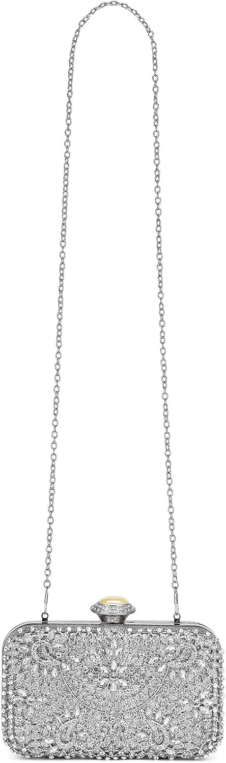 Clutch Bags for Women Hard Shell Clutches Beading Dinner Bags Ladies Pures Evening Handbags With Detachable Chain - Black is backordered. It will be shipped when back in stock.