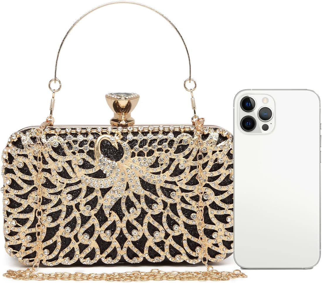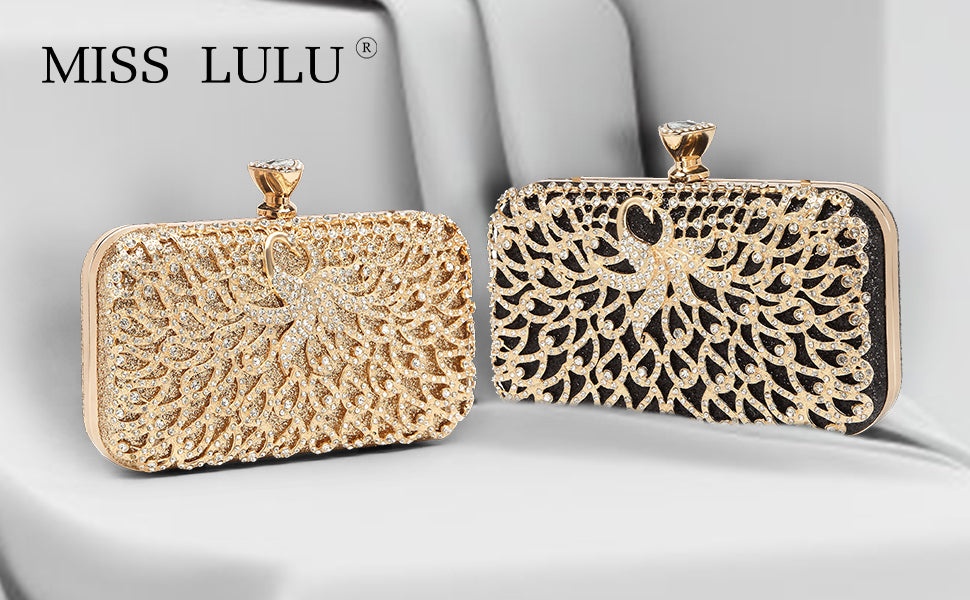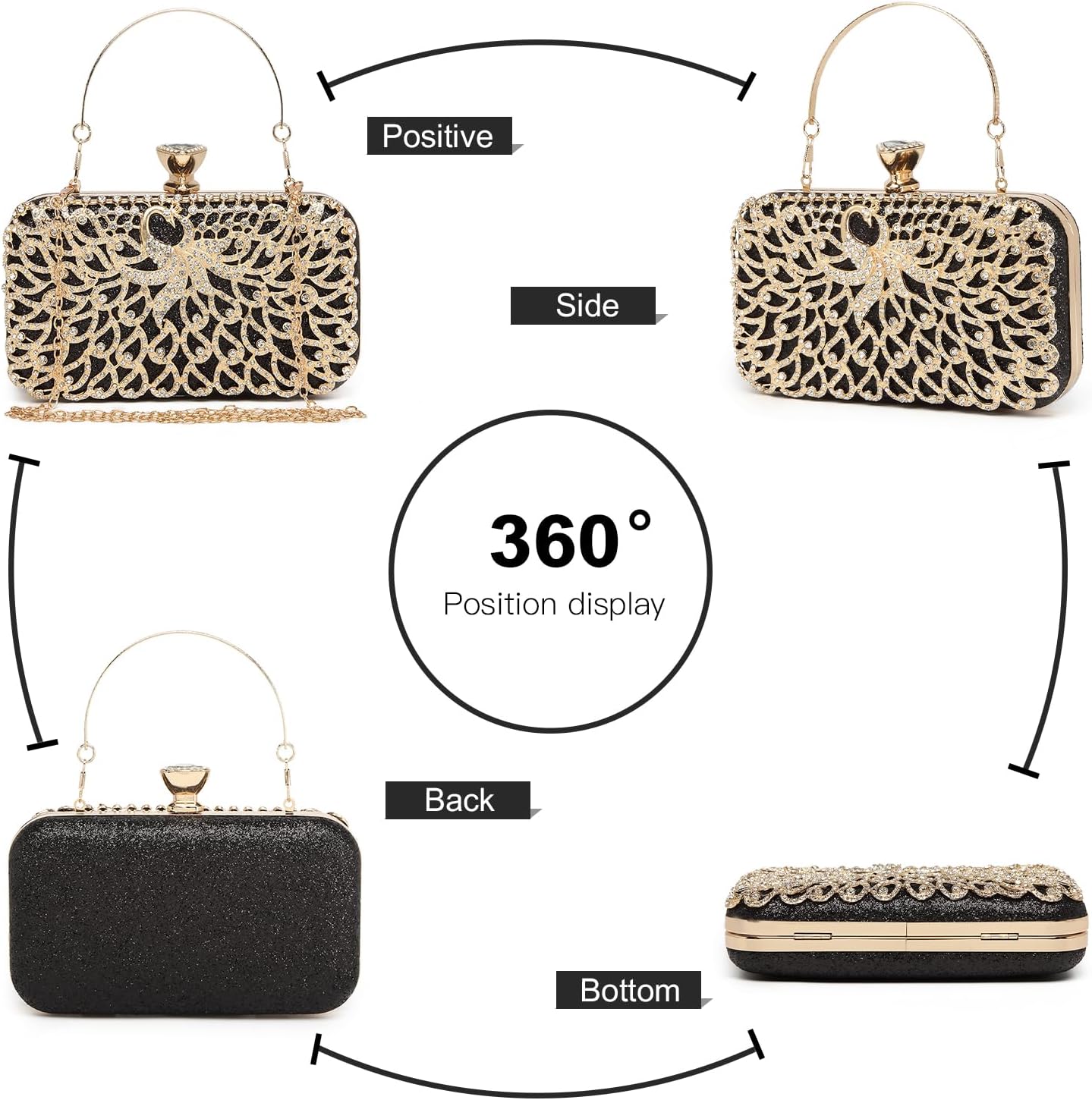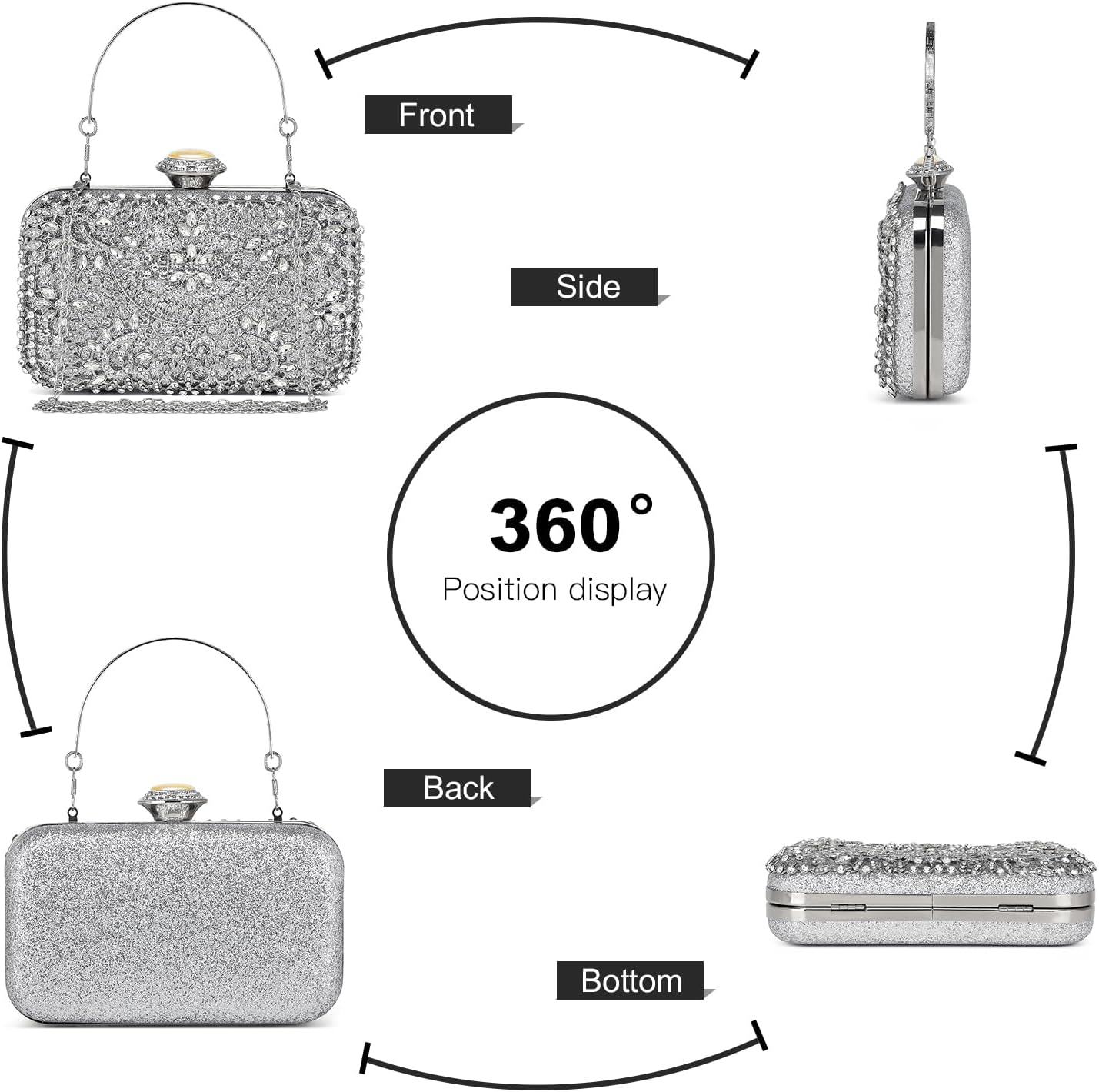 Clutch Bag Material: This clutch bag surface is a hand glued diamonds craft with a metal shell and polyester fiber lining. Enhance your noble profile, highlight your elegance.