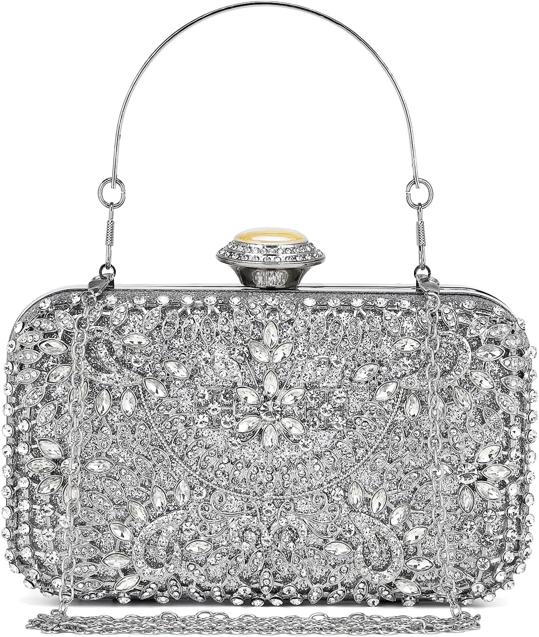 Clutch Bag for women, Elegant Diamond Clutch for Wedding Bridal Prom Cocktail Party Ladies Evening Bag,Complimentary Matching Teardrop-shaped Earrings