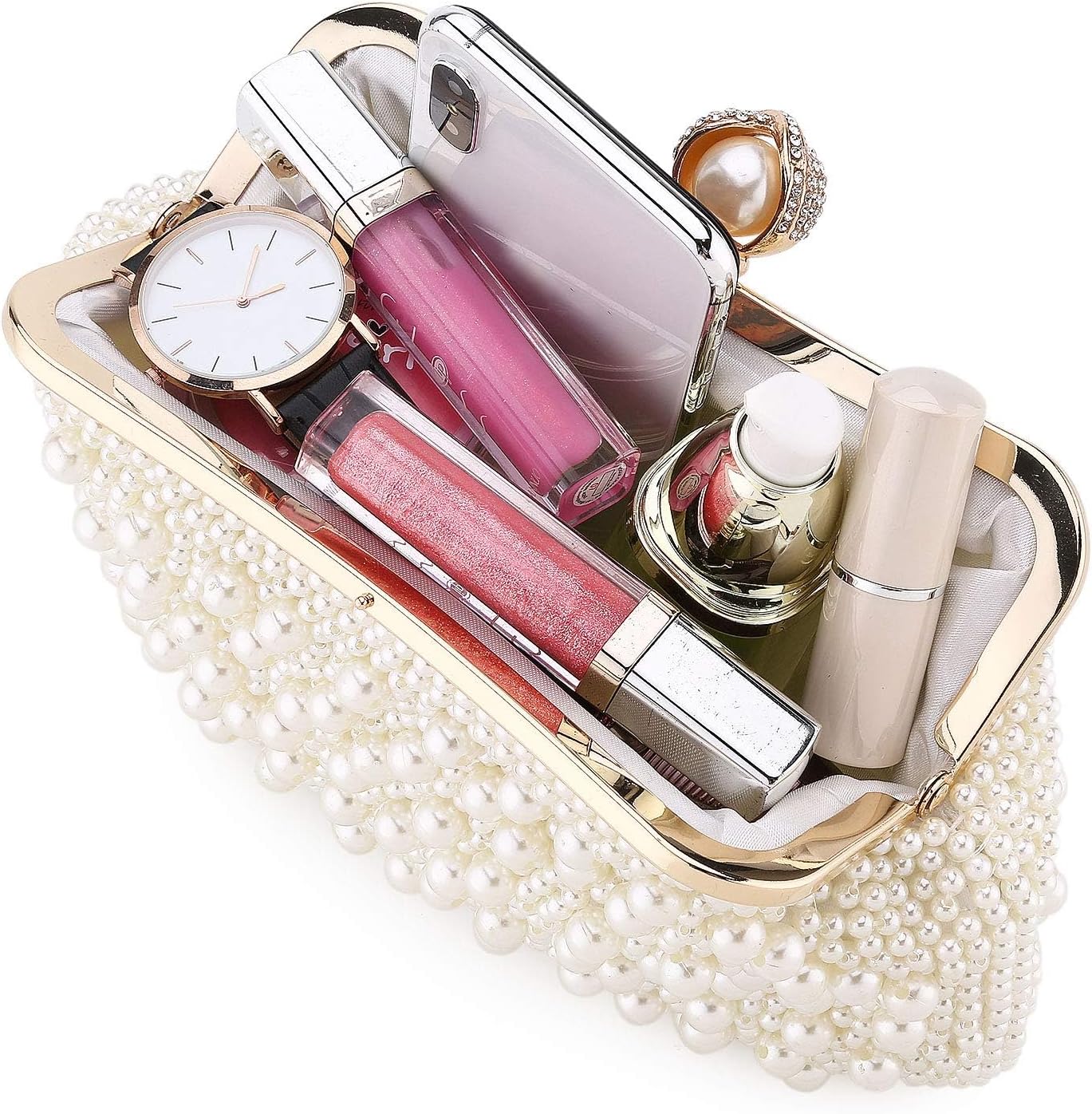 Shiny Pearls - Our evening bag is designed entirely with the pearls to give it elegant and shiny. The lining made of soft polyester can also protect your valuables in your pocket.