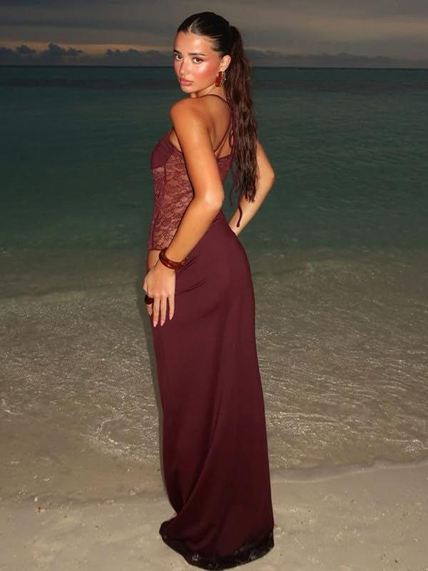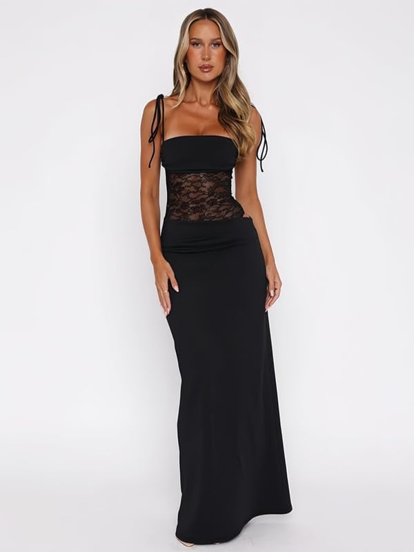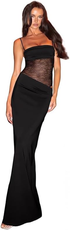 🌸 Unique Design: This chic maxi dress features a sheer lace bodice with adjustable straps for personalized fit, and includes snap closures at the crotch for easy dressing, while the waist cutouts add a daring yet sophisticated touch. This slim fit long dress blending sensuality with timeless elegance.
