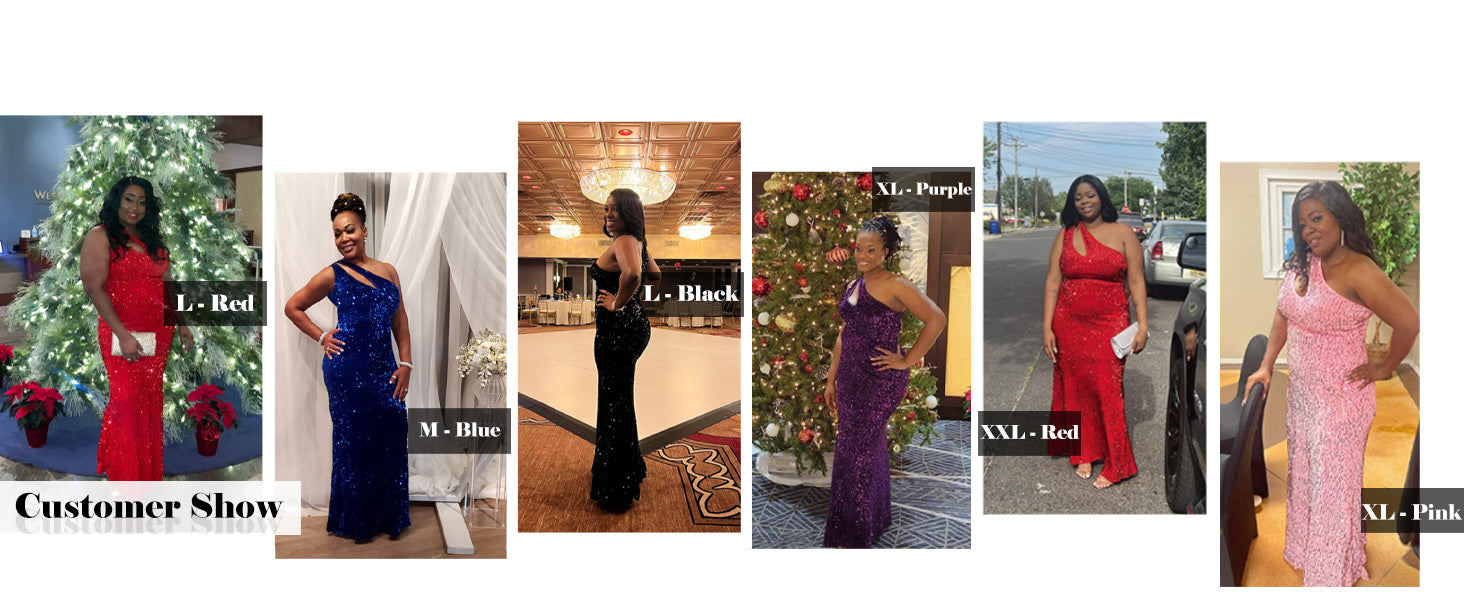 Size:M L XL XXL XXXL/ Color: black and red. The sequins with bodycon style, make you look sexy and elegance.