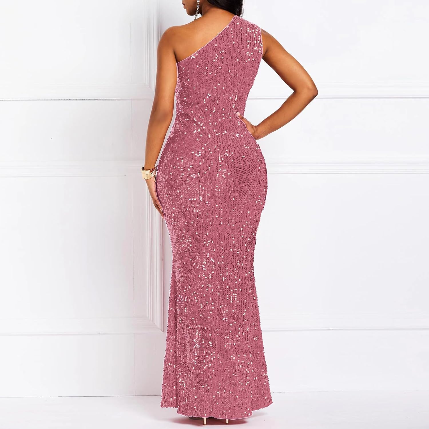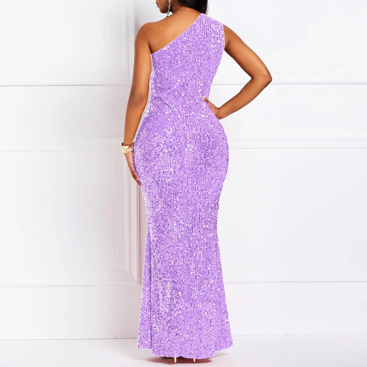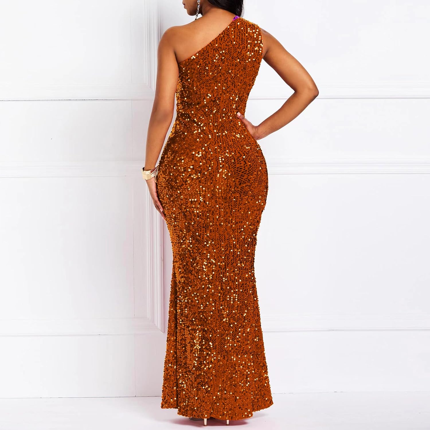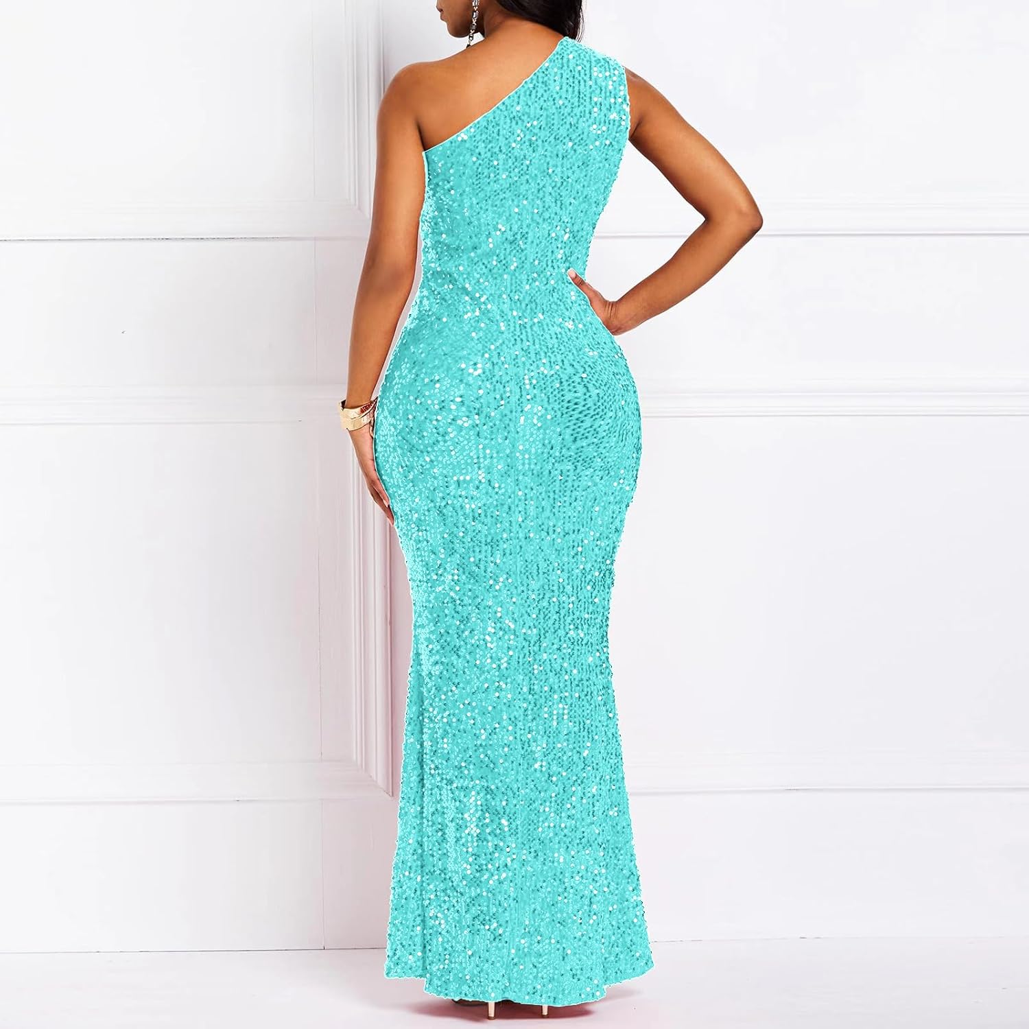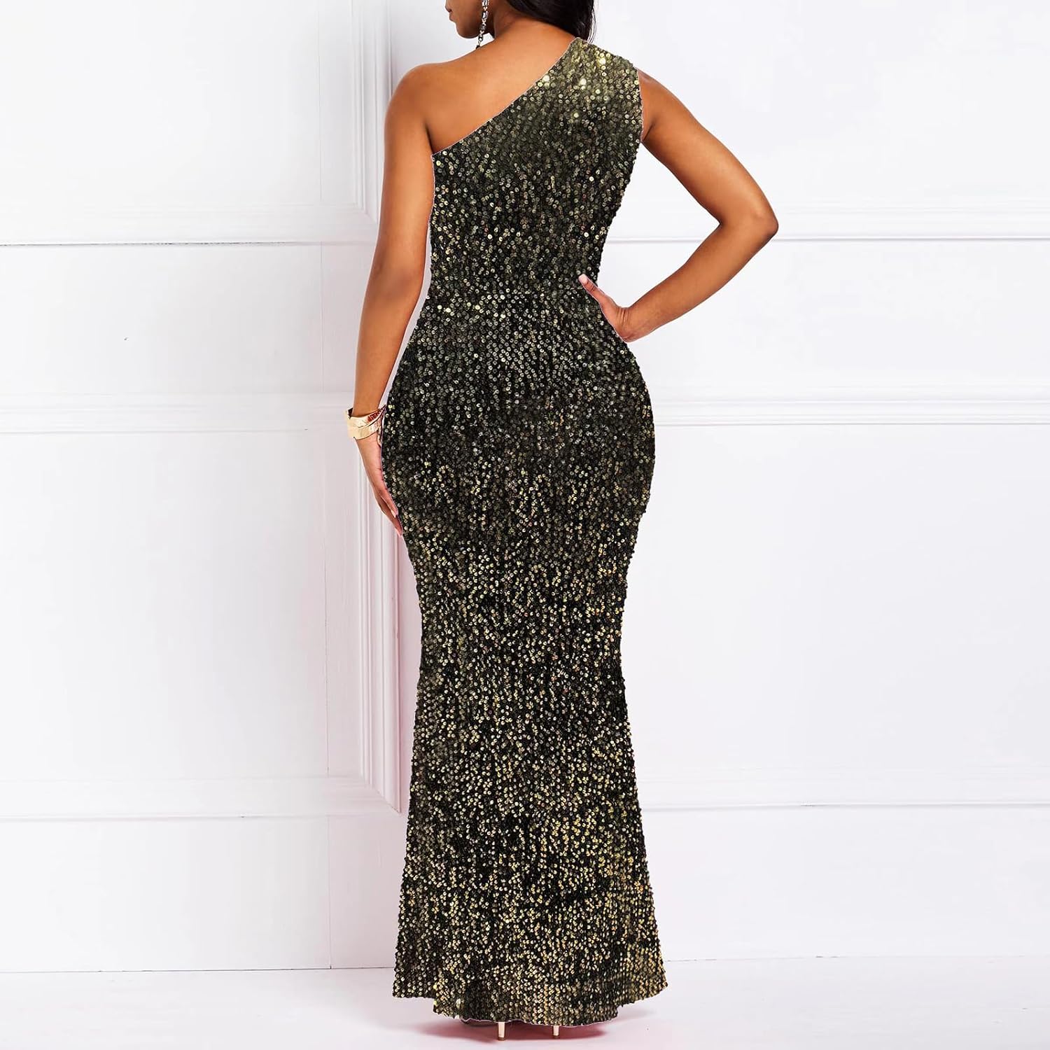 Sequins Fashion Sleeveless Oblique Collar Mermaid Women's Maxi Dress Bodycon Dress Party Dress - M / Black is backordered. It will be shipped when back in stock.