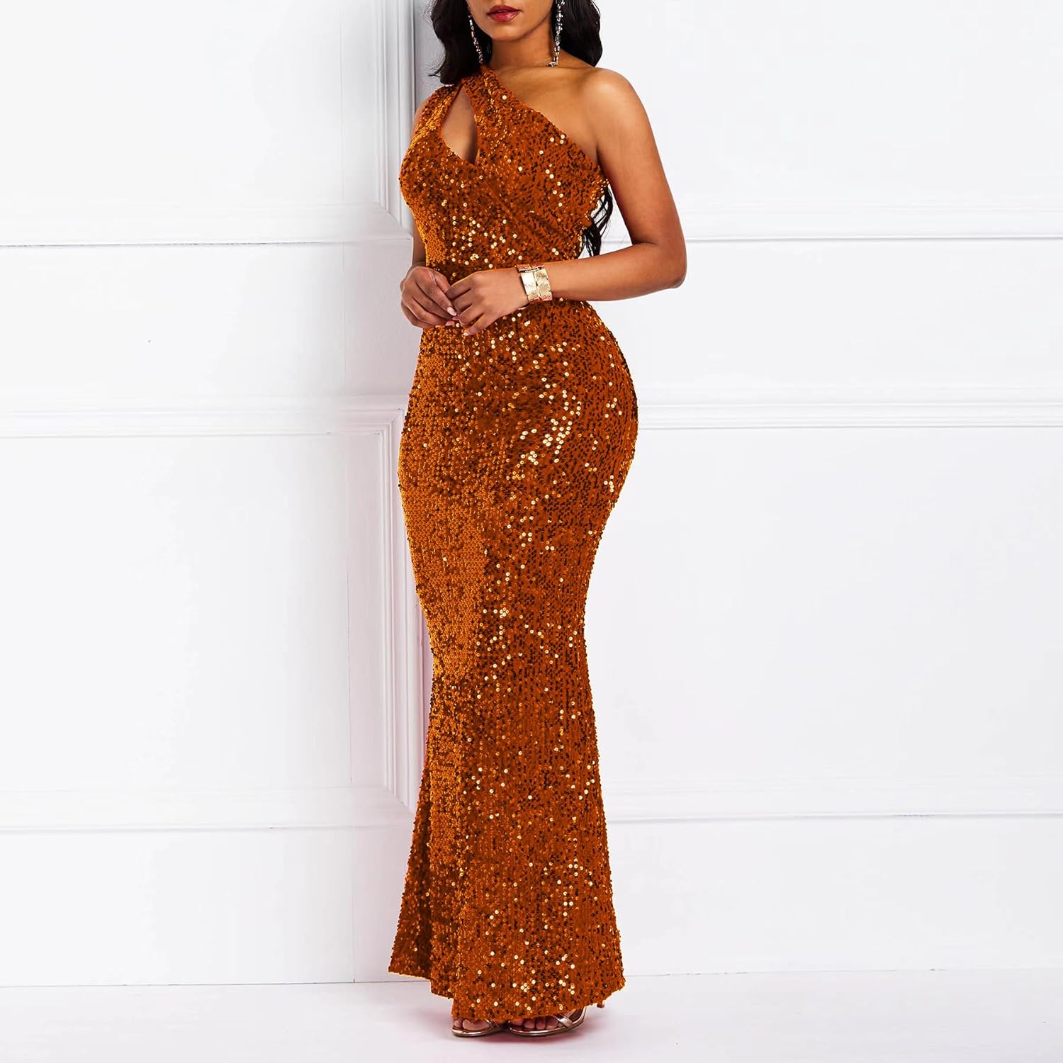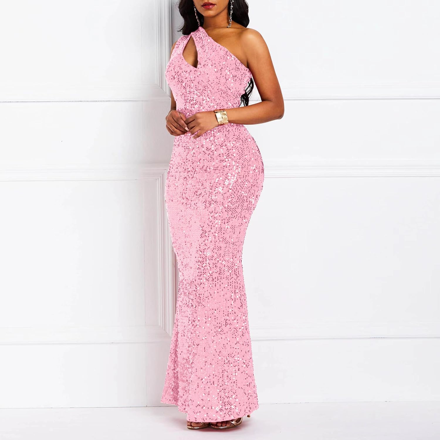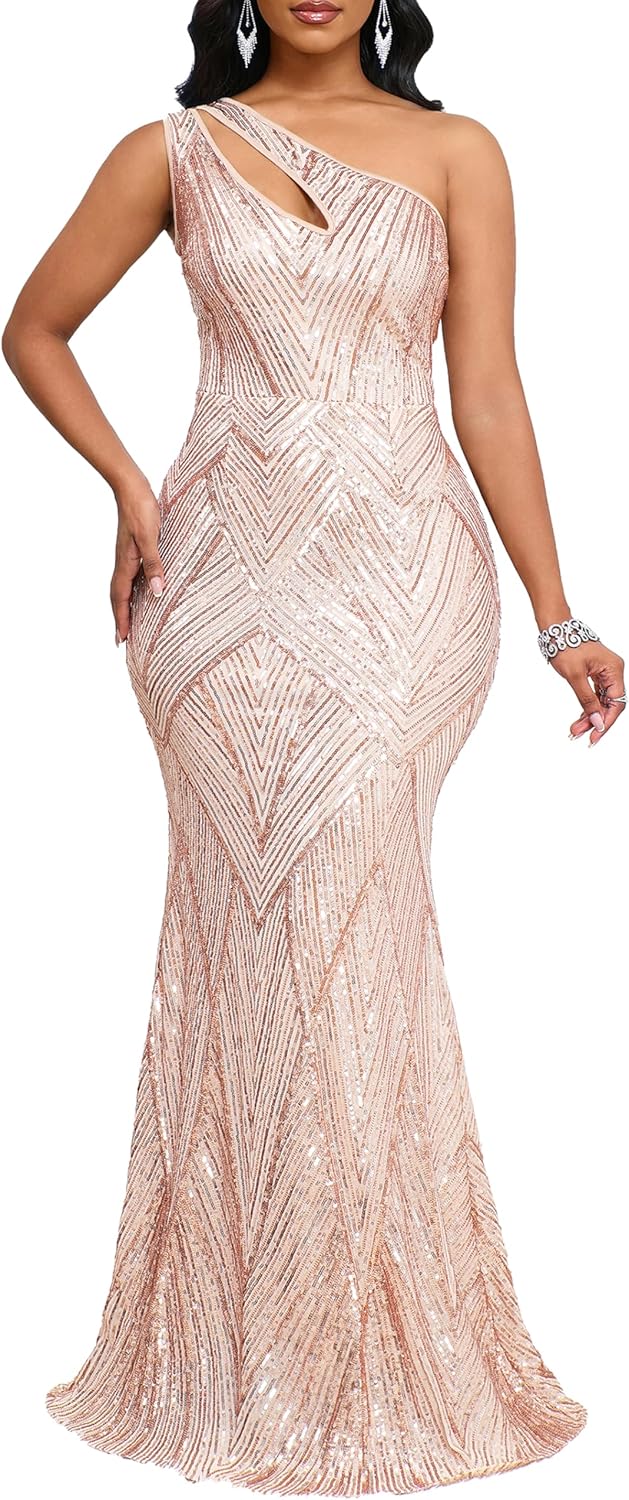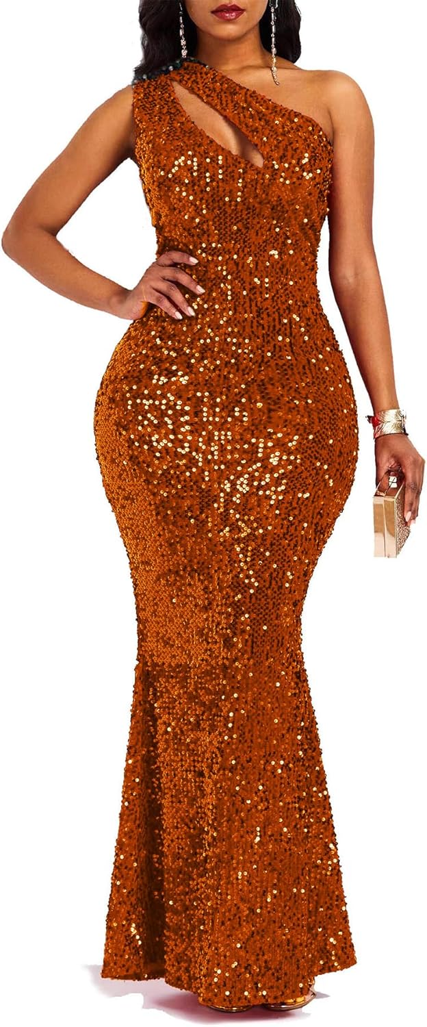 Sequins Fashion Sleeveless Oblique Collar Mermaid Women's Maxi Dress Bodycon Dress Party Dress