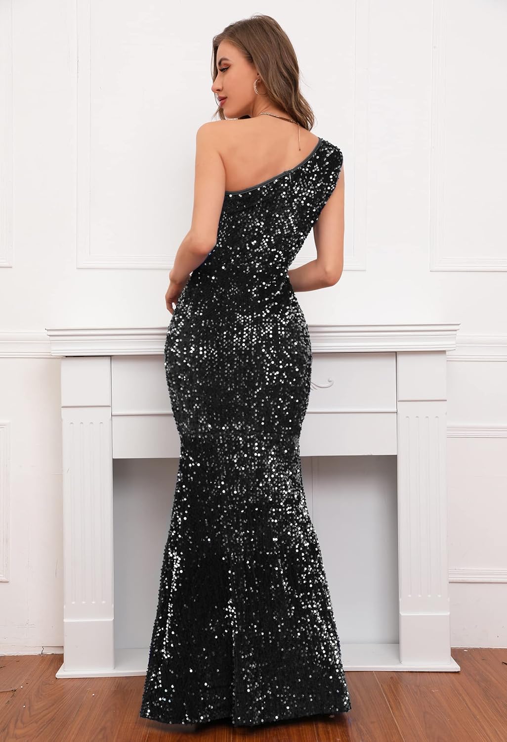 Sequin Evening Dress Long Sleeves Side Split Floor-Length Formal Gowns 00824