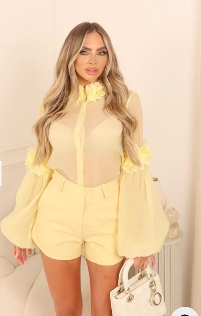 Summer yellow floral collar sheer shirt