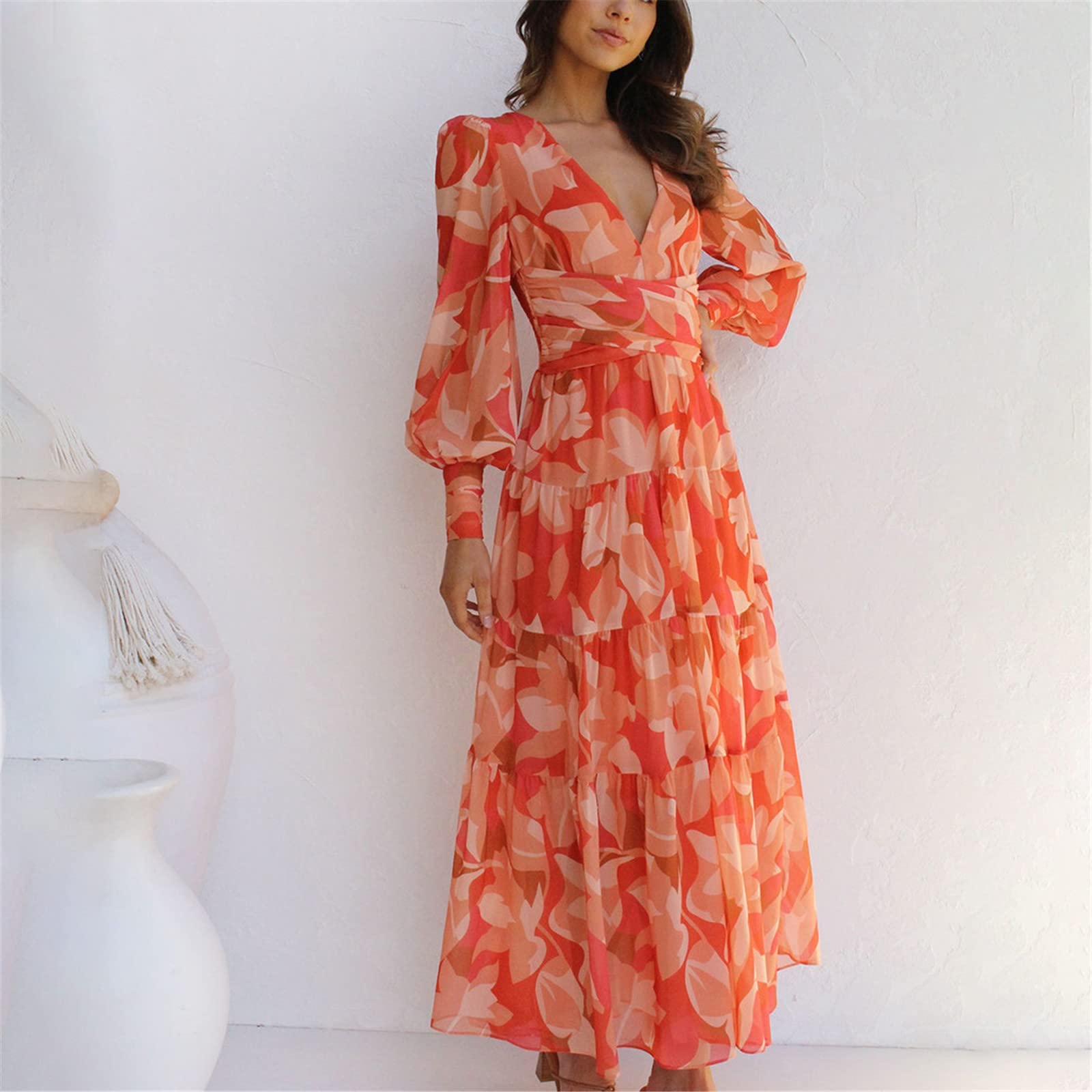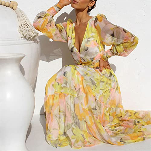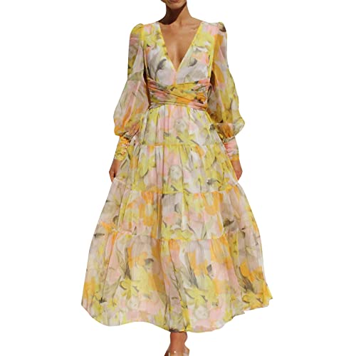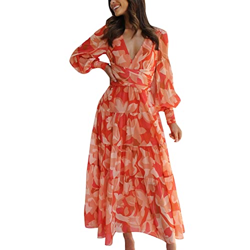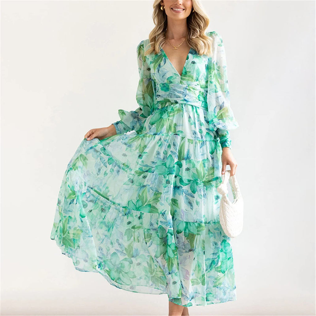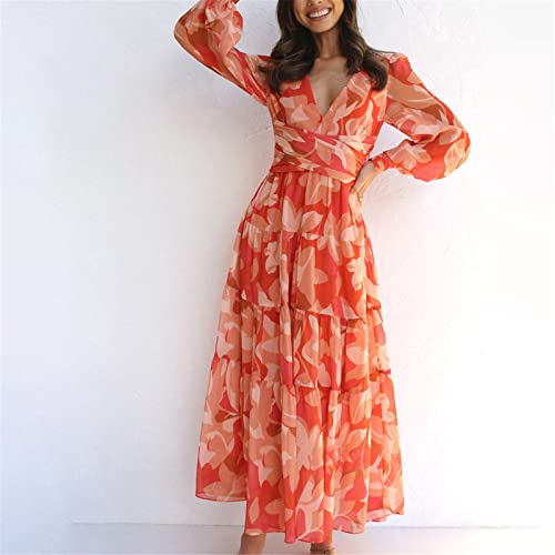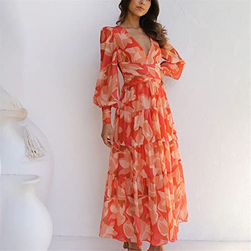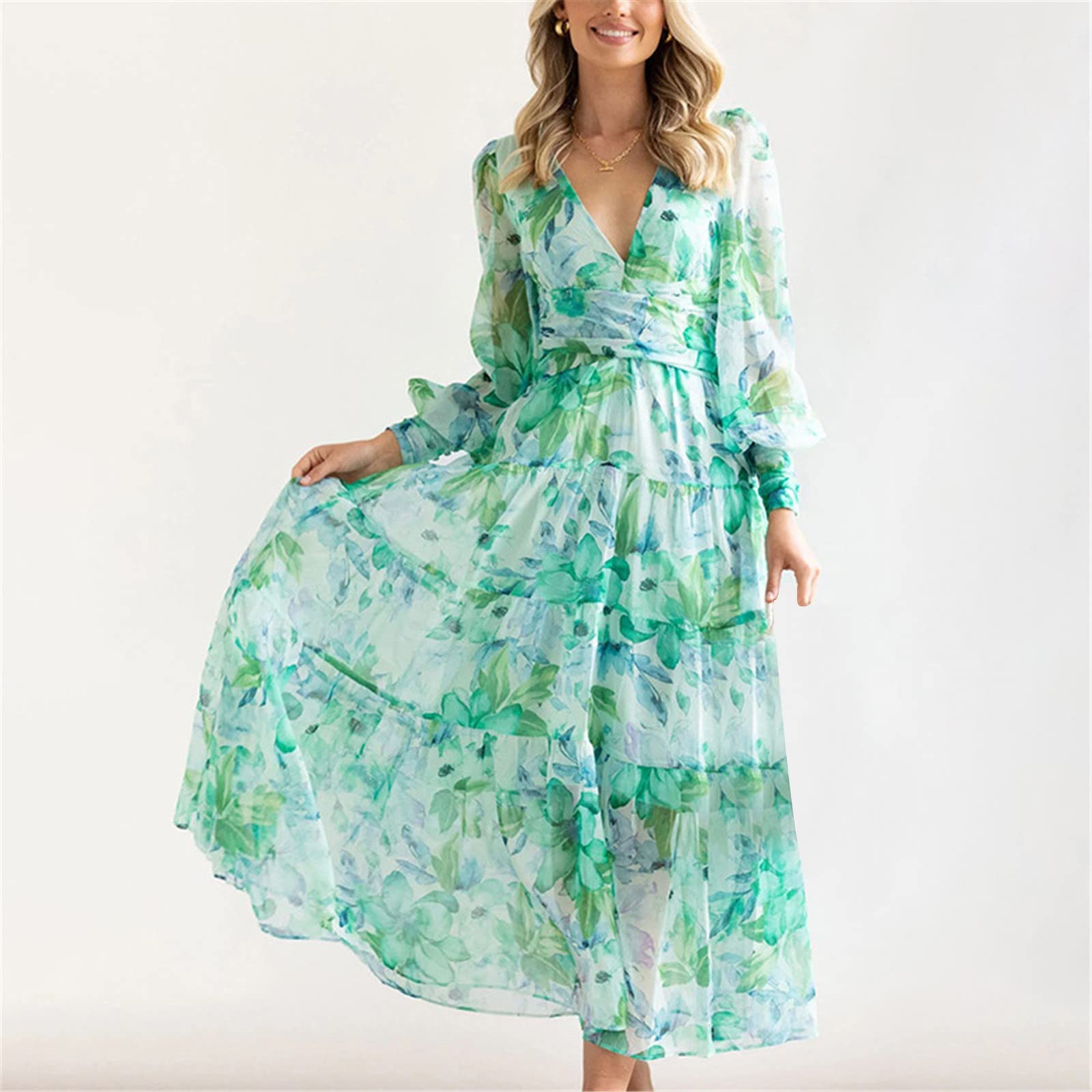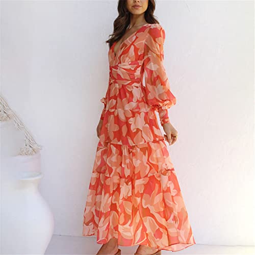 Womens plus Size Formal Dresses Ladies' Spring And Summer 2023 Leisure Printed Long Sleeve V Neck Sun Dress