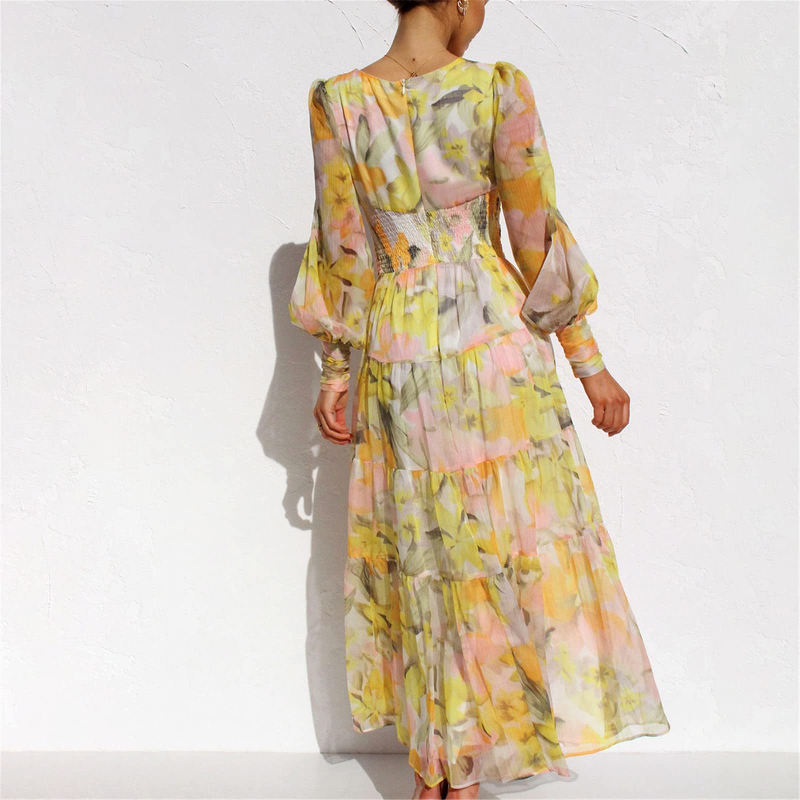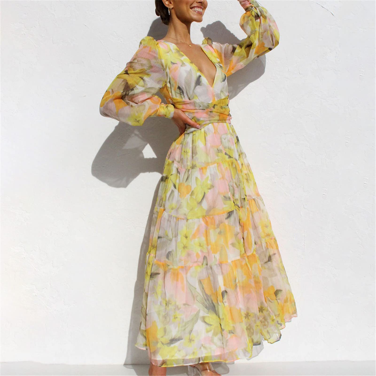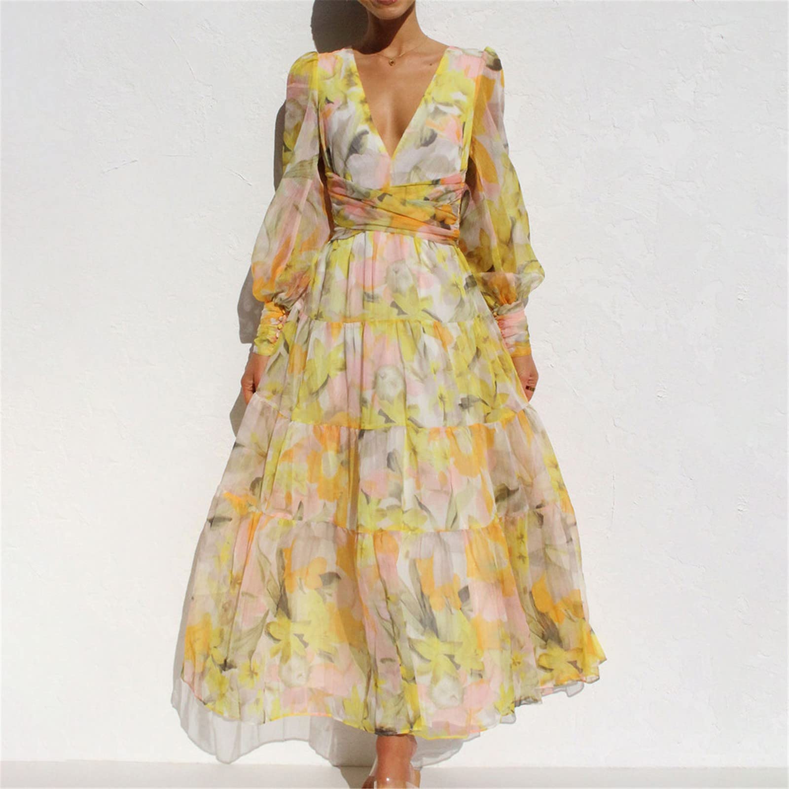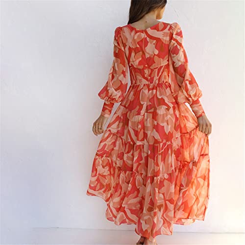 Womens plus Size Formal Dresses Ladies' Spring And Summer 2023 Leisure Printed Long Sleeve V Neck Sun Dress