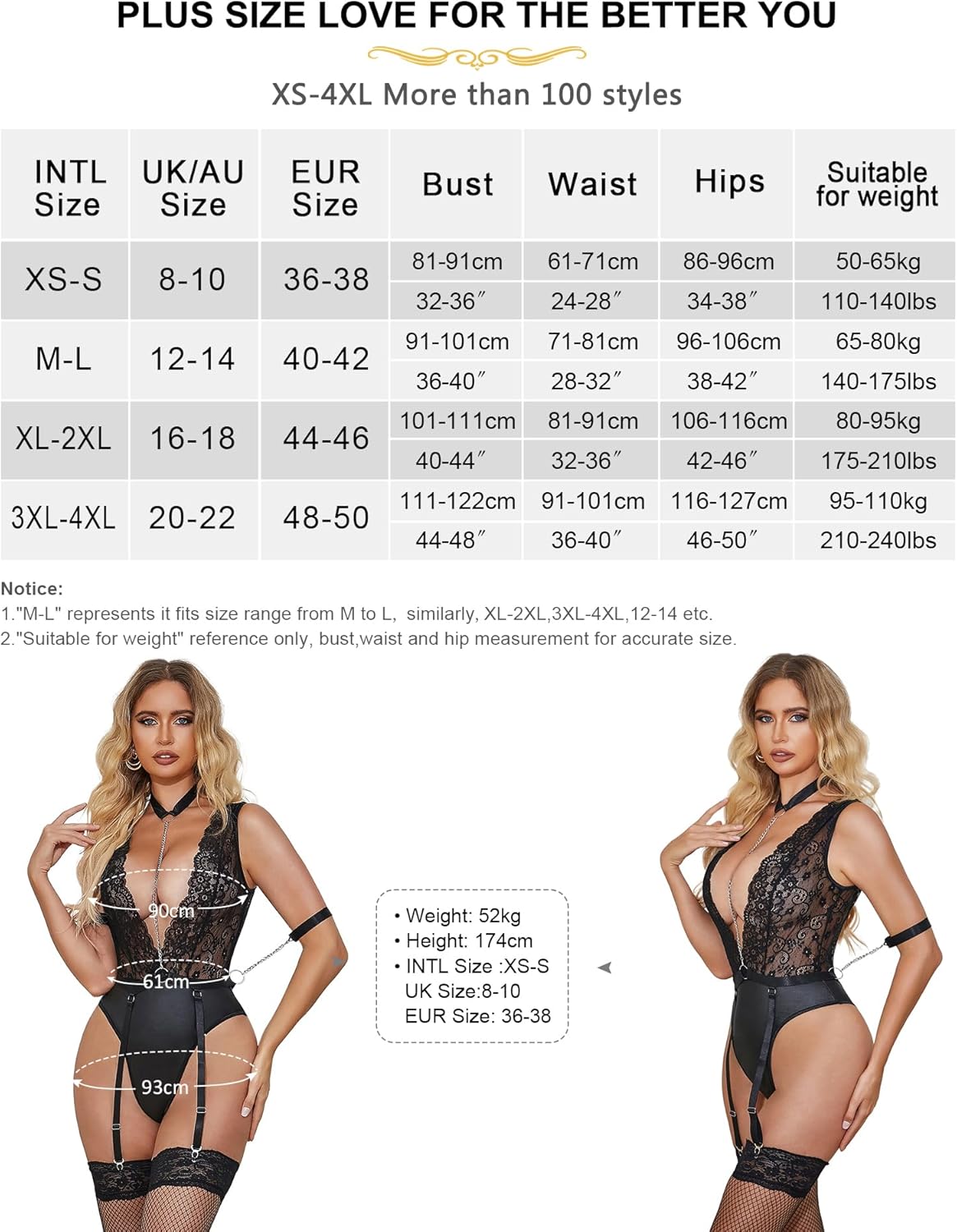Sexy Lace Teddy Bodysuit with Garter and Chain Sexy Outfits Women UK Size 8-22