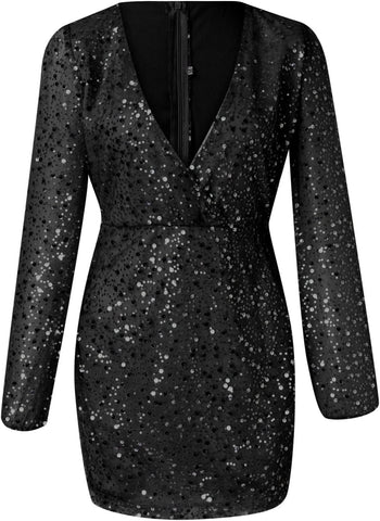 Velvet Sequin Cocktail Dress, Sparkly Winter Holiday Party Evening Long Sleeve Bodycon Dresses
