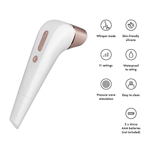 Satisfyer 2 Pressure Wave Vibrator is the popular, elegant, innovative clitoral vibe designed with cutting-edge pressure wave technology for contact-free indulgence you will not soon forget. Satisfyer 2 pairs gentle suction with vibration to offer a sensation so intense, you'll wonder how you ever had a clitoral orgasm before. The slender body of Satisfyer 2 fits perfectly into your hand and provides easy-to-reach clitoral stimulation while offering 11 sensation functions at the touch of an easy-to-use control pad. Satisfyer 2s ergonomic shaped coupled with its intuitive technology make this vibe a piece of art that you can use to get you off, with or without a partner. Made from high-quality, body-safe silicone (stimulation head), Satisfier 2 Pressure Wave Vibrator offers a safe way to play that you will feel very good about. Thanks to the practical, waterproof battery compartment and twin operating systems, you can experience multiple pleasures whatever the time and place! Simply lubricate well with a favourite water-based lube and choose the vibration and suction speed or pattern that feels right for you. Satisfier 2 Pressure Wave Vibrator uses 2 AAA batteries (sold separately) to deliver sensations you've never felt before and is the pinnacle of satisfaction by offering touchless clitoral stimulation and a beautiful design.