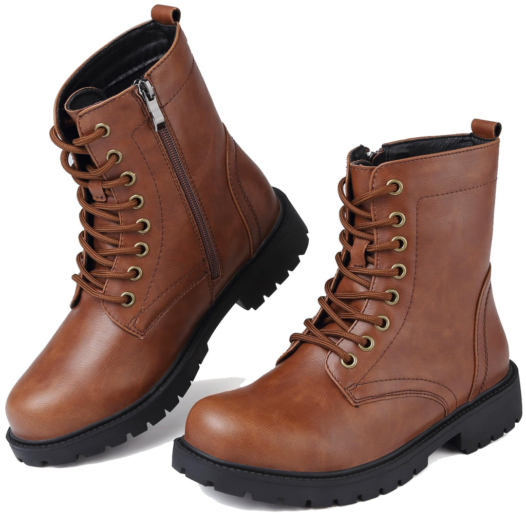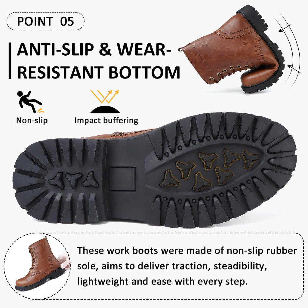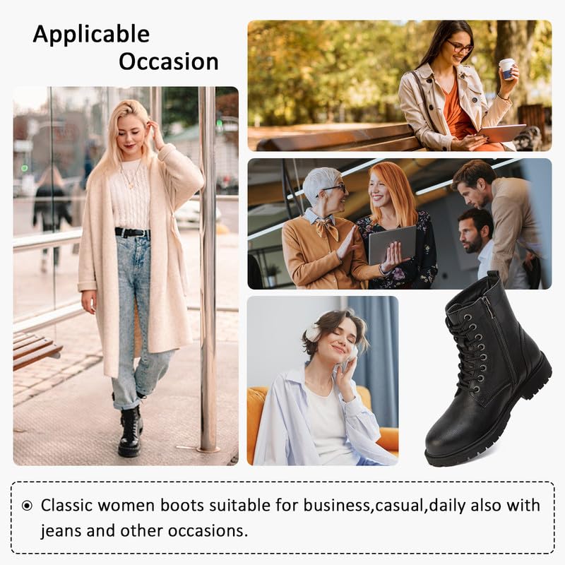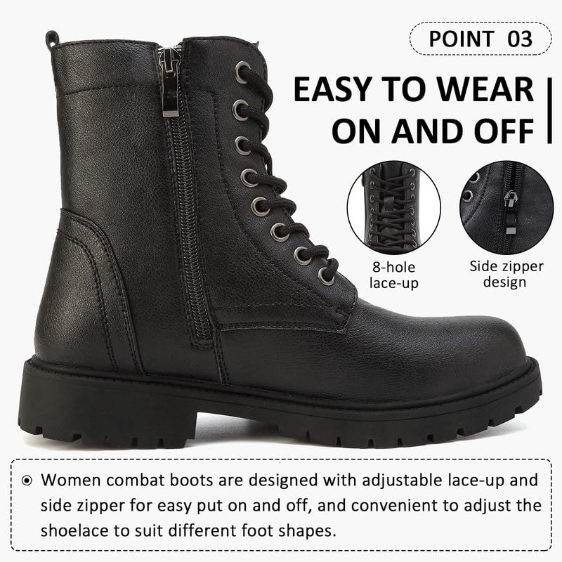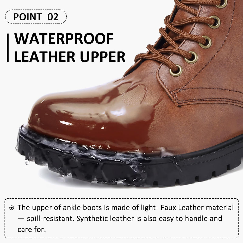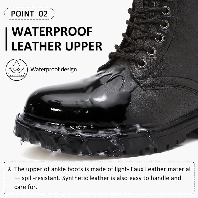 - WATERPROOF LEATHER UPPER:The upper of ankle boots is made of light- Faux Leather material — spill-resistant. Synthetic leather is also easy to handle and...