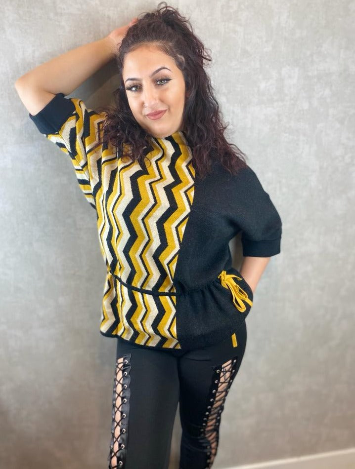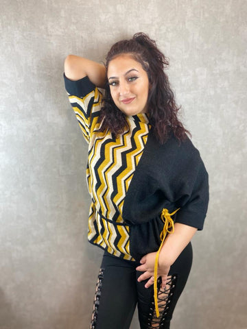 Mustard Zig Zag Printed High Collar Top