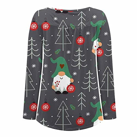 Women Christmas Sweatshirt O-Neck Pullover Tops Novelty Funny Graphic Long Sleeve T-Shirts Xmas Holiday Casual Sweatshirt Blouse with Pockets
