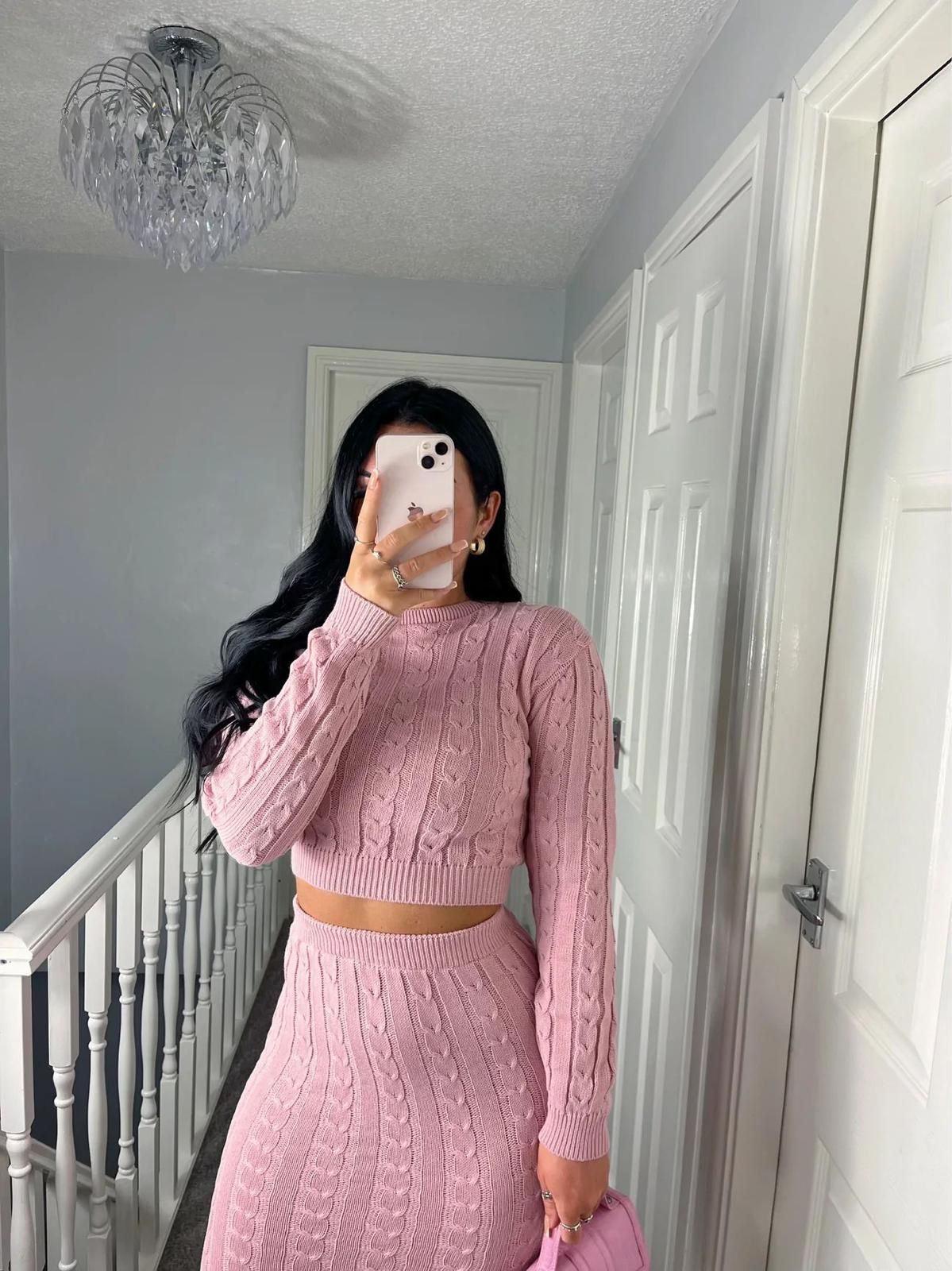 Ice blue, cosy cape coat with front knitted design to easily wrap around and style conveniently