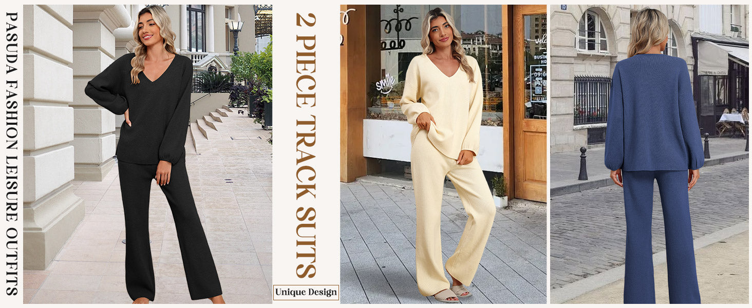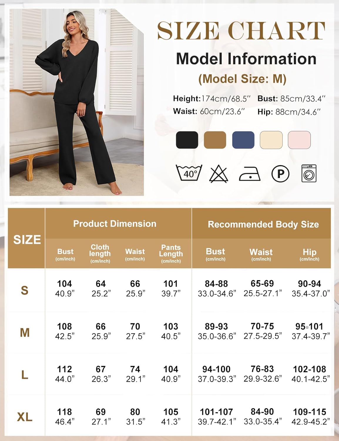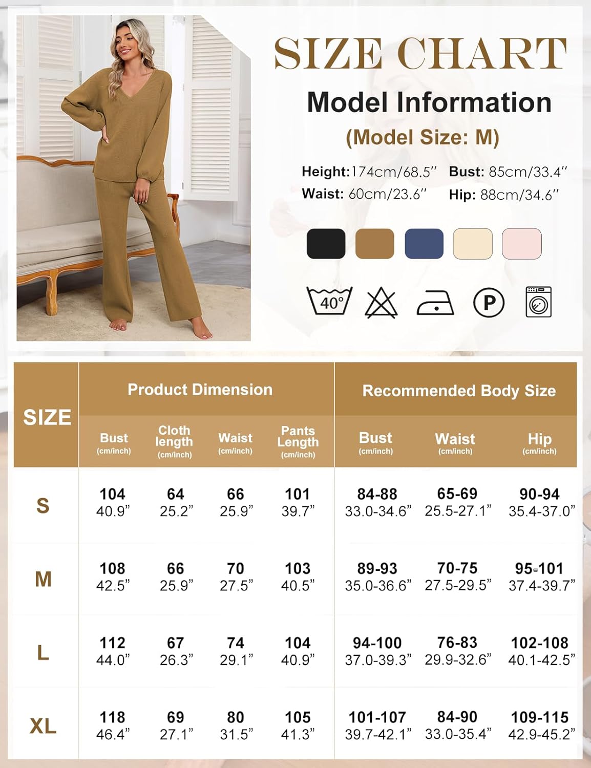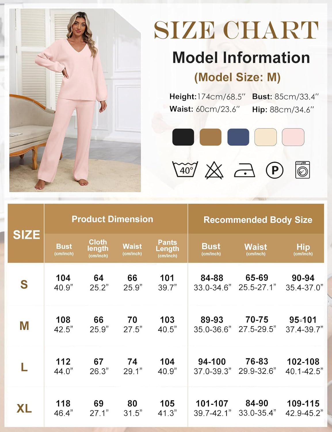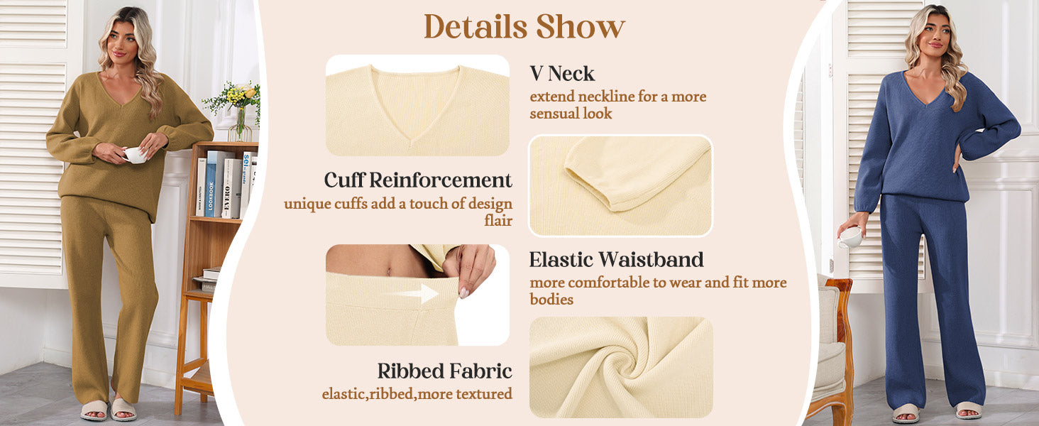 【Chic Design】: Long sleeve, loose fit and elasticated fabric design are suitable for more seasons and different body shapes to wear. Ribbed pattern, wrap-around V-neck and slightly tightened cuffs design give these 2 pieces women's tracksuits full set a textured and chic look. Perfect as leisure loungewear or tracksuit set.