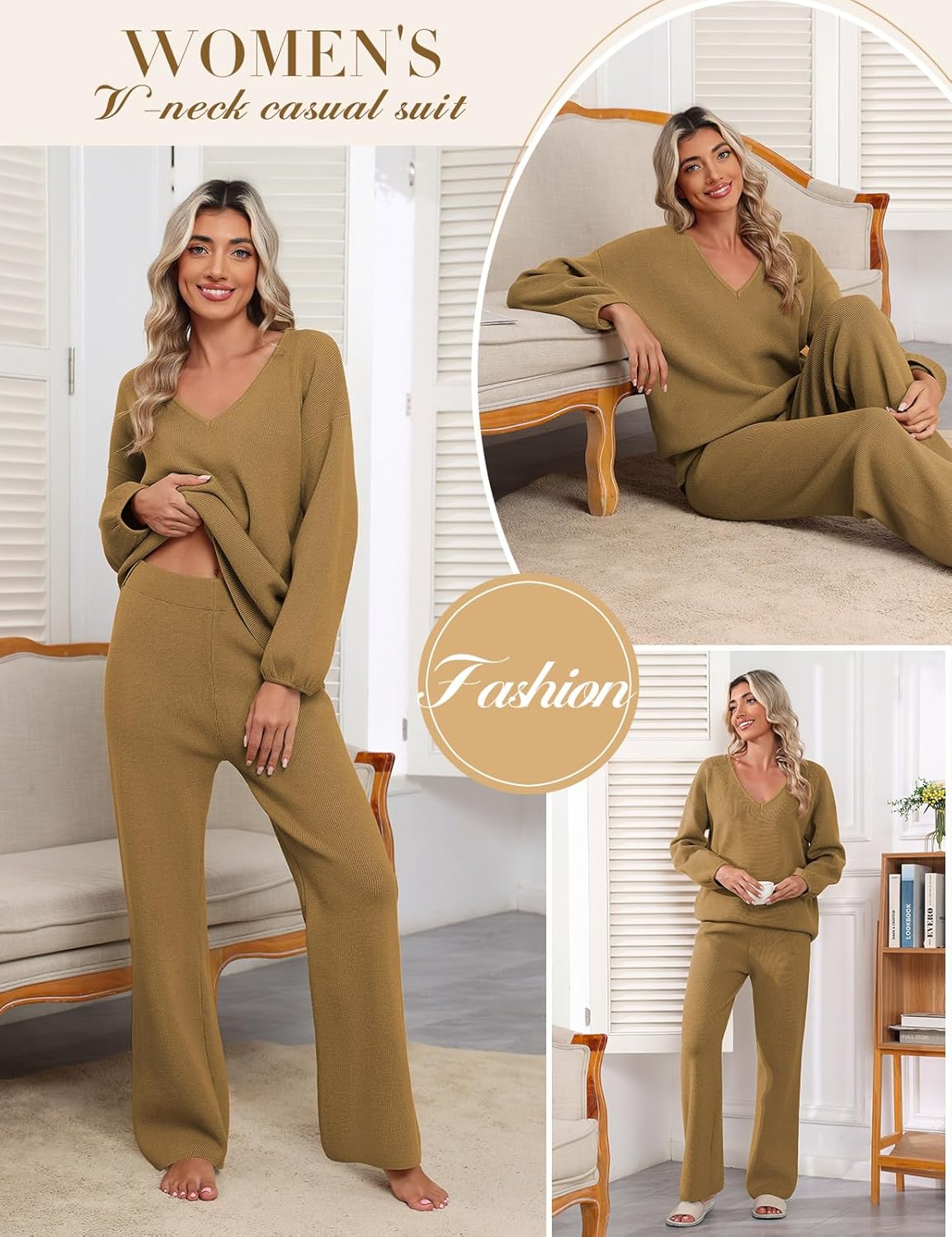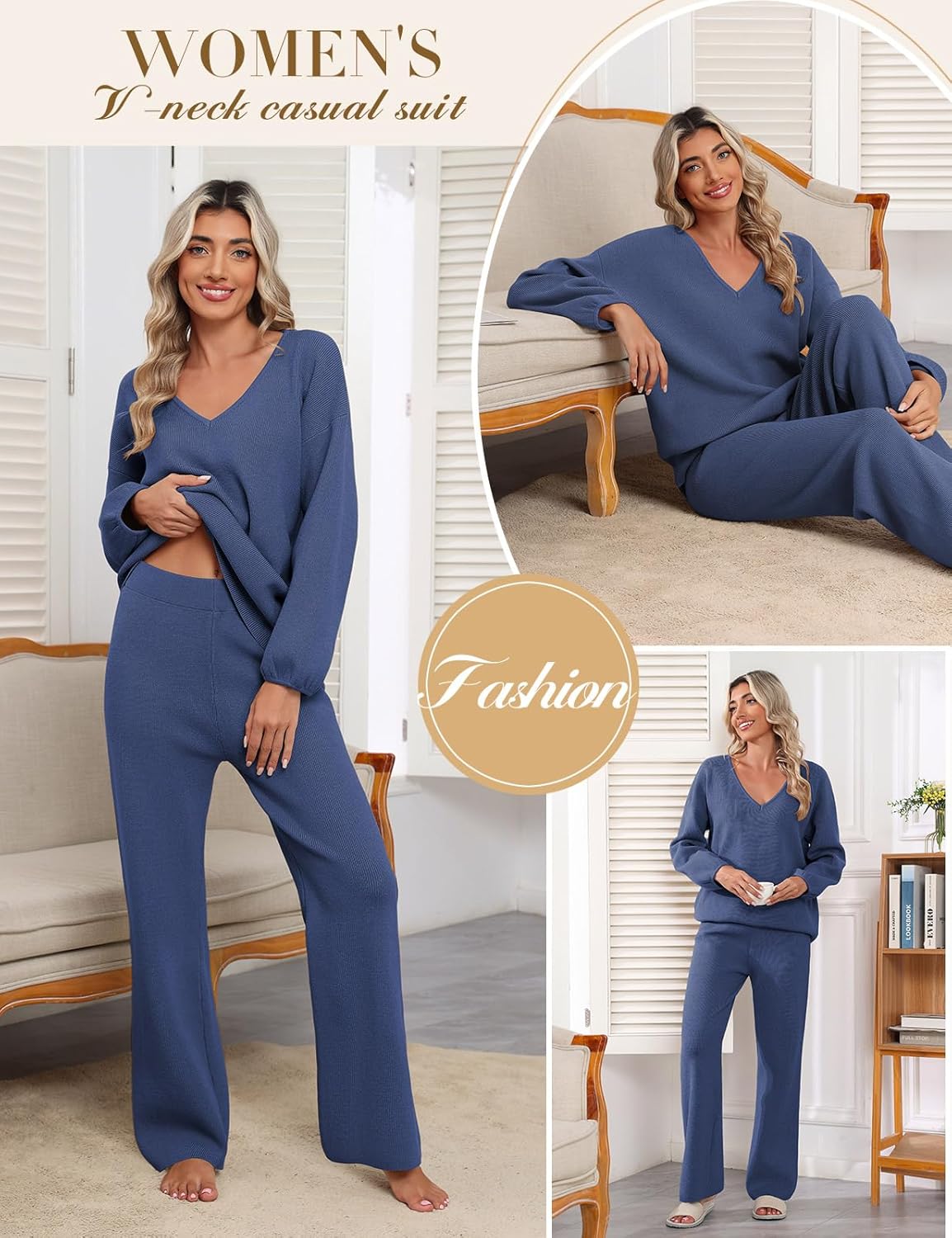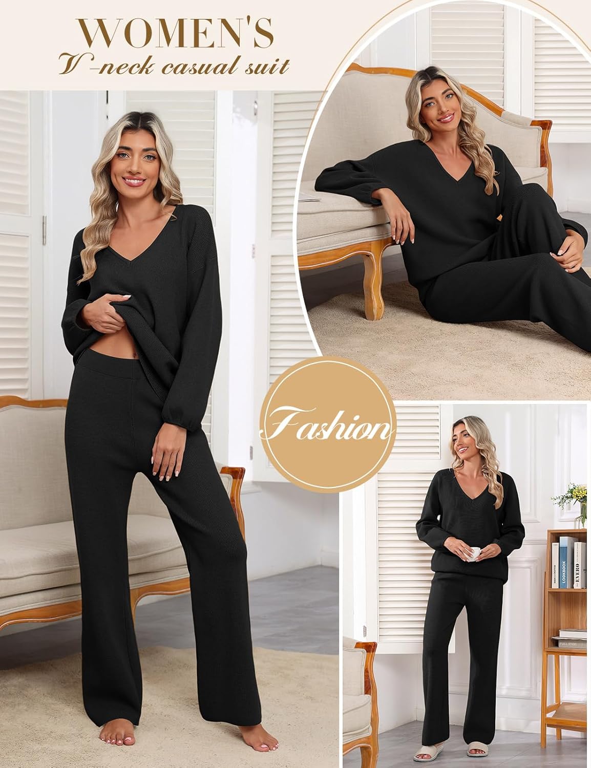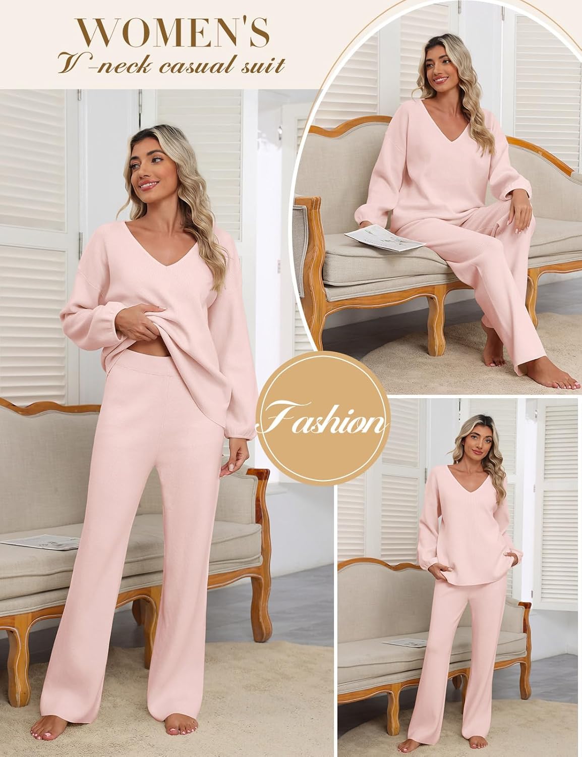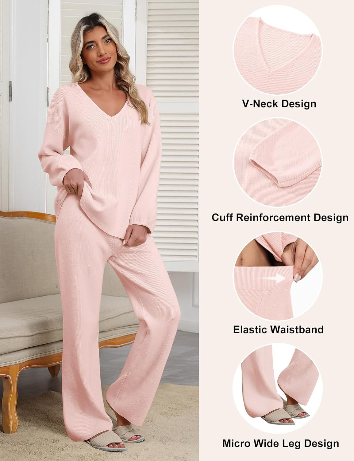 【Chic Design】: Long sleeve, loose fit and elasticated fabric design are suitable for more seasons and different body shapes to wear. Ribbed pattern, wrap-around V-neck and slightly tightened cuffs design give these 2 pieces women's tracksuits full set a textured and chic look. Perfect as leisure loungewear or tracksuit set.