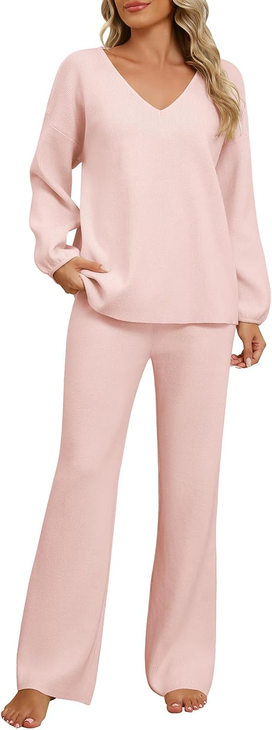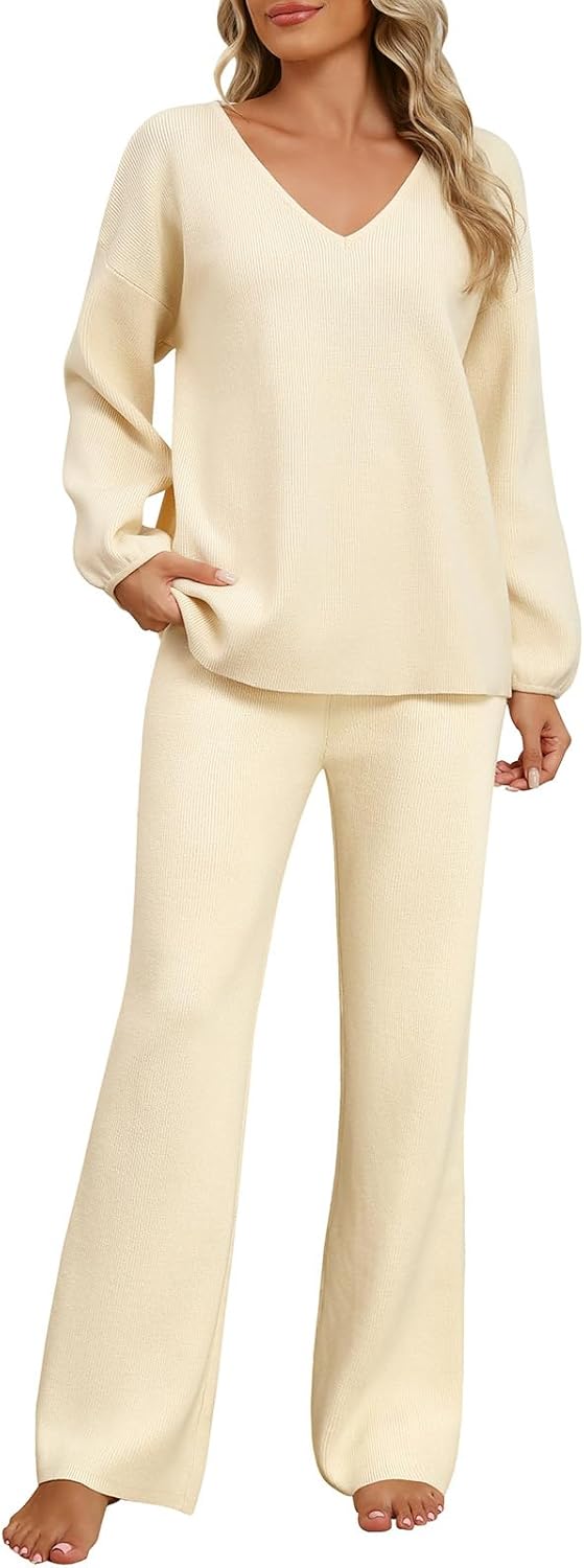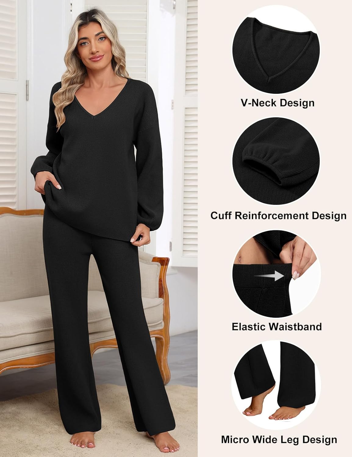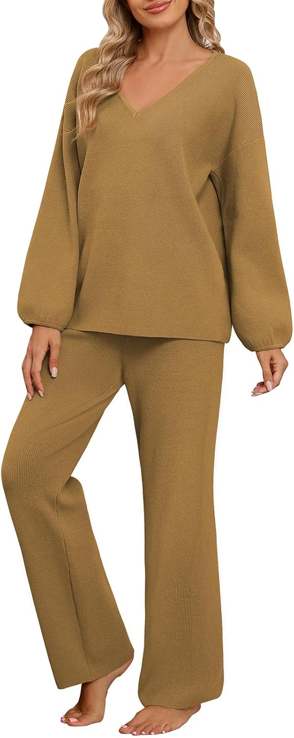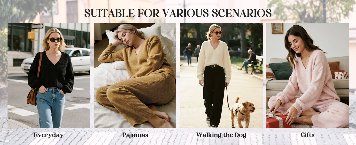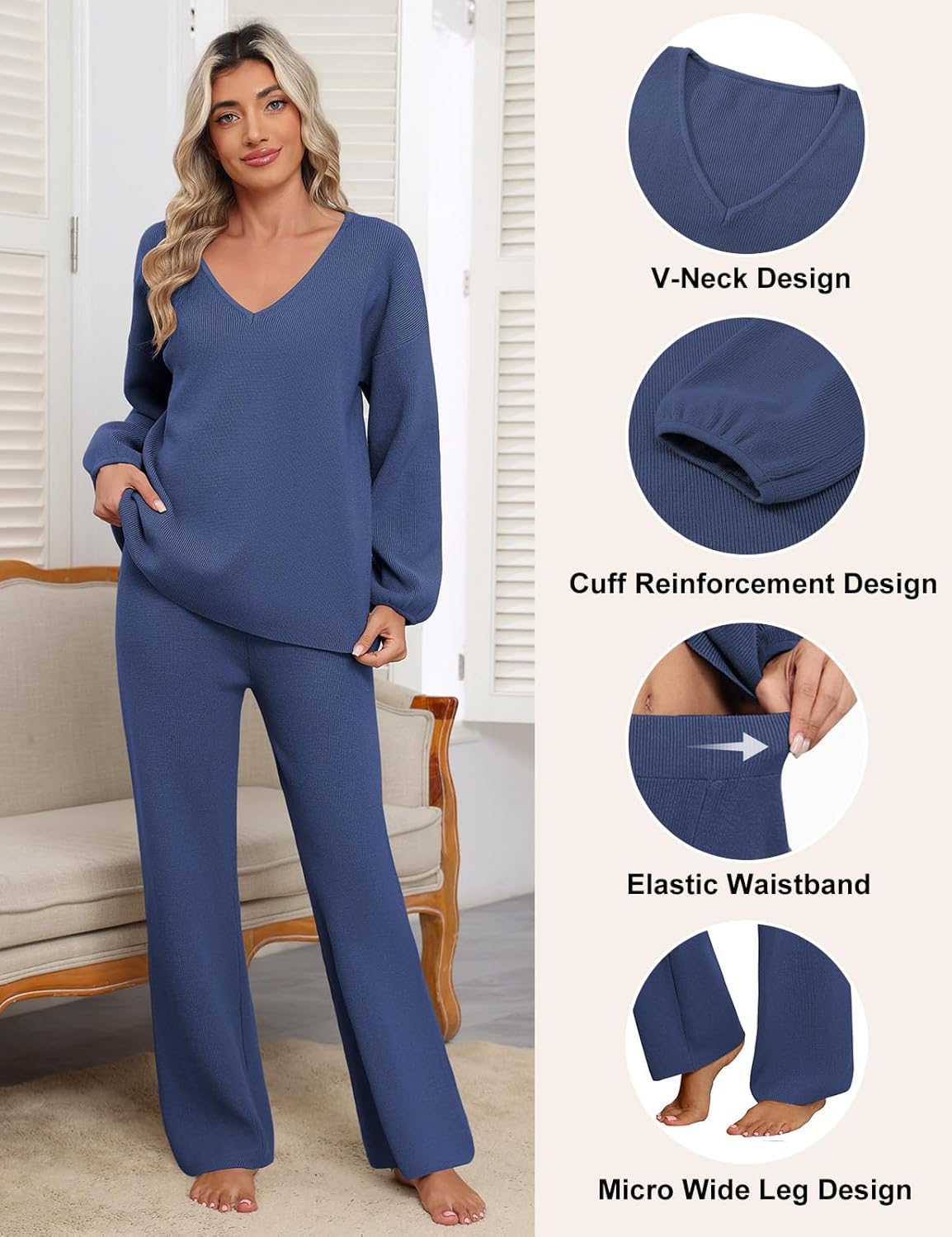 【Chic Design】: Long sleeve, loose fit and elasticated fabric design are suitable for more seasons and different body shapes to wear. Ribbed pattern, wrap-around V-neck and slightly tightened cuffs design give these 2 pieces women's tracksuits full set a textured and chic look. Perfect as leisure loungewear or tracksuit set.
