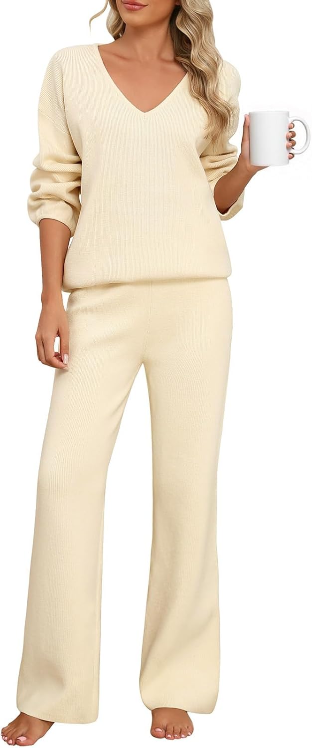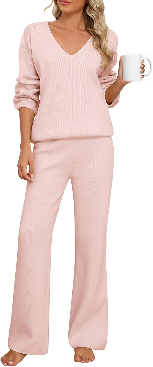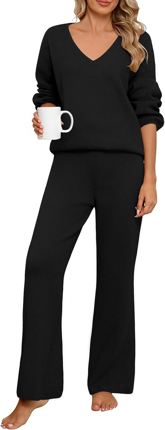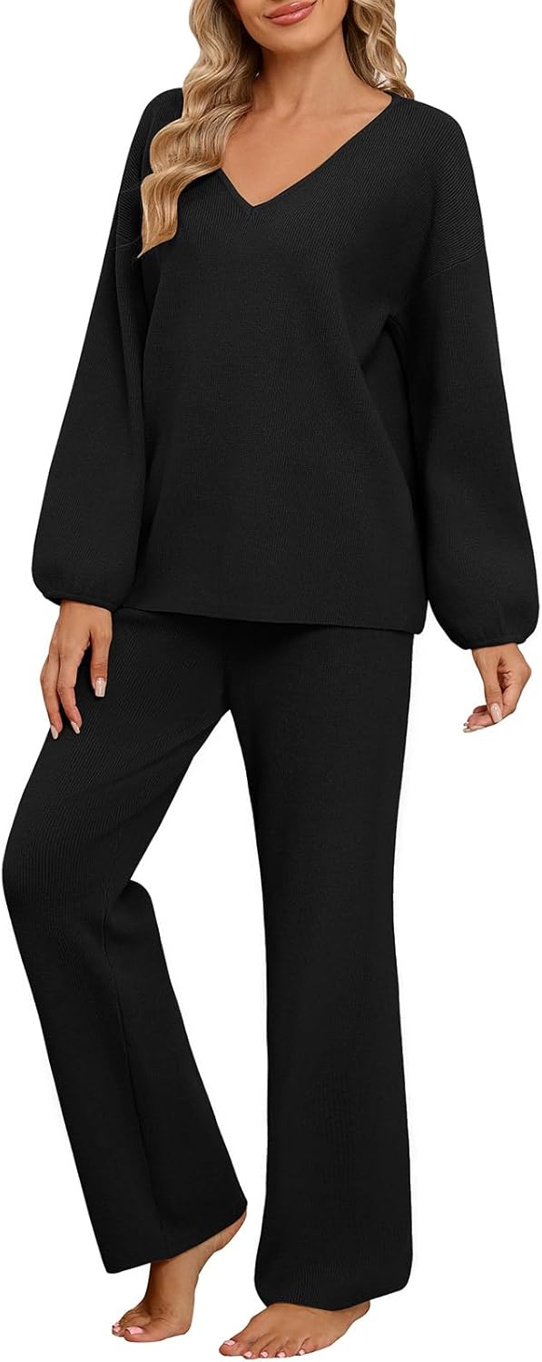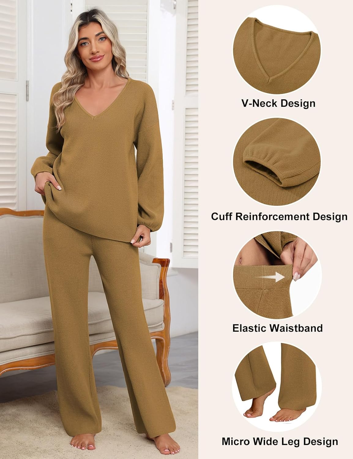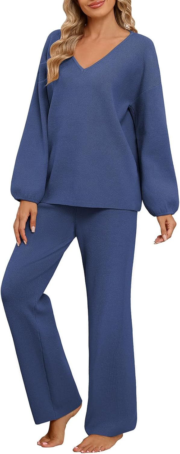 【Chic Design】: Long sleeve, loose fit and elasticated fabric design are suitable for more seasons and different body shapes to wear. Ribbed pattern, wrap-around V-neck and slightly tightened cuffs design give these 2 pieces women's tracksuits full set a textured and chic look. Perfect as leisure loungewear or tracksuit set.