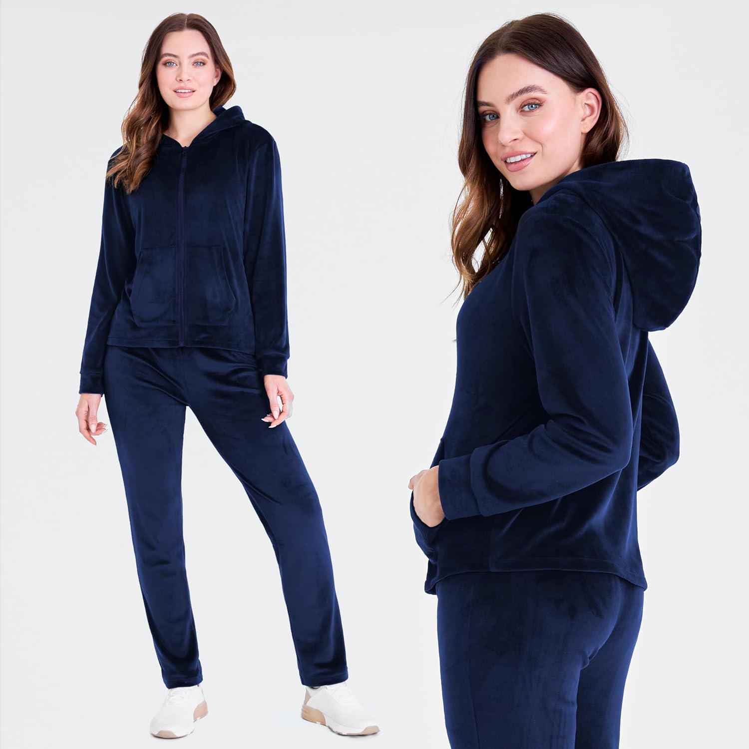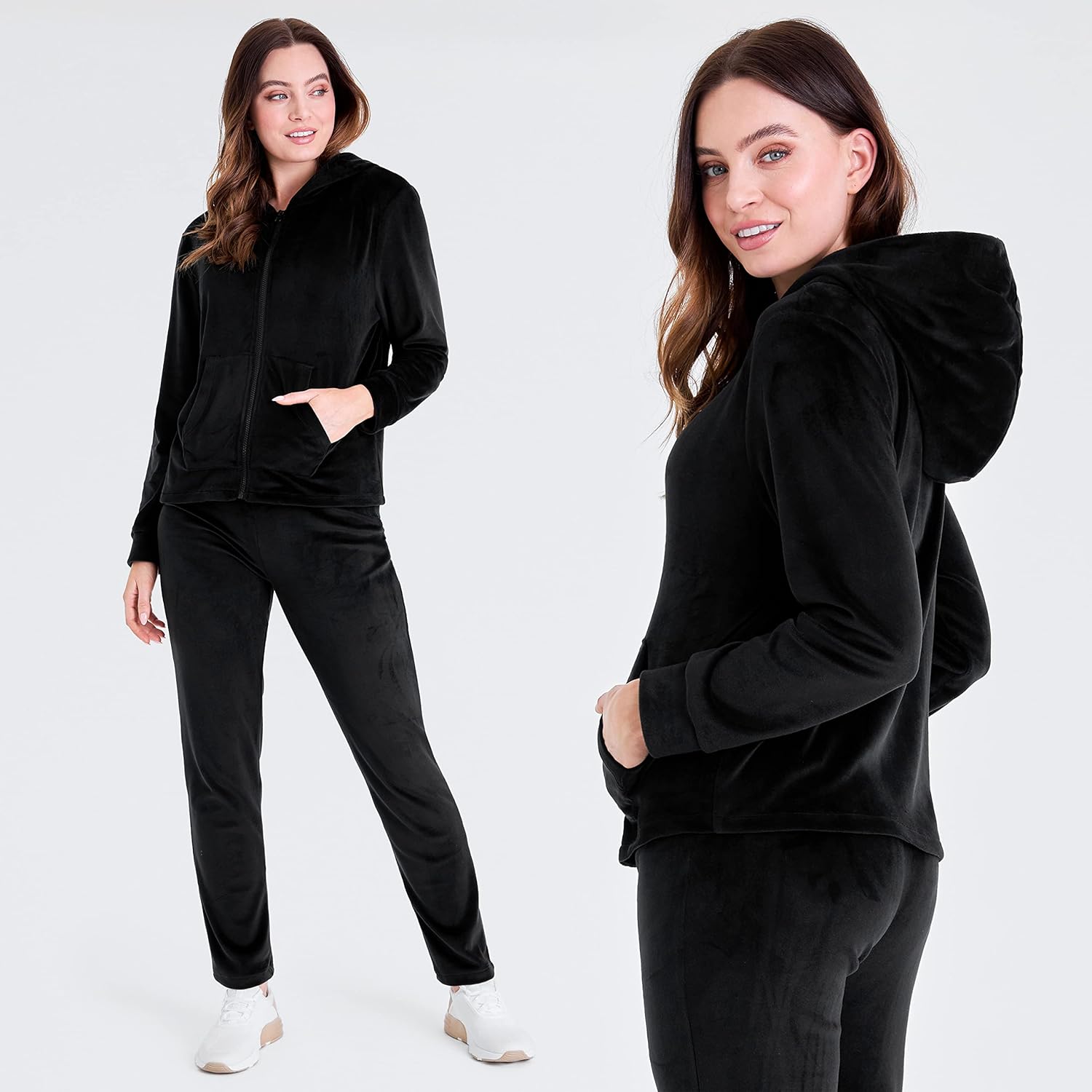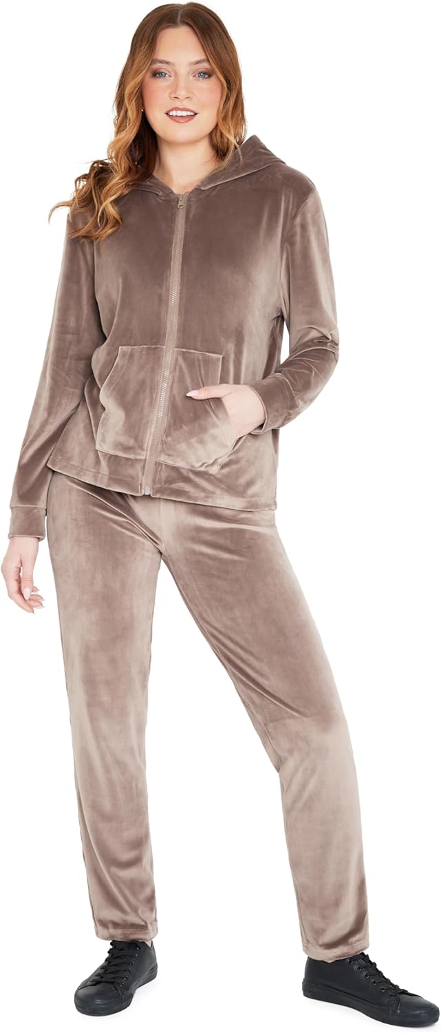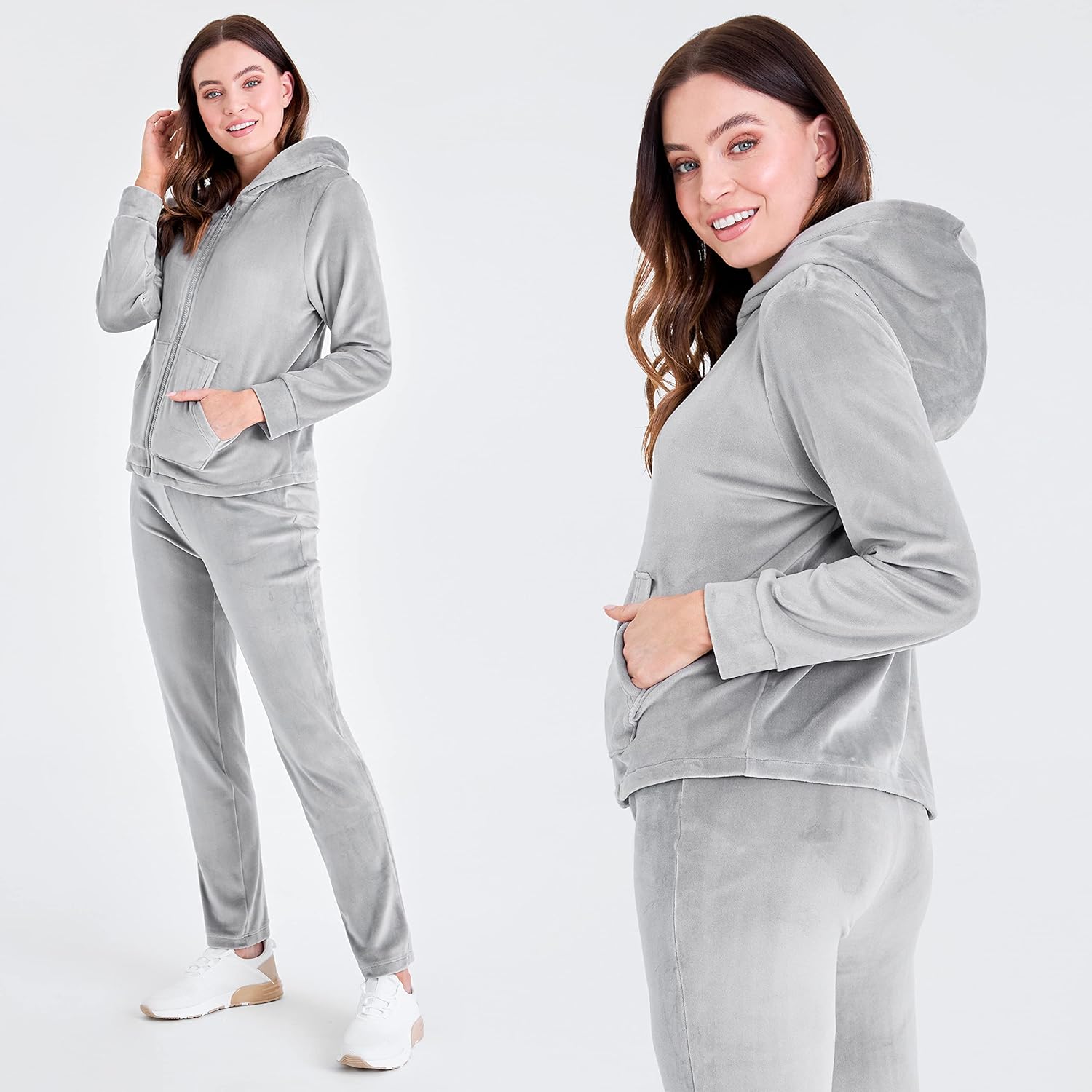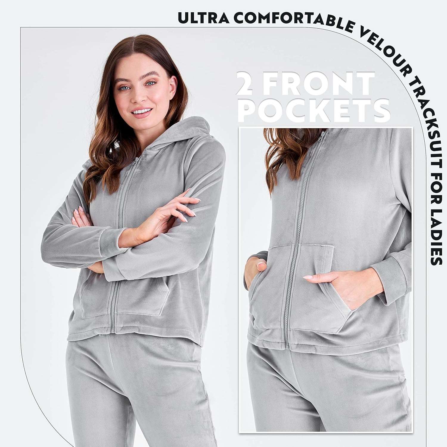 Velour womens tracksuit set with hoodie and joggers, in a range of stylish colours