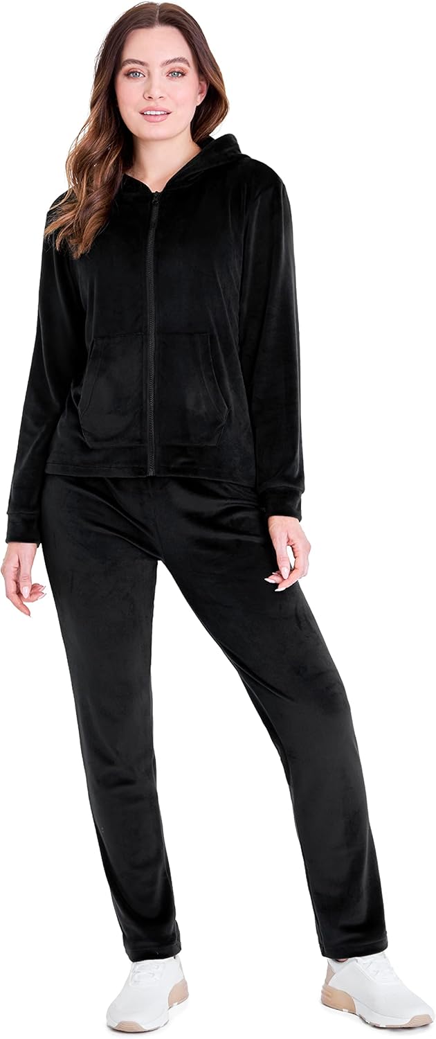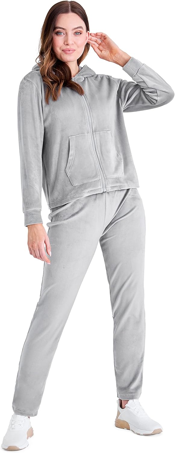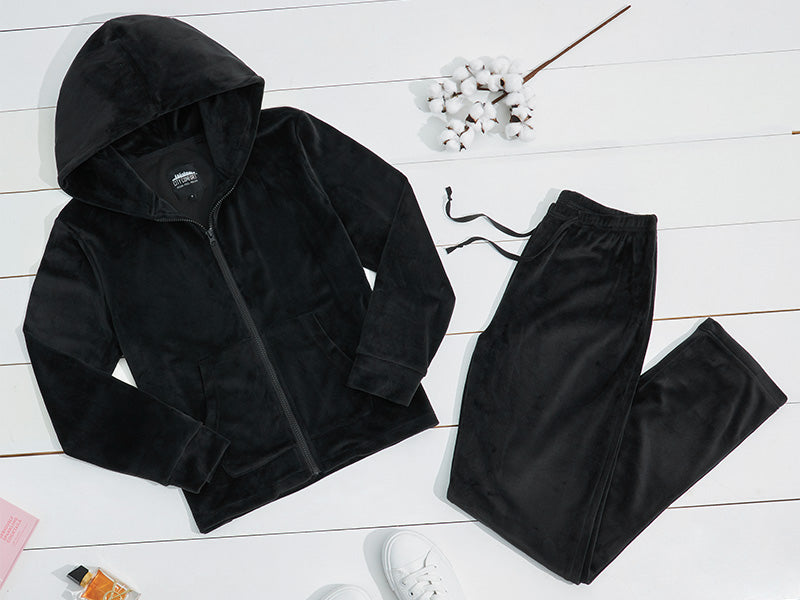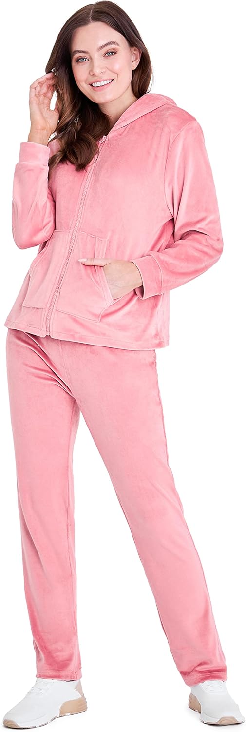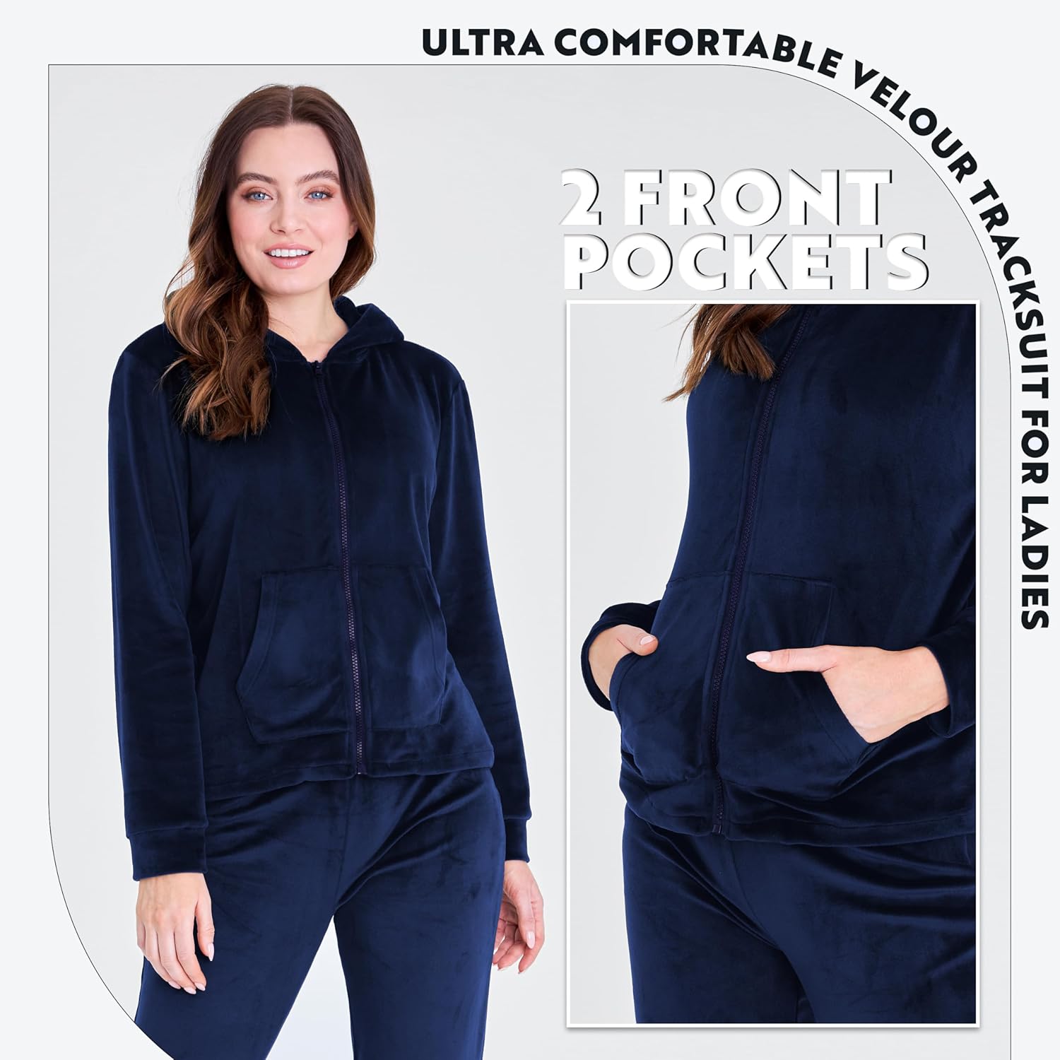 Velour womens tracksuit set with hoodie and joggers, in a range of stylish colours