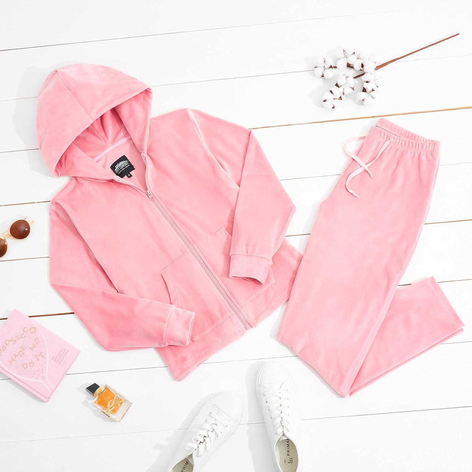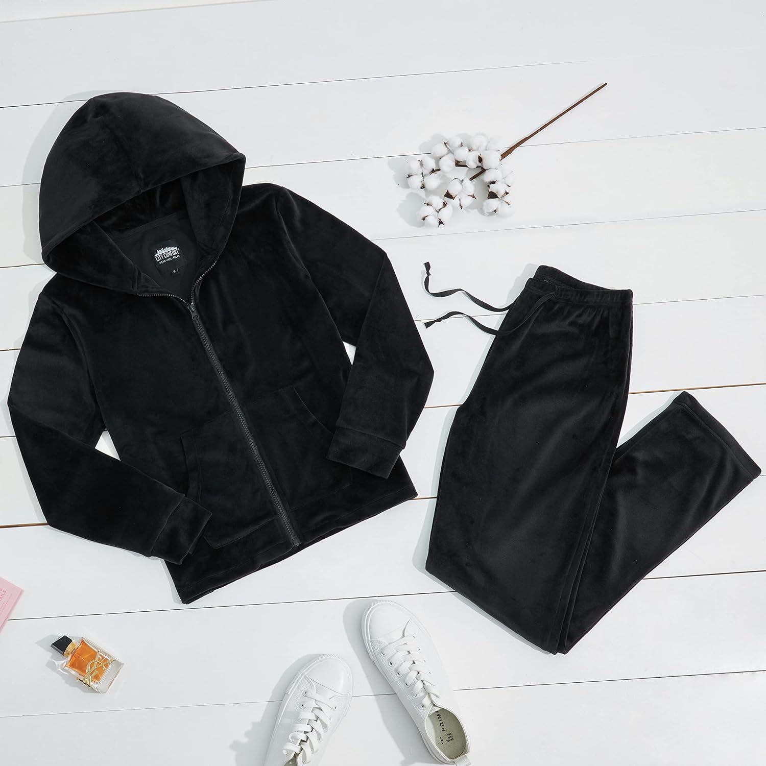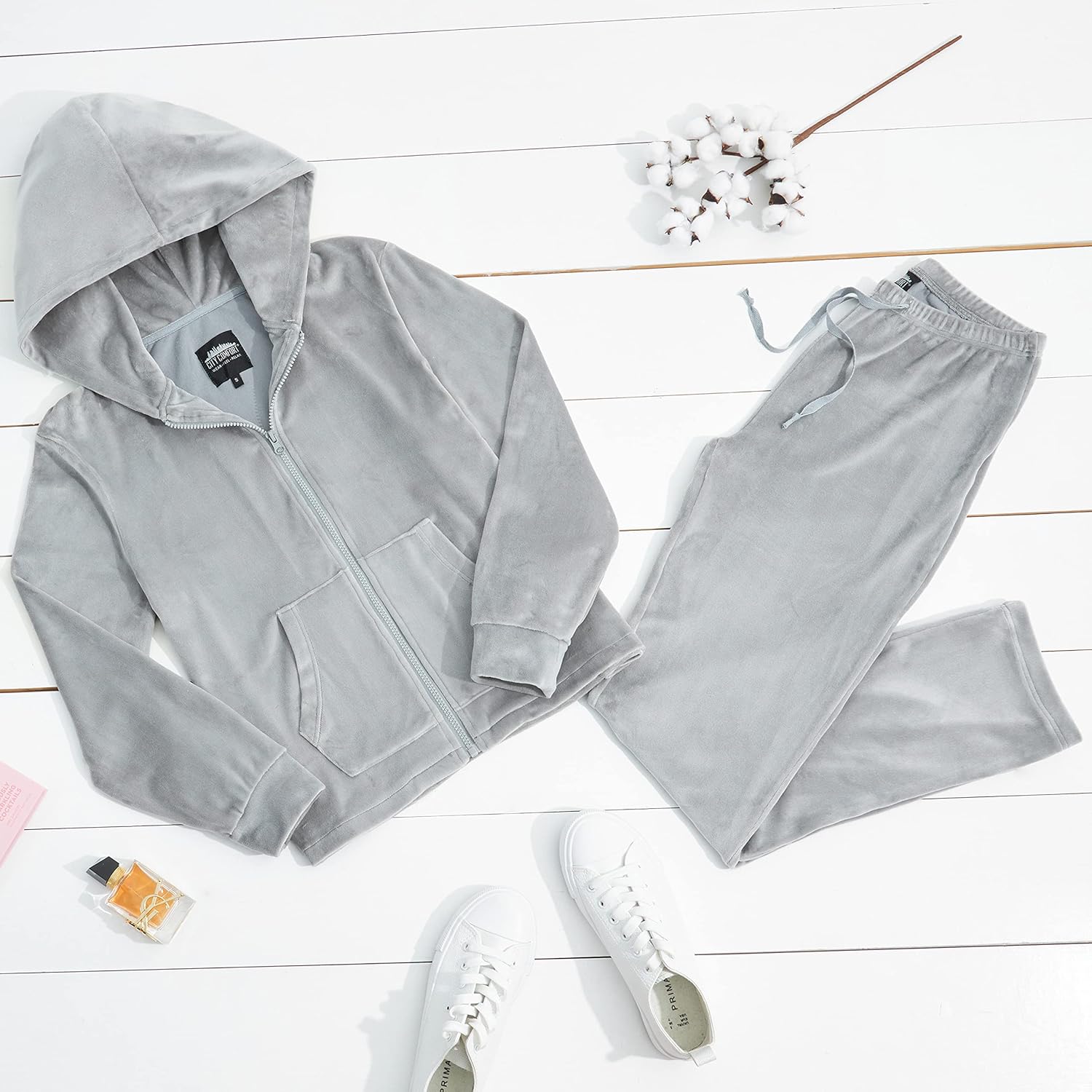 Womens Tracksuit Set Adults Teenagers Comfy Velvet Lounge Set 2 Piece Zip Up Long Sleeve Hooded Sweatshirt & Joggers Lounge Wear