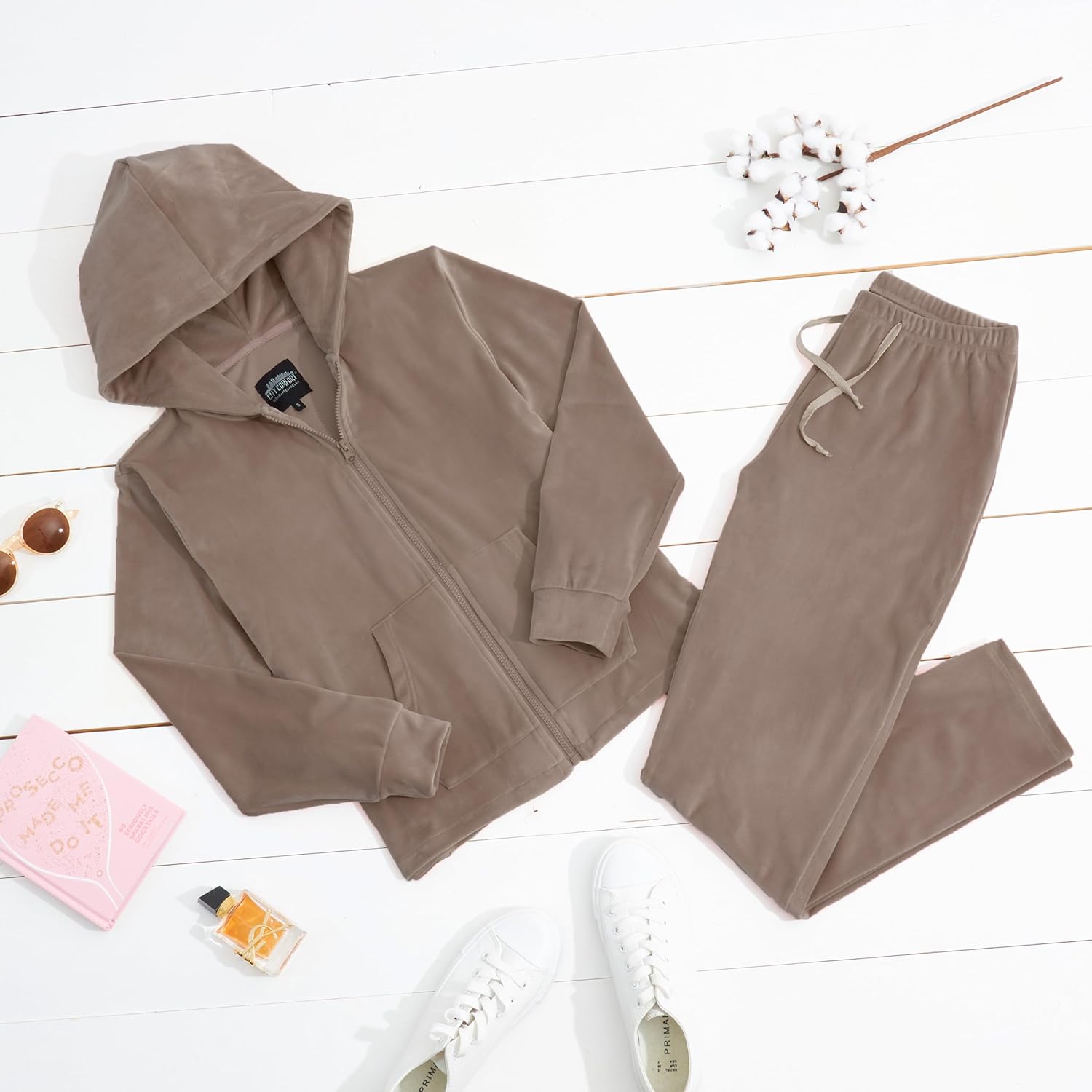 Womens Tracksuit Set Adults Teenagers Comfy Velvet Lounge Set 2 Piece Zip Up Long Sleeve Hooded Sweatshirt & Joggers Lounge Wear - S / Beige is backordered. It will be shipped when back in stock.