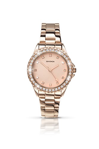 Sekonda Women's Analogue Quartz Watch A fashionable watch featuring a rose gold plated case with a rose coloured sunray dial. The watch has complementary...