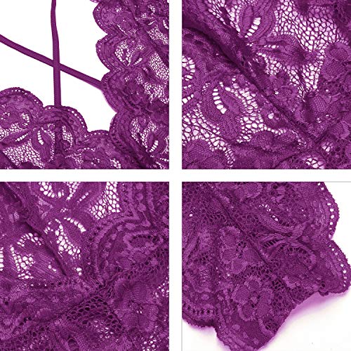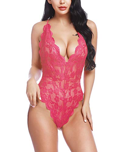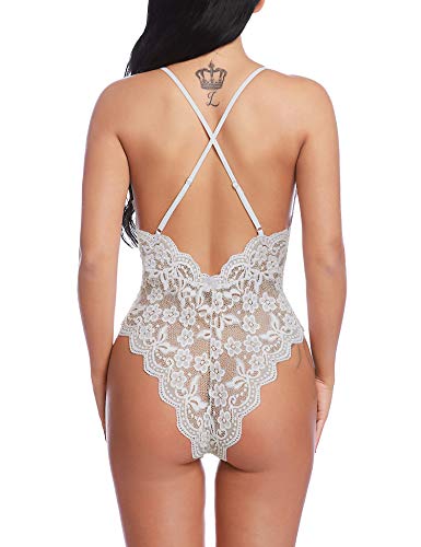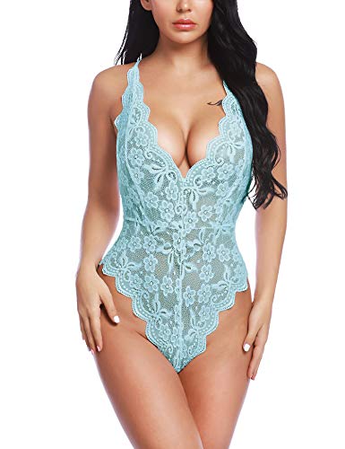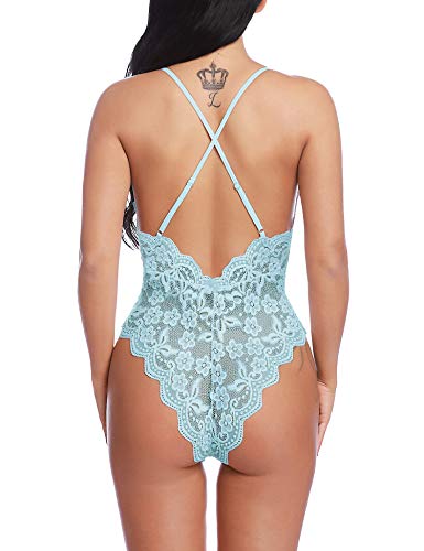 DESIGN FEATURES: Women deep V-neck lingerie sexy lace bodysuit with stretch spaghetti strap and lace soft cups, adjustable shoulder straps crisscross at the backless design, makes you more charming, fashion and chic