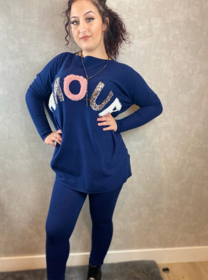 We are so lounging in this season. It features a Amour print with a round neck long sleeve top paired with legging bottoms. Team with some of your favourite sliders very for the snacks and chill.