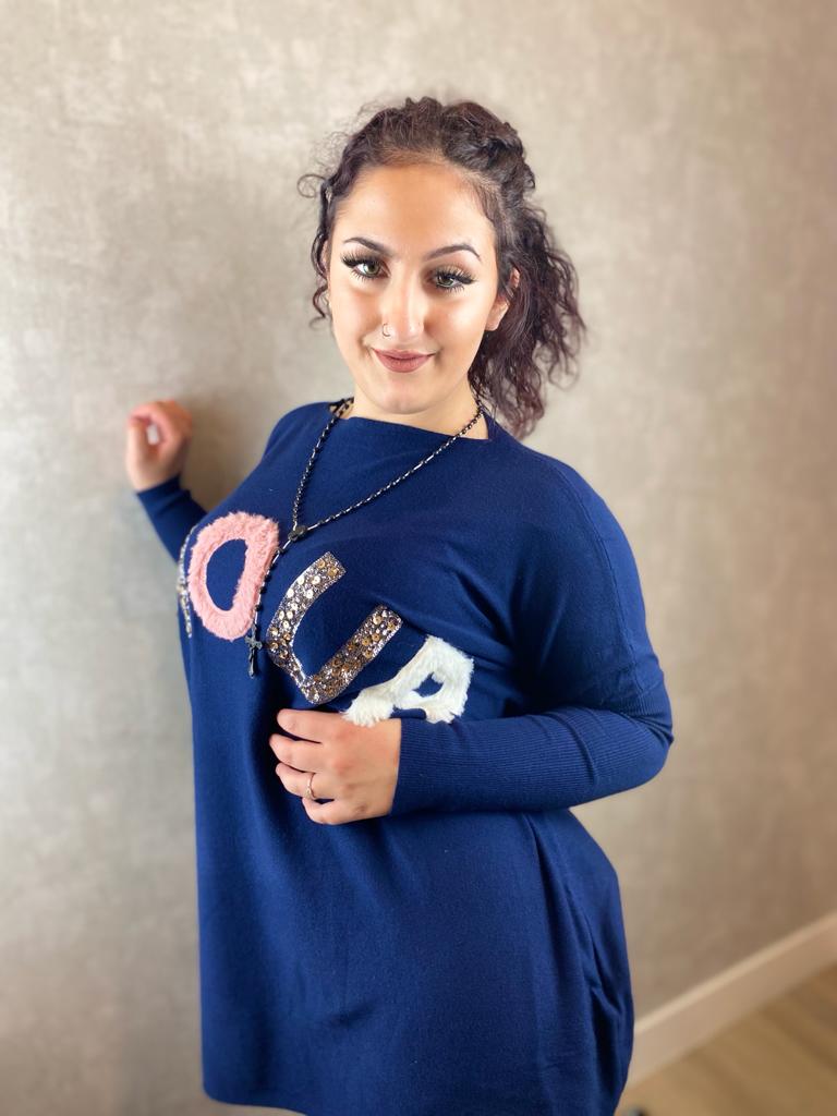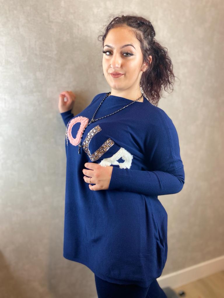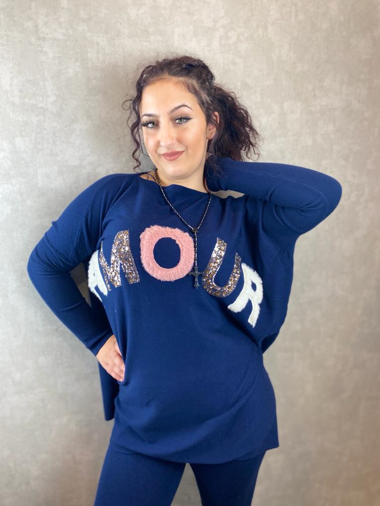 We are so lounging in this season. It features a Amour print with a round neck long sleeve...