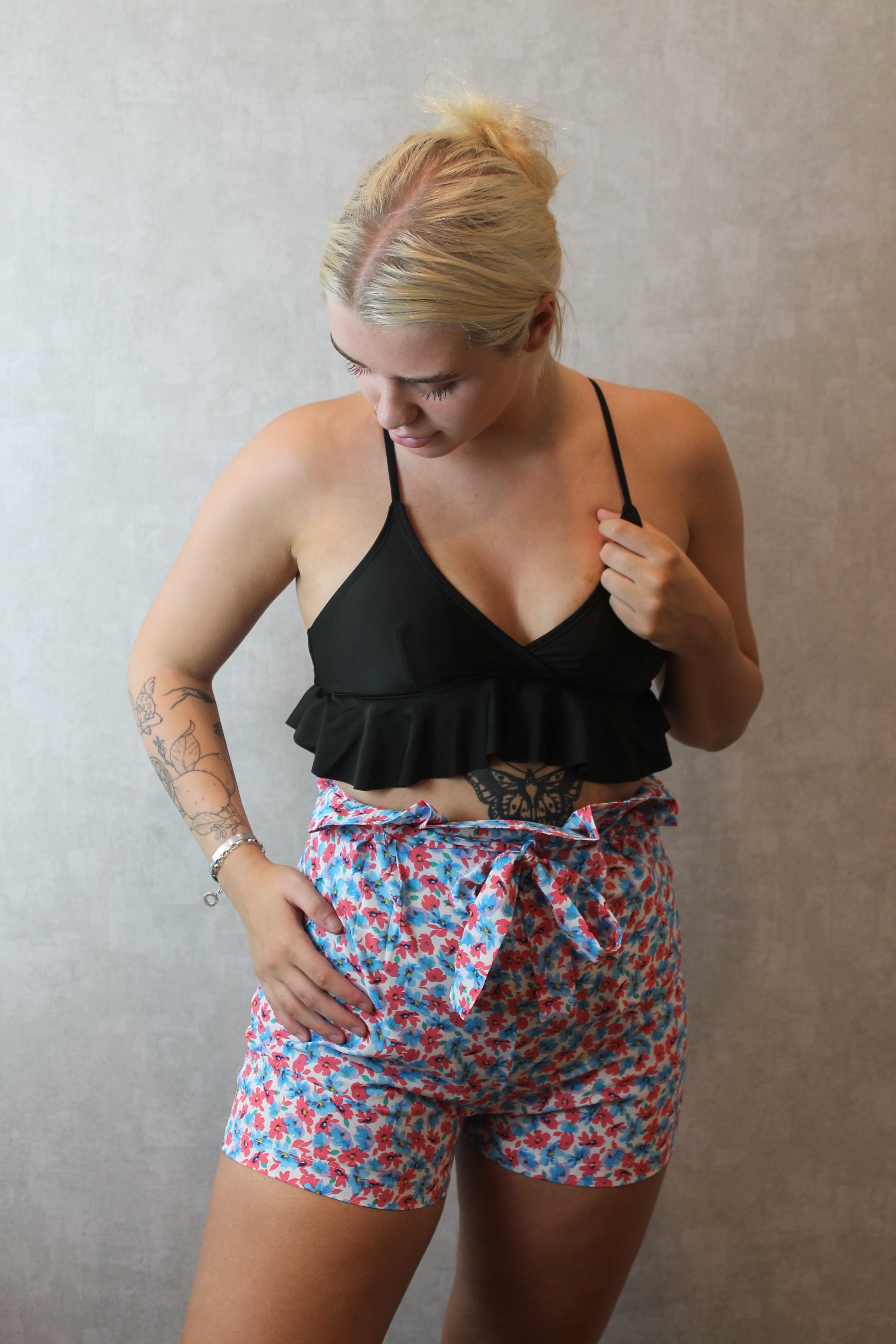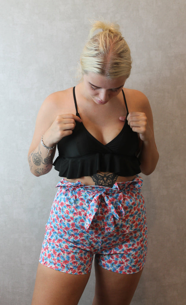 We are lovin' these cute shorts RN, they feature a floral print with paperbag tie front waist. Team with some trainers and a crop top to complete the perfect summer look.