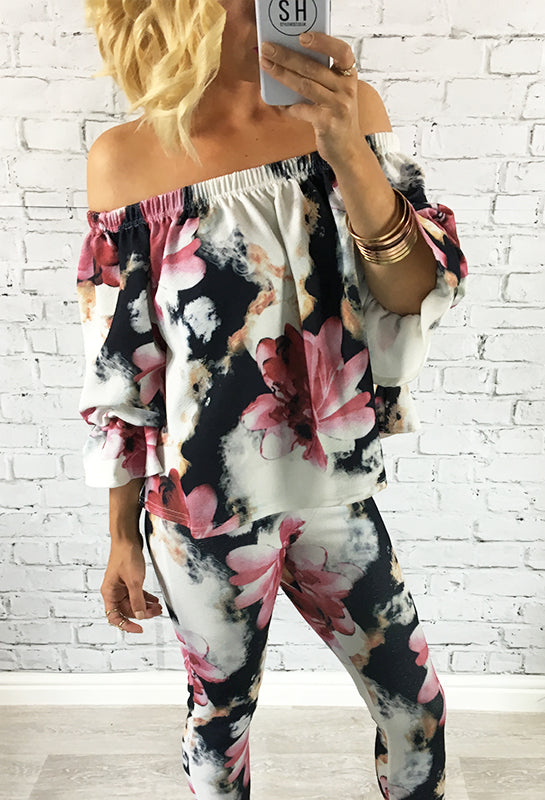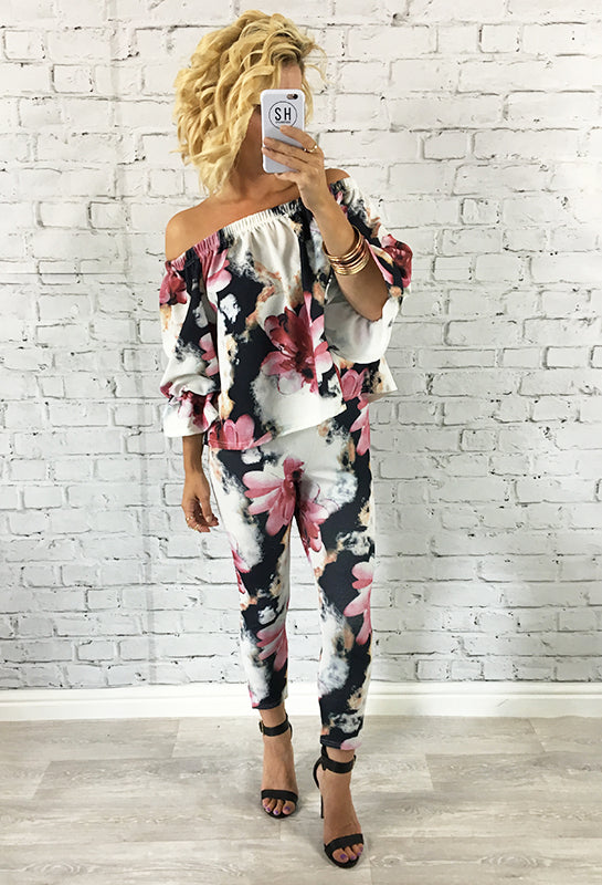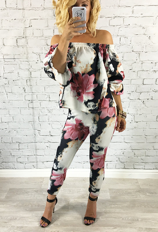 Bright Pink & Blue Floral Off The Shoulder Jennifer Set