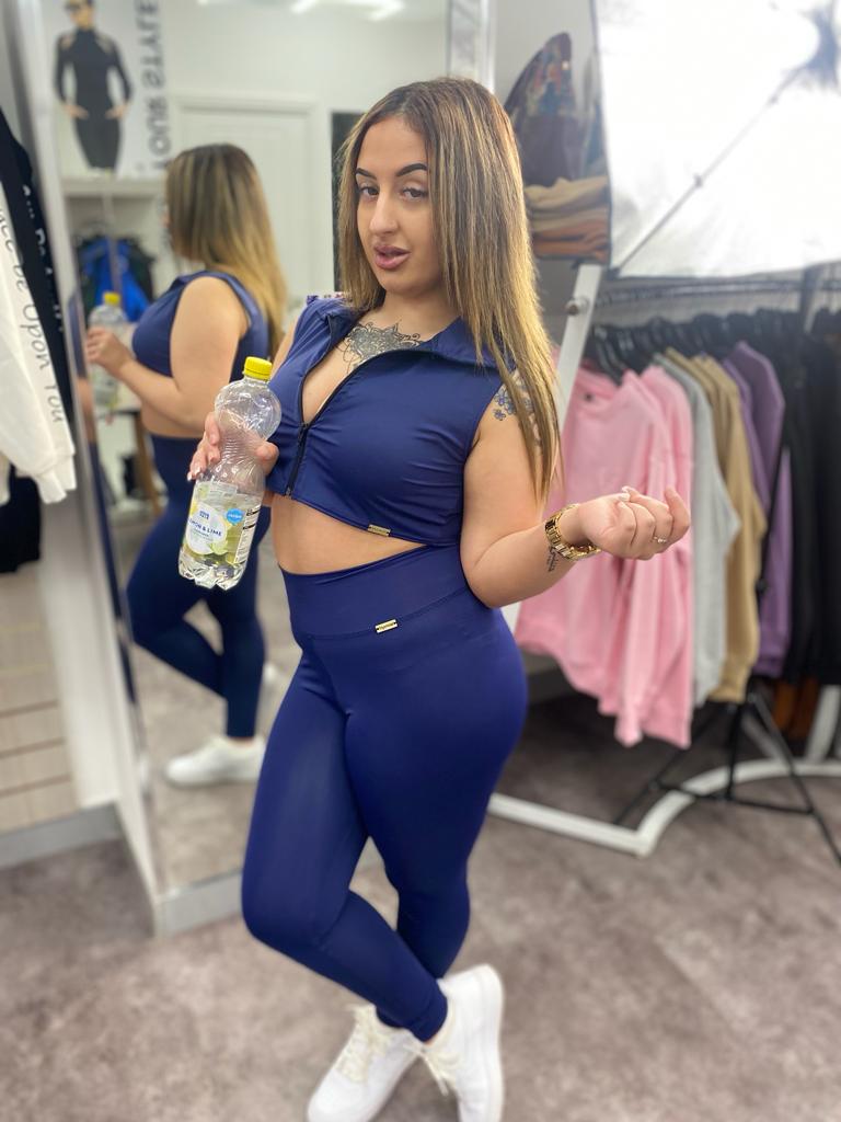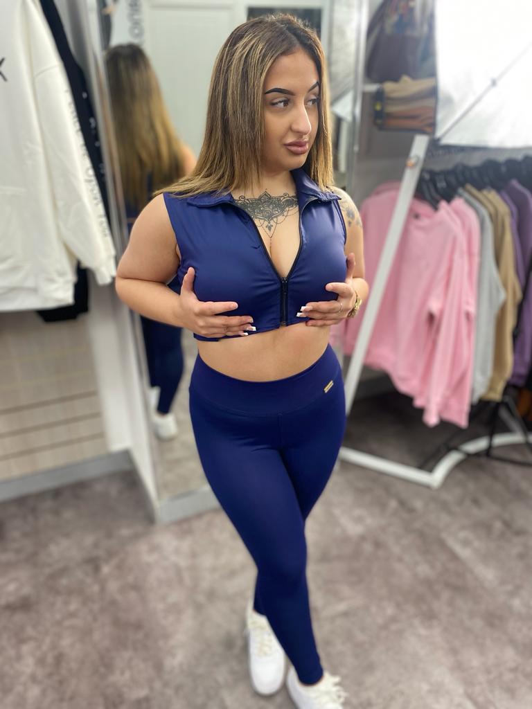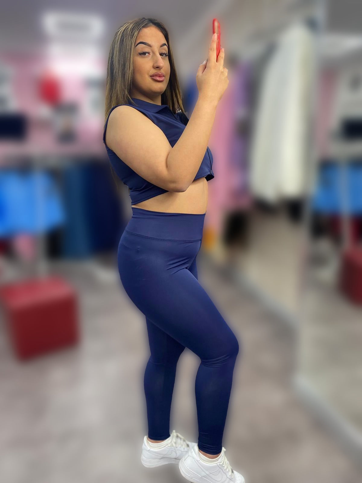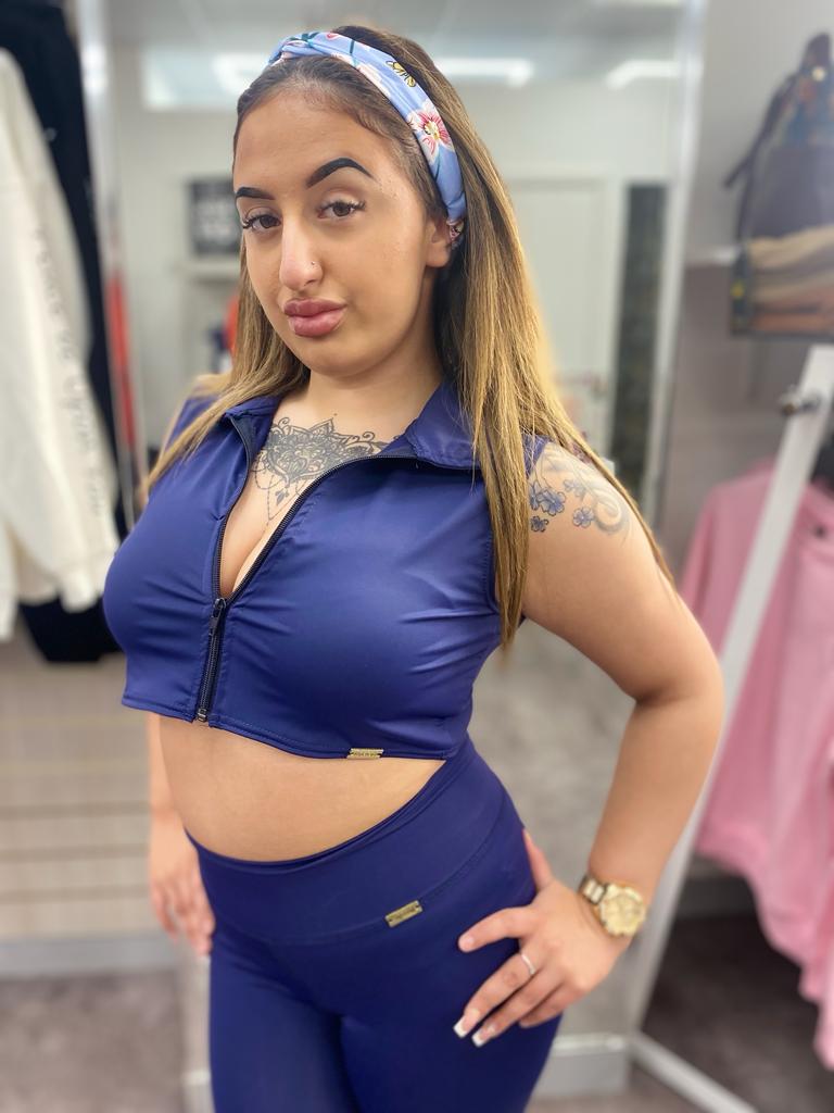 FLECK SEAMLESS SPORTS ZIP COLLAR Track Suit - Navy Blue.