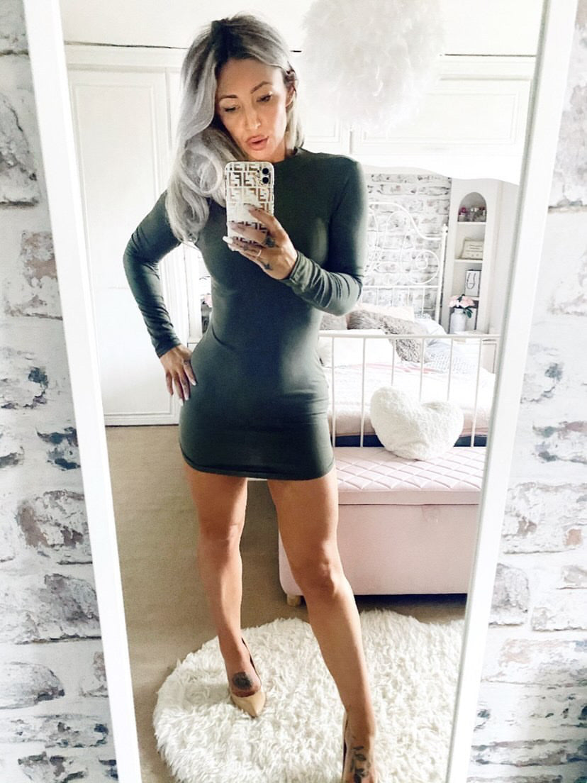Aisha Khaki Cut Out Neck Dip Hem Dress