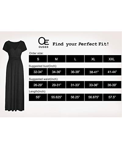 Size Chart: S:Bust:32.28"-36.22" Waist:25.98" Length:54.33 M:Bust:34.64"-38.58" Waist:28.34" Length:54.72" L:Bust:37"-40.15" Waist:30.7" Length:55.11" XL:Bust:40.15"-43.3" Waist:33.85" Length:55.9" XXL:Bust:43.3"-47.24" Waist:37" Length:56.69" Please do keep in mind that refer to the size chart before buying. The size may have 0.7"-1.5" differences because of manual measurement . Features: 1.Classy high quality fabric,very comfortable to touch and wear 2.Short Sleeve, Pocket Design 76.Pictures may slightly vary from actual item due to lighting and monitor. About OUGES Brand: OUGES is a professional brand that specialize on women's apparel. We covered the best styles and the latest fashion trends that shows elegance, beauty and life which brings out confidence for every women