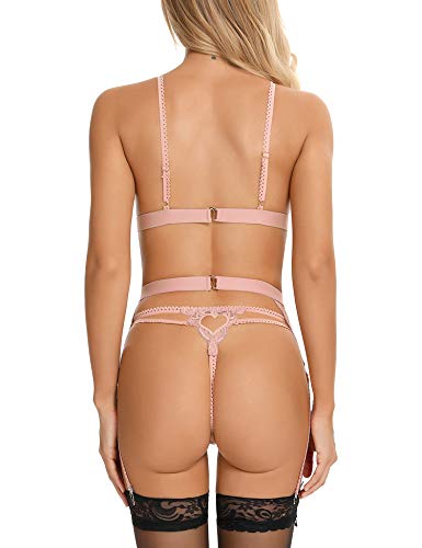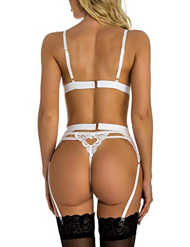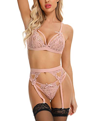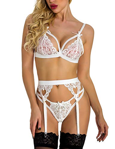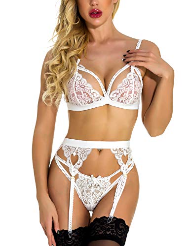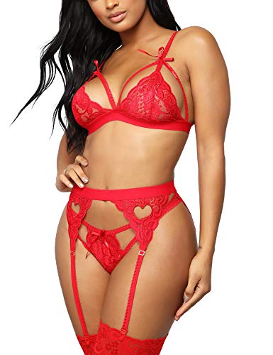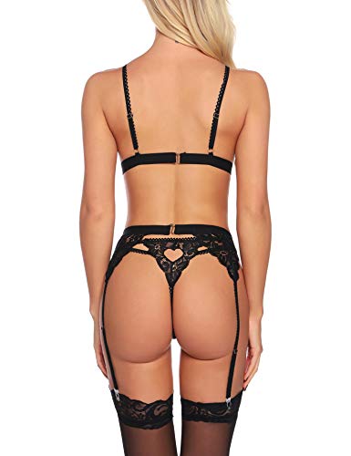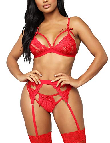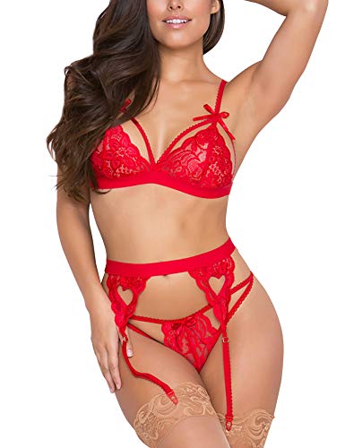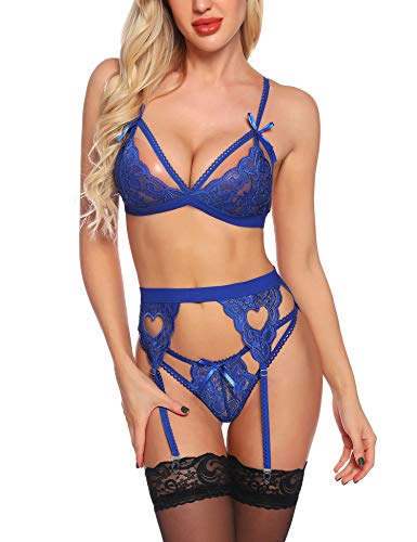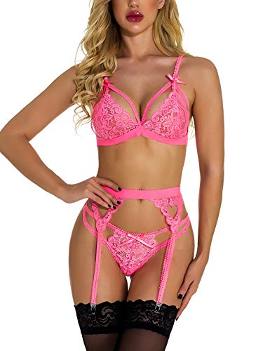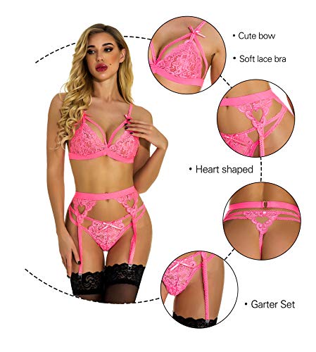 - Women lace lingerie set features sheer lace cups with strappy detailing,satin bow accents, adjustable spaghetti straps,a hook...