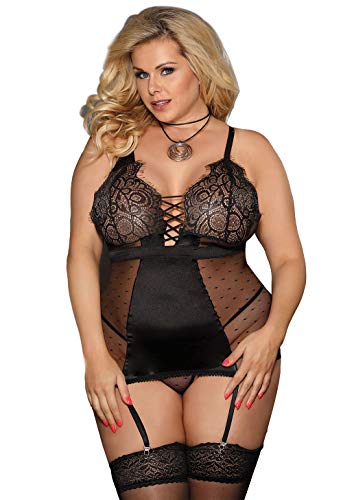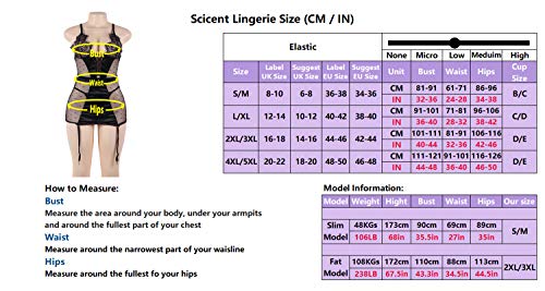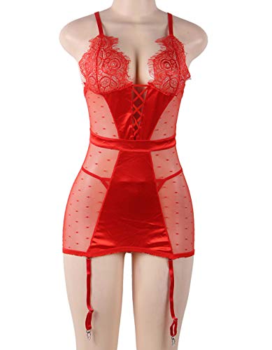 - ✿ The lace lingerie set will accommodate larger bodies if need. There is good bit of stretch to the lingeire nightwear, and very lightweight. Hides any trouble areas for most plus size, while being very and alluring