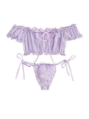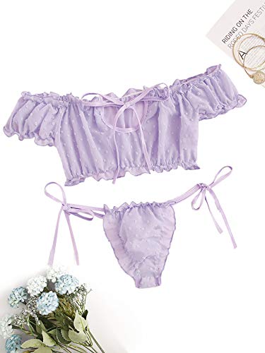 SHEIN Women's Self Tie Ruffle Lingerie