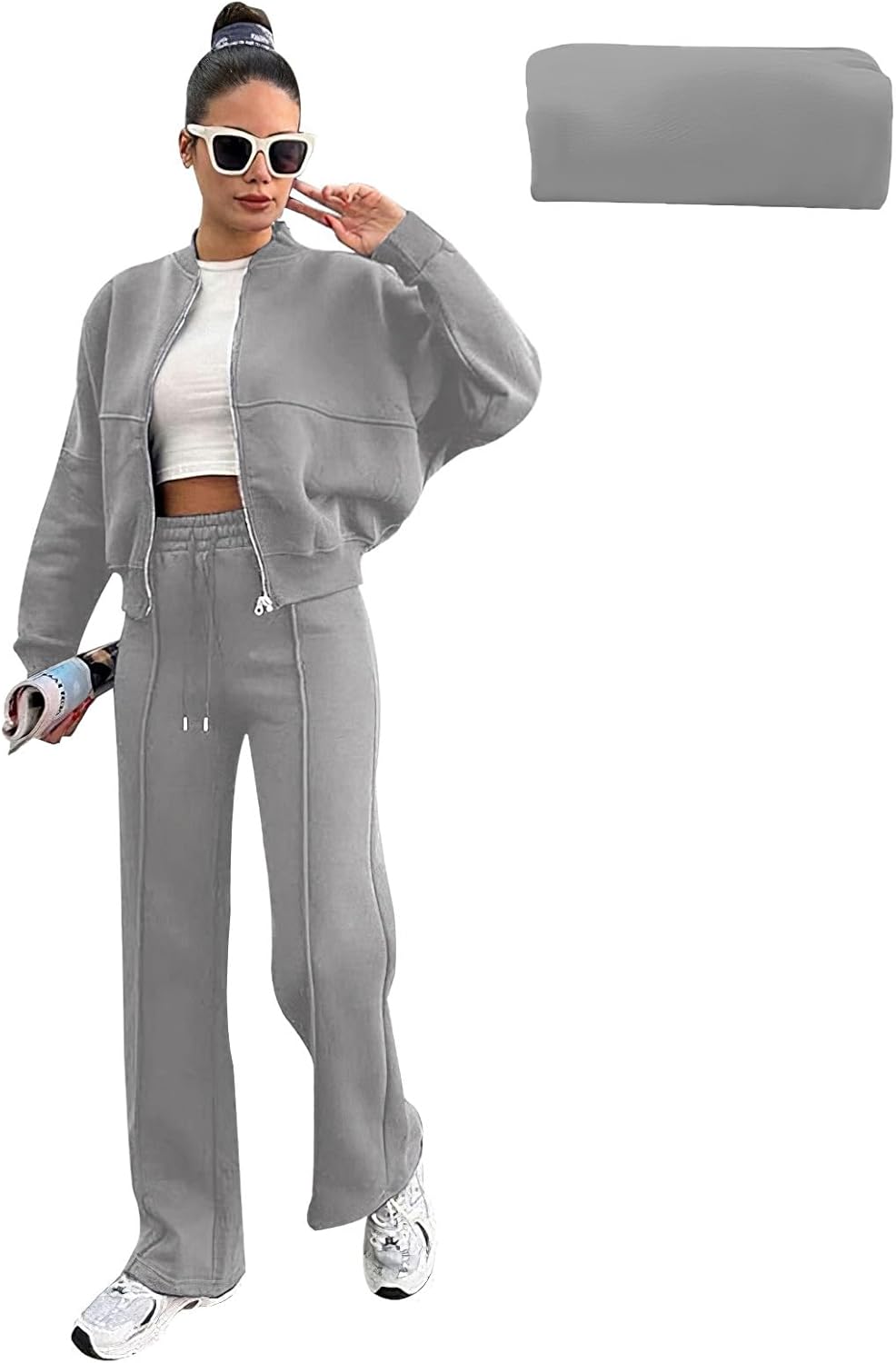 Tracksuit Zipper Jacket Top and Jogging Pants 2 Pieces Sweatsuit Set